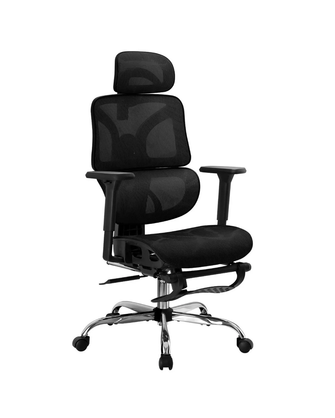Long days in the office can be hard on your body. Stay comfortable and improve your posture with the Artiss Ergonomic High Back Chair. Designed to provide optimal comfort and support throughout your workday, our chair is the perfect addition to any office environment. The high back supports your spine and encourages good posture while you relax. The mesh material is incredibly breathable, keeping you cool and comfortable throughout the day. With an adjustable headrest and 3D multi-function PP armrests, you can customize the chair to fit your specific needs. The 10cm height adjustment ensures that you can find the perfect seating position, while the tilt tension allows for smooth reclining from 90 to 135 degrees. The chair is also 360 degrees rotatable, allowing for easy movement and access to different areas of your workspace. The chrome base adds a sleek and modern touch, while the black PU castors provide smooth and quiet mobility. Experience comfort, style, and functionality with the versatile Artiss Ergonomic High Back Chair.