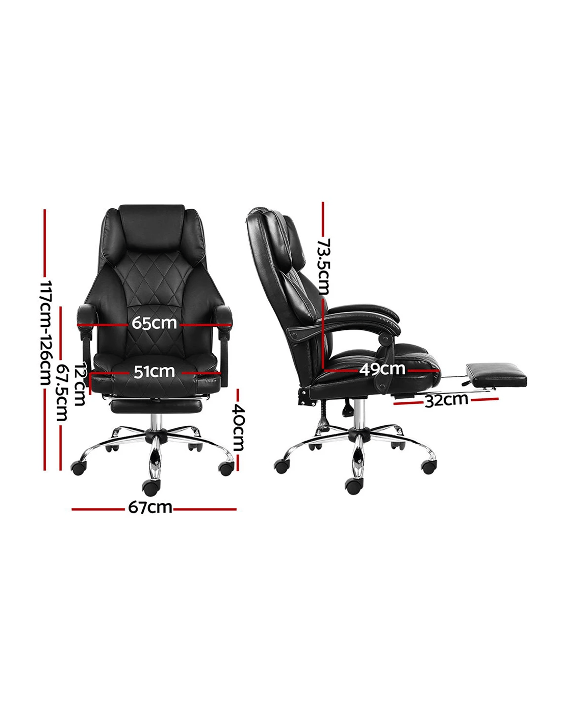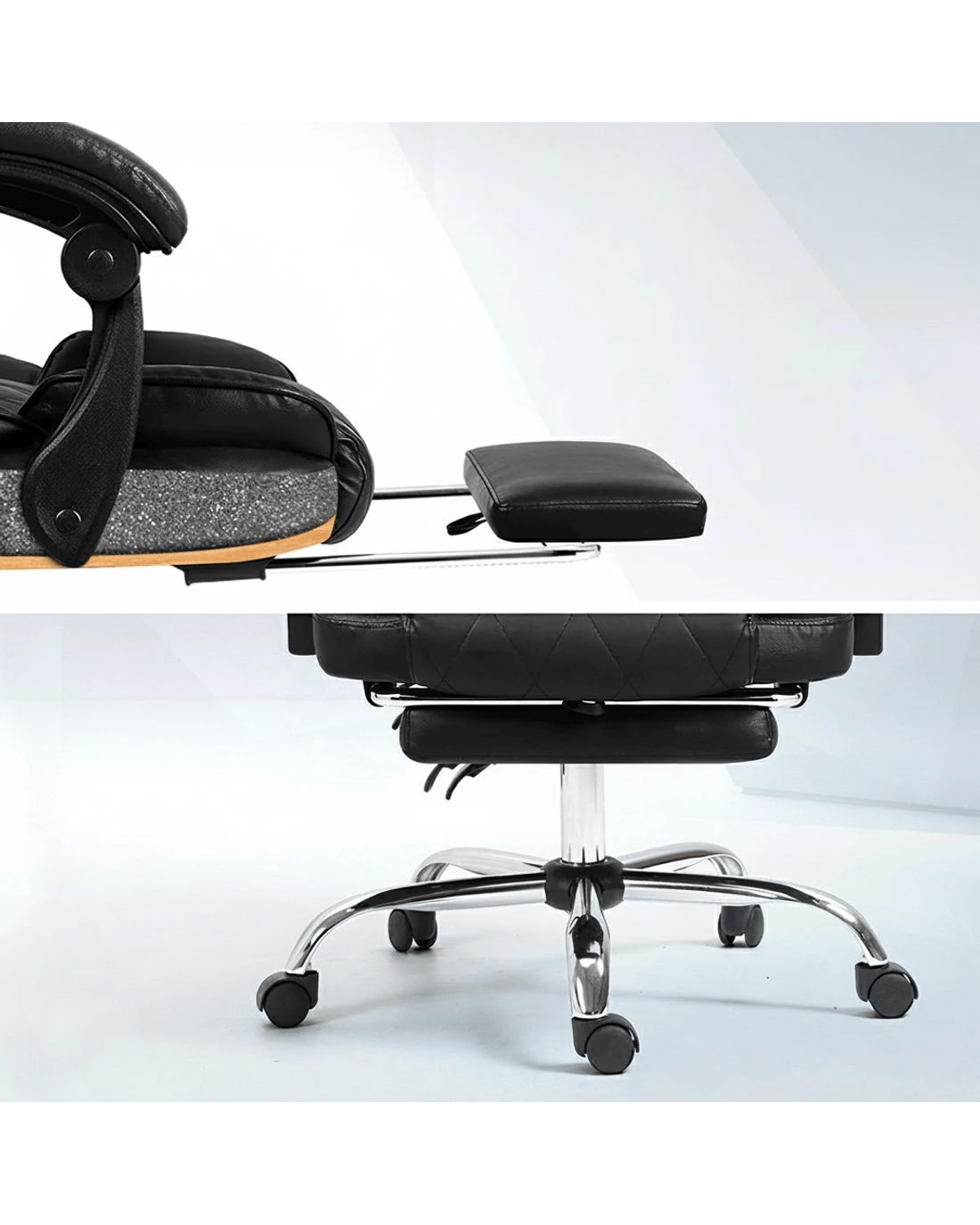 The more comfortable chair, the higher is the productivity. Our office chairs are designed with your comfort in mind and will have your back so that you can focus on the more significant things. Crafted precisely and constructed with quality materials, the office chair is sturdy and comes with a plush, dual-padded soft supportive cushioning seat. It also features a contoured high-back design that will give you the support you need and help you have a better posture, and the retractable footrest helps you sit comfortably. Plus, the office chair can be adjusted to your preferred requirements; adjust the height to suit your needs, 90˚ to 135°reclining seat for a comfortable sitting position, and easy mobility around your workspace with smooth castor wheels. Not least, this office chair can easily withstand weights up to 120kg.