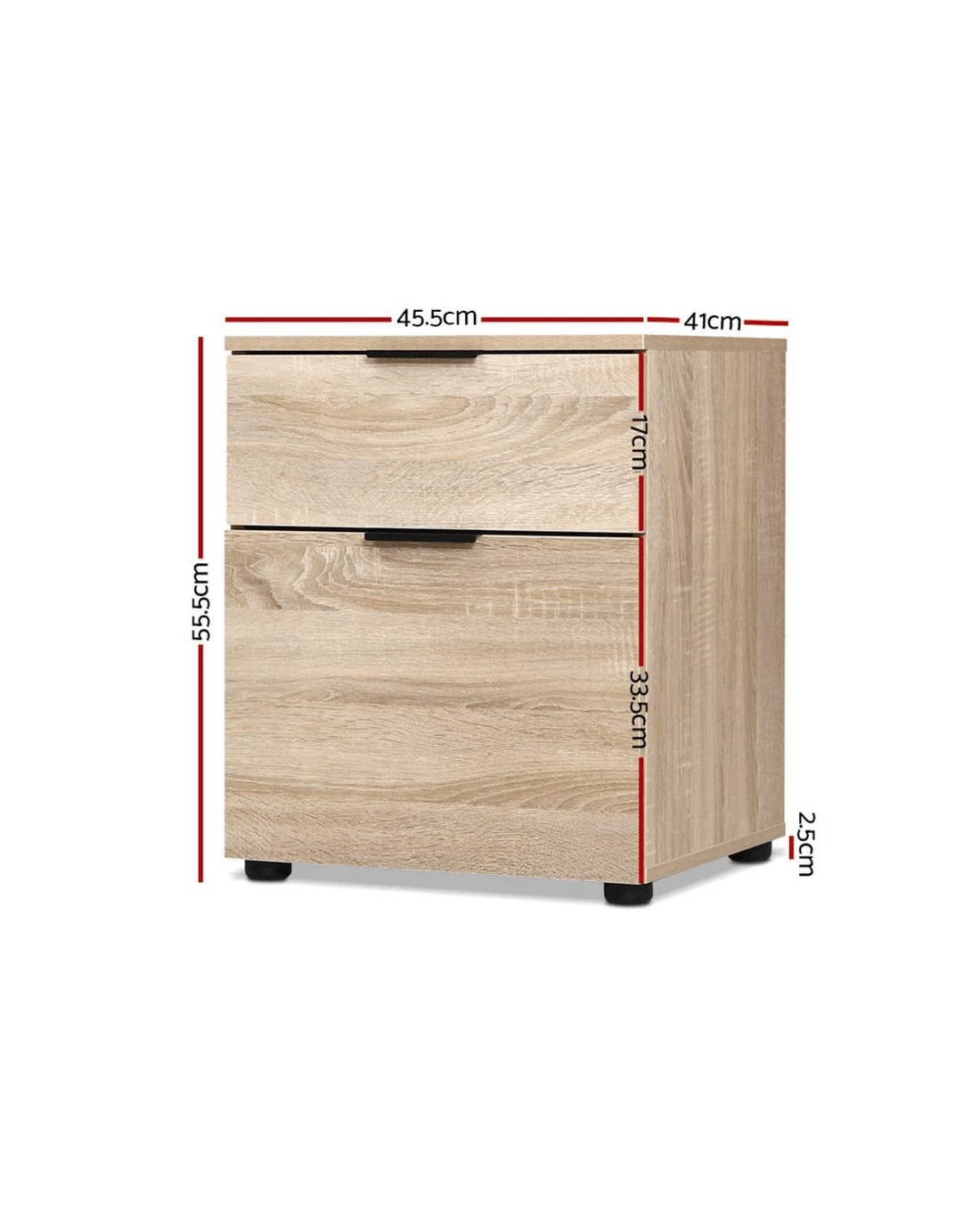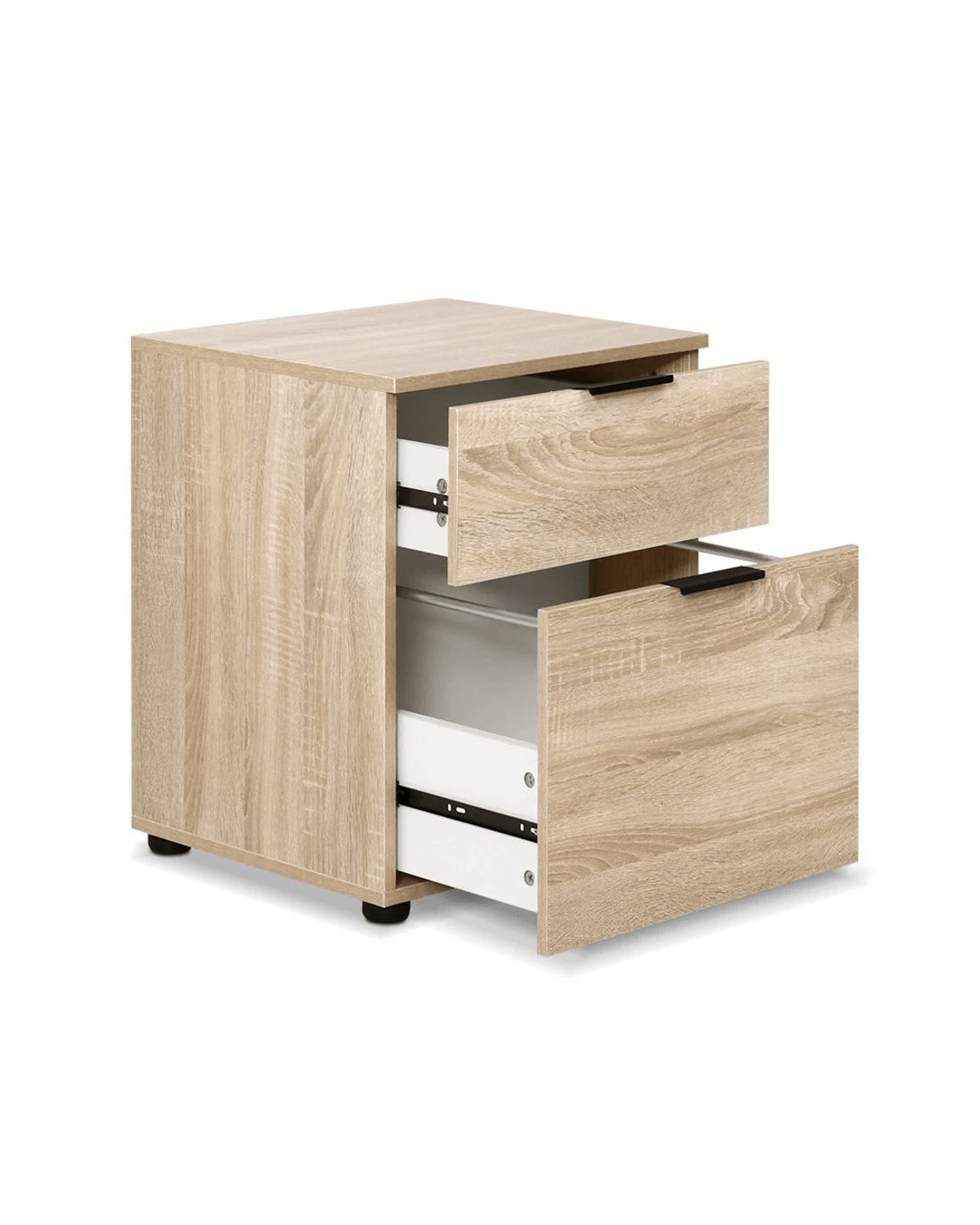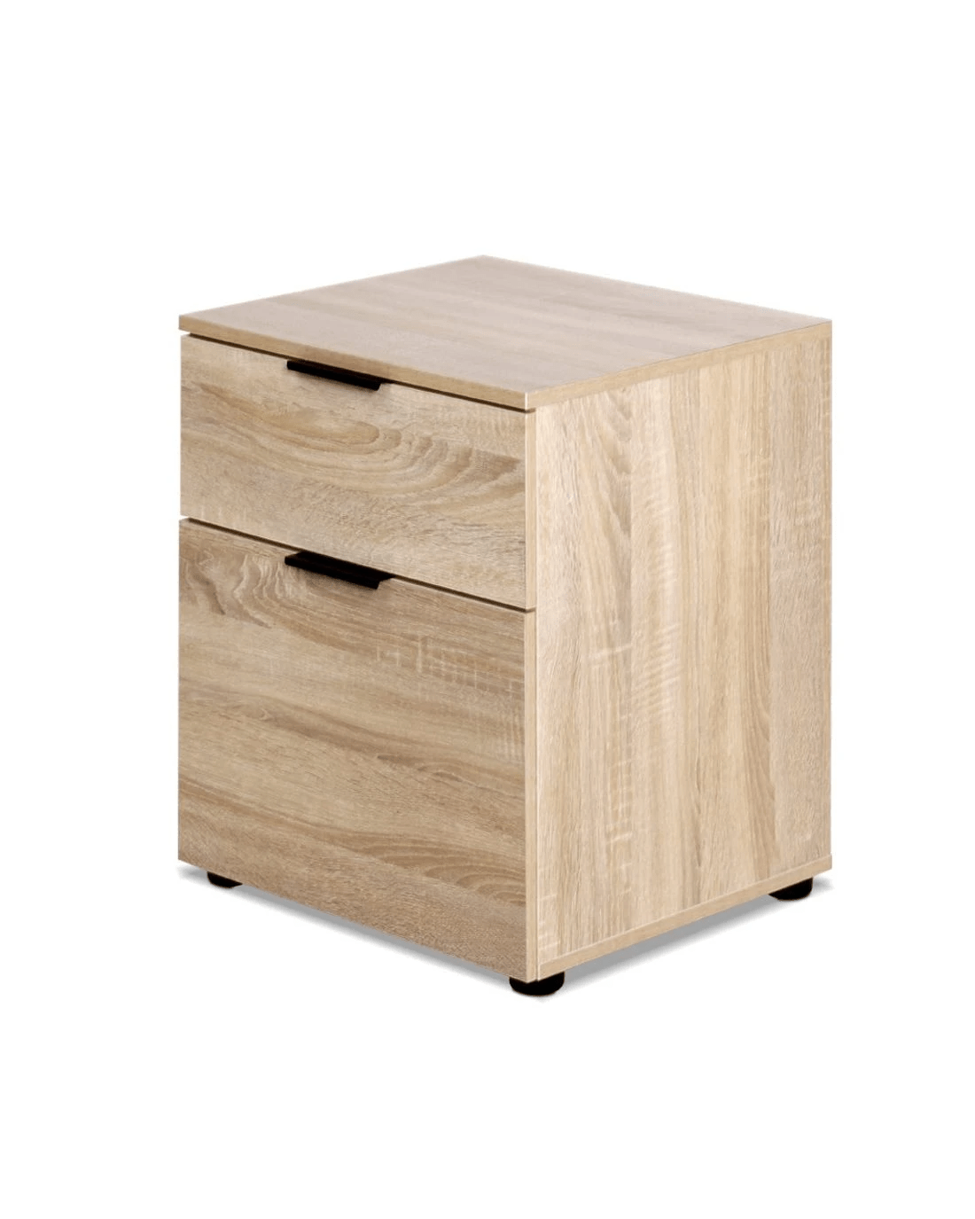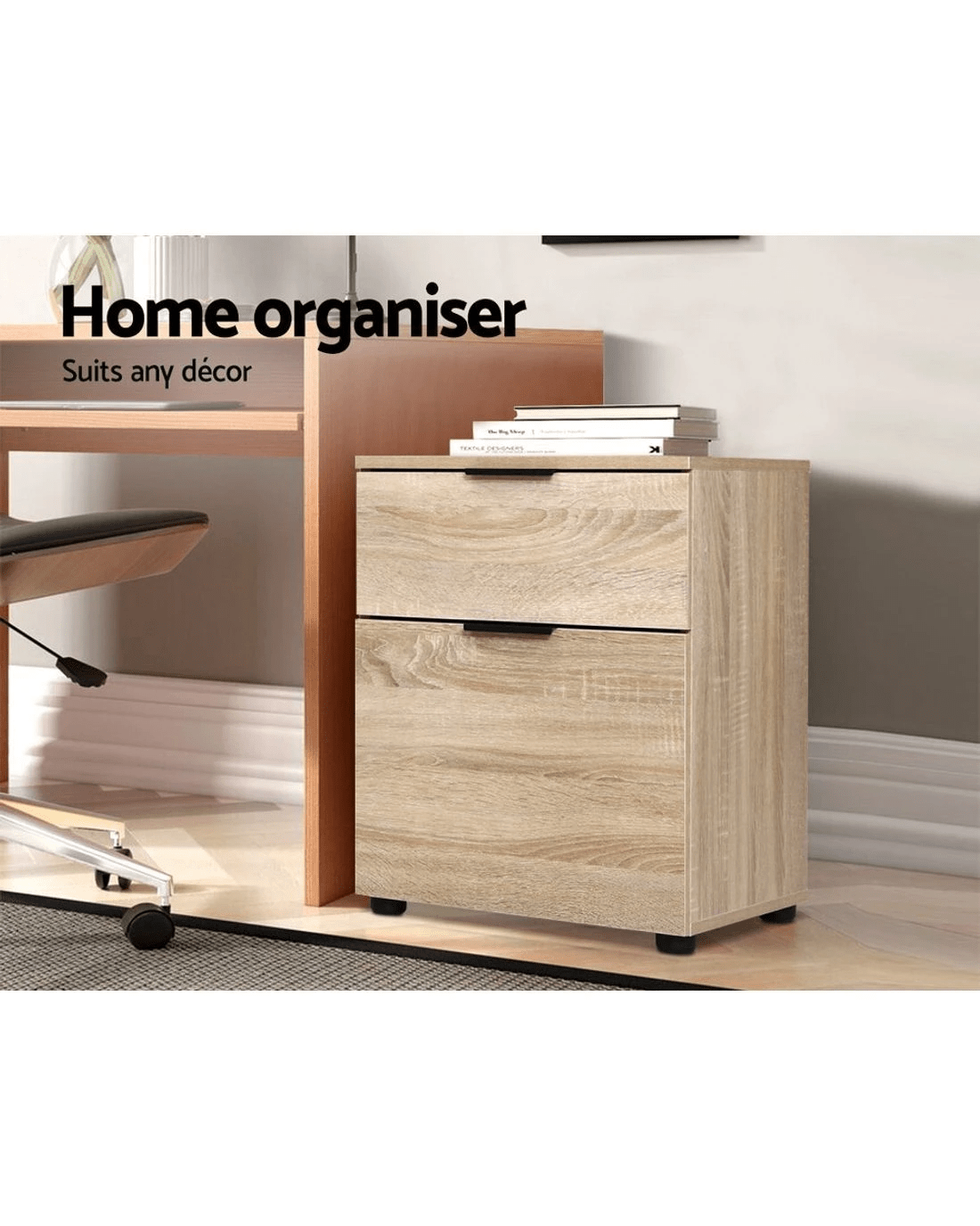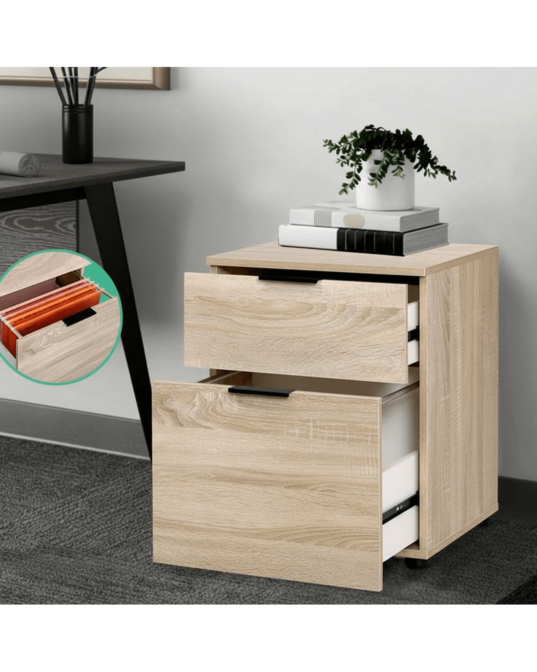 Are files piling up and creating a mess on your office desk? Get your files in order with our Filing Cabinet. The modest filing cabinet is the ideal space-saving storage solution for your office, as it sits neatly under your desk to provide you with all your workplace essentials. The spacious stationery drawer on top allows you to store loose items such as pens, sticky tapes and paper clips. The bottom filing drawer is fitted with metal rails where you can hang your suspension files. Crafted from quality particle board with smooth melamine finish and featuring anti-rust drawer runners, stylish metal handles and anti-scratch plastic feet, the filing cabinet is durably constructed to ensure longlasting use and smooth operation. Best of all, the modernistic design with neutral wood tone means it will suit any decor and will be the perfect addition to your living room, study room or children's desk.