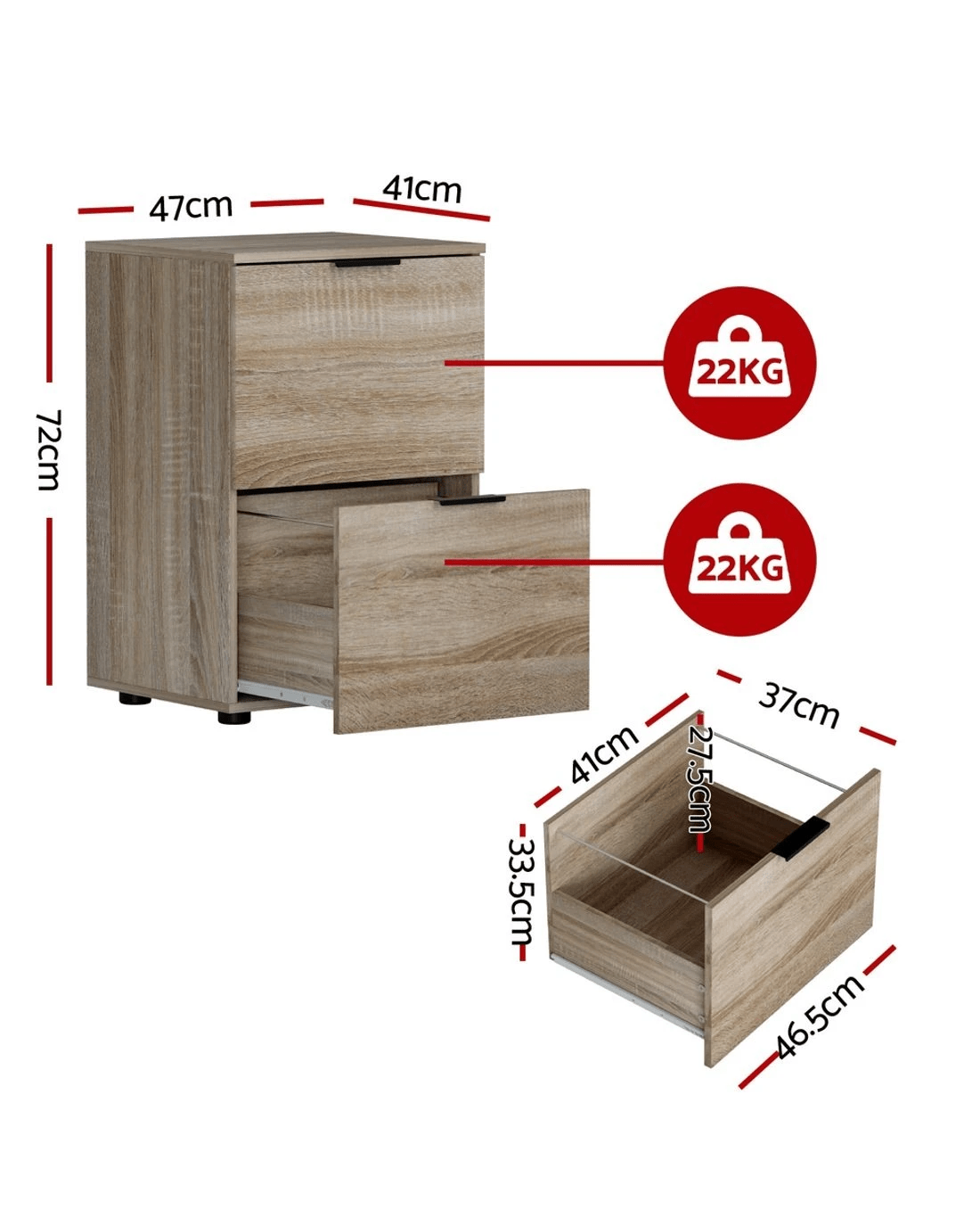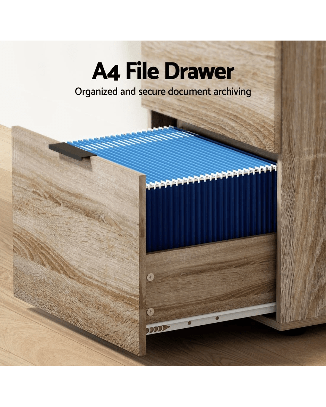 Organise your home office or workspace with the Artiss Filing Cabinet. Featuring one spacious A4 drawers and a premium oak finish, this file cabinet offers sturdy storage for documents, stationery, or office essentials. Its sleek design blends seamlessly into any environment, while the smooth-gliding drawers ensure easy access. Ideal for professionals and home users alike.