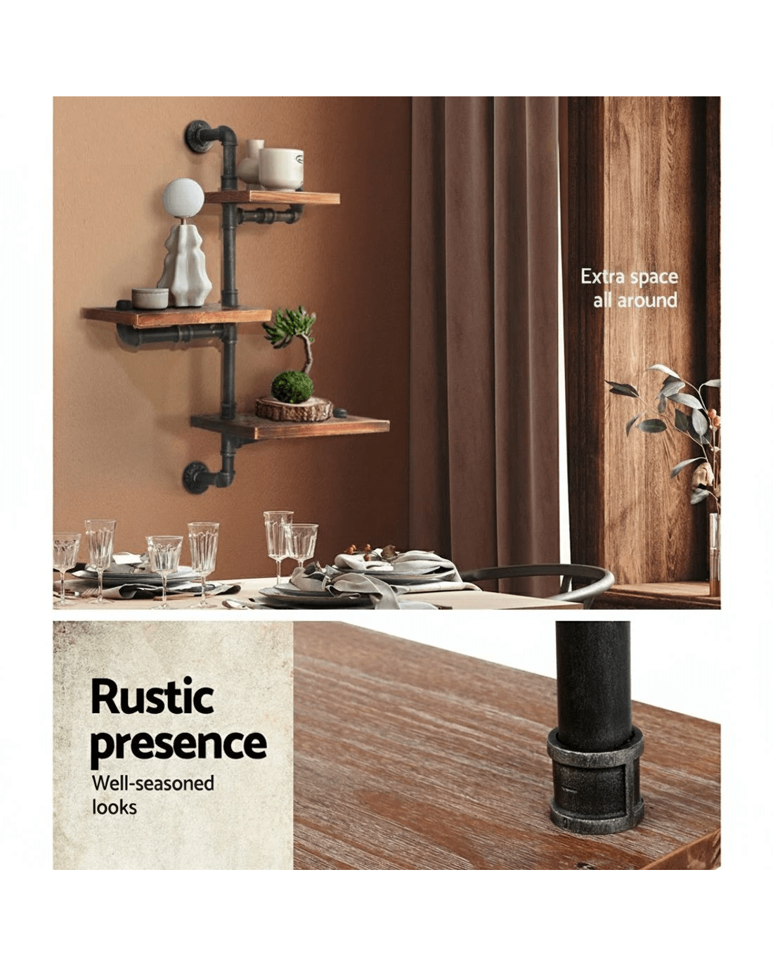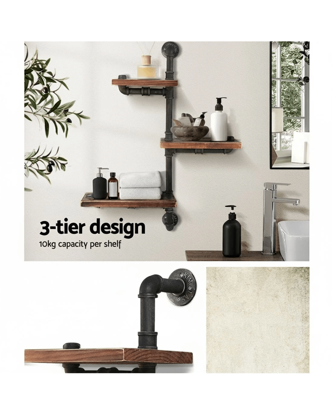 Sold by Aisle SixArtiss Floating DIY Pipe Shelf 3 Tiers - IVAN - Natural