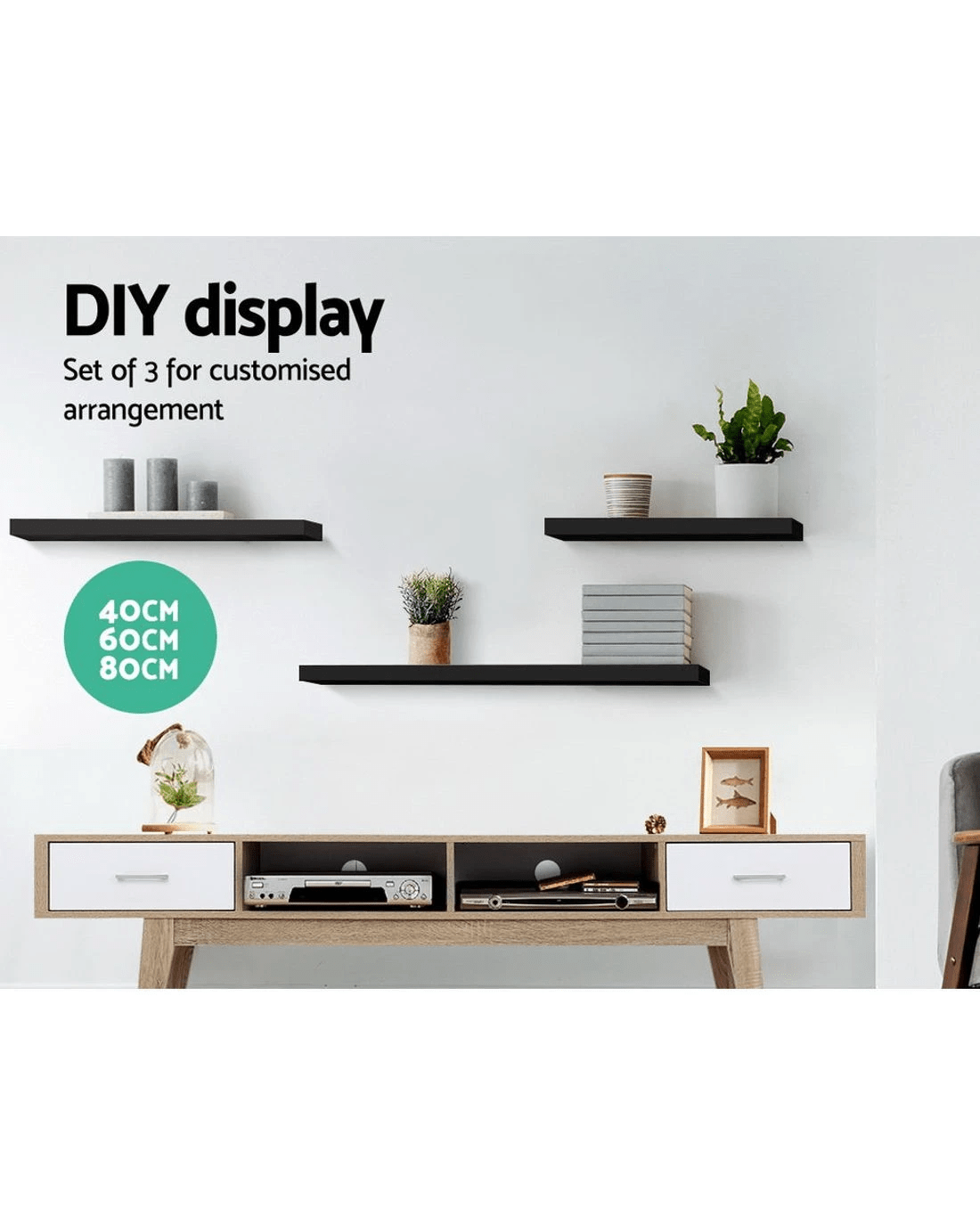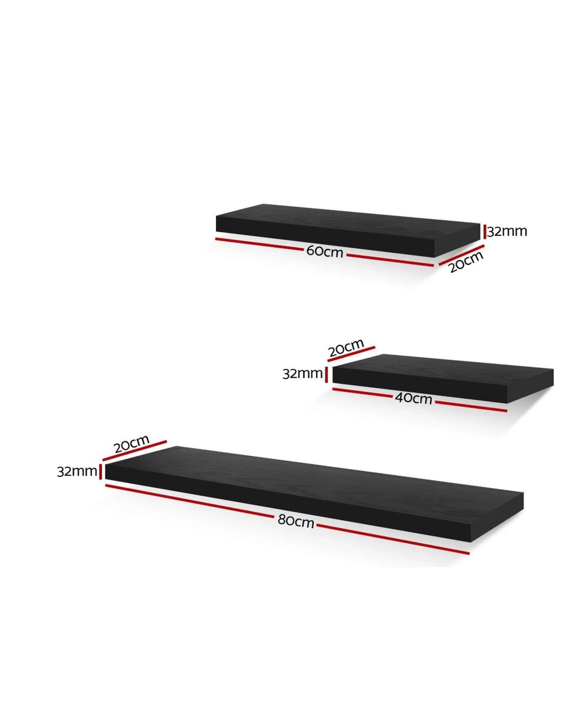 Made of solid wood construction, the Wall Shelves can be easily installed within minutes with the included fittings. The 3.2cm shelves are thick and strong enough to hold a variety of home décor, books, CDs, DVDs and more of up to 10kg per shelf. It's also wide enough, 20cm, to not worry about your items falling off due to lack of width.