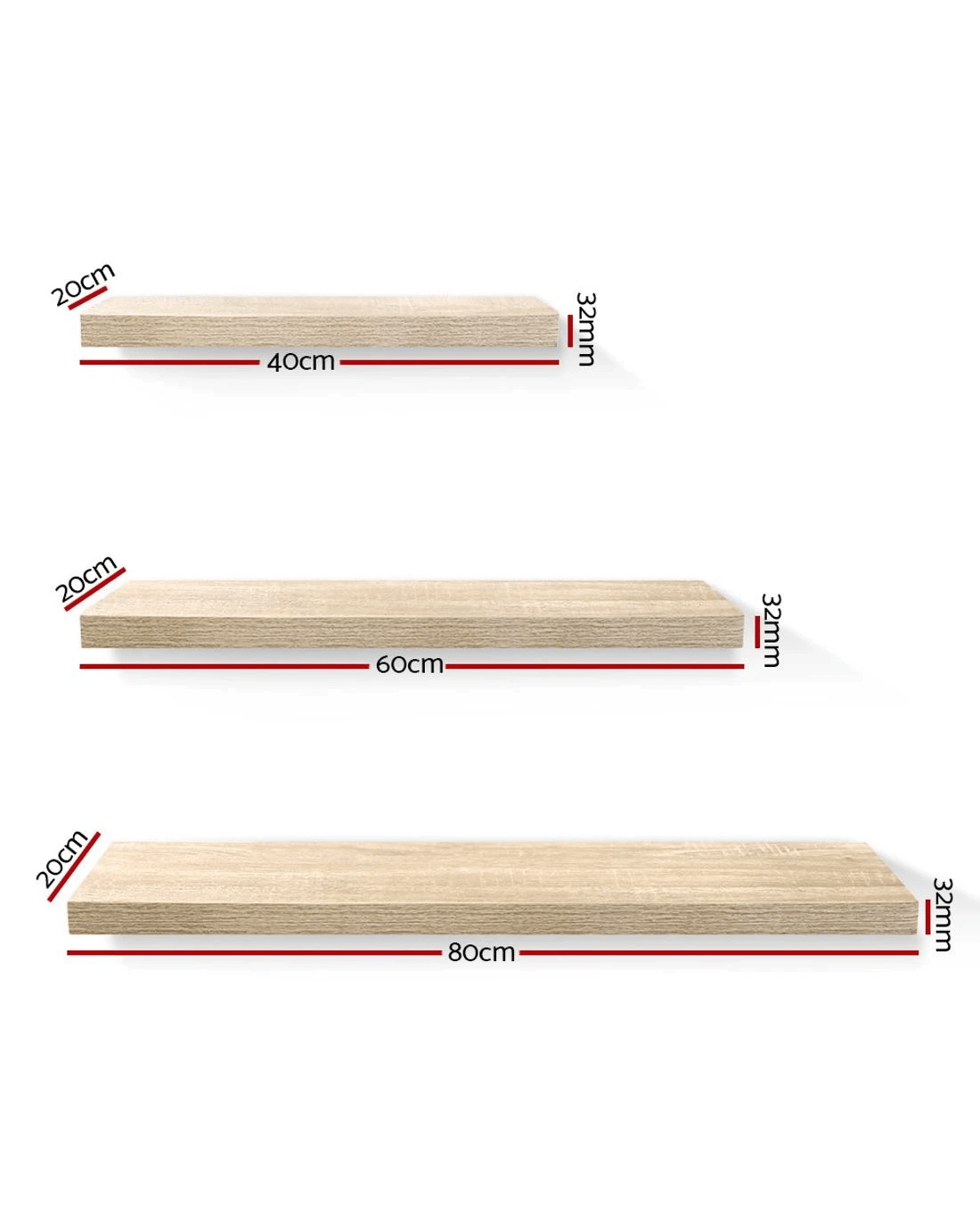 Need to add more shelf space? Display space? Lots of wall space? Perfect. Our Artiss Floating Wall Shelf is just the thing you need to create more space without occupying more floor space. And it comes in a set of three with 40cm, 60cm and 80cm lengths, allowing for flexible arrangements. Made of 32mm thick honeycomb board with melamine finish, the wall shelf can be easily installed within minutes with the included fittings. The extra thick shelf is strong enough to hold a variety of ornaments, collectibles, books, CDs, DVDs and more of up to 10kg. It is also 20cm wide, so that you need not worry about your items falling off due to lack of width. Mount the wall shelf in any room, to create focal points or poignant displays that speak volumes about your home and personality. Great for offices and retail establishments too.