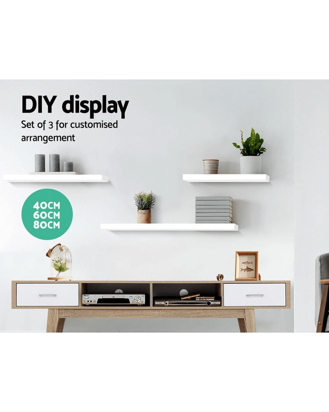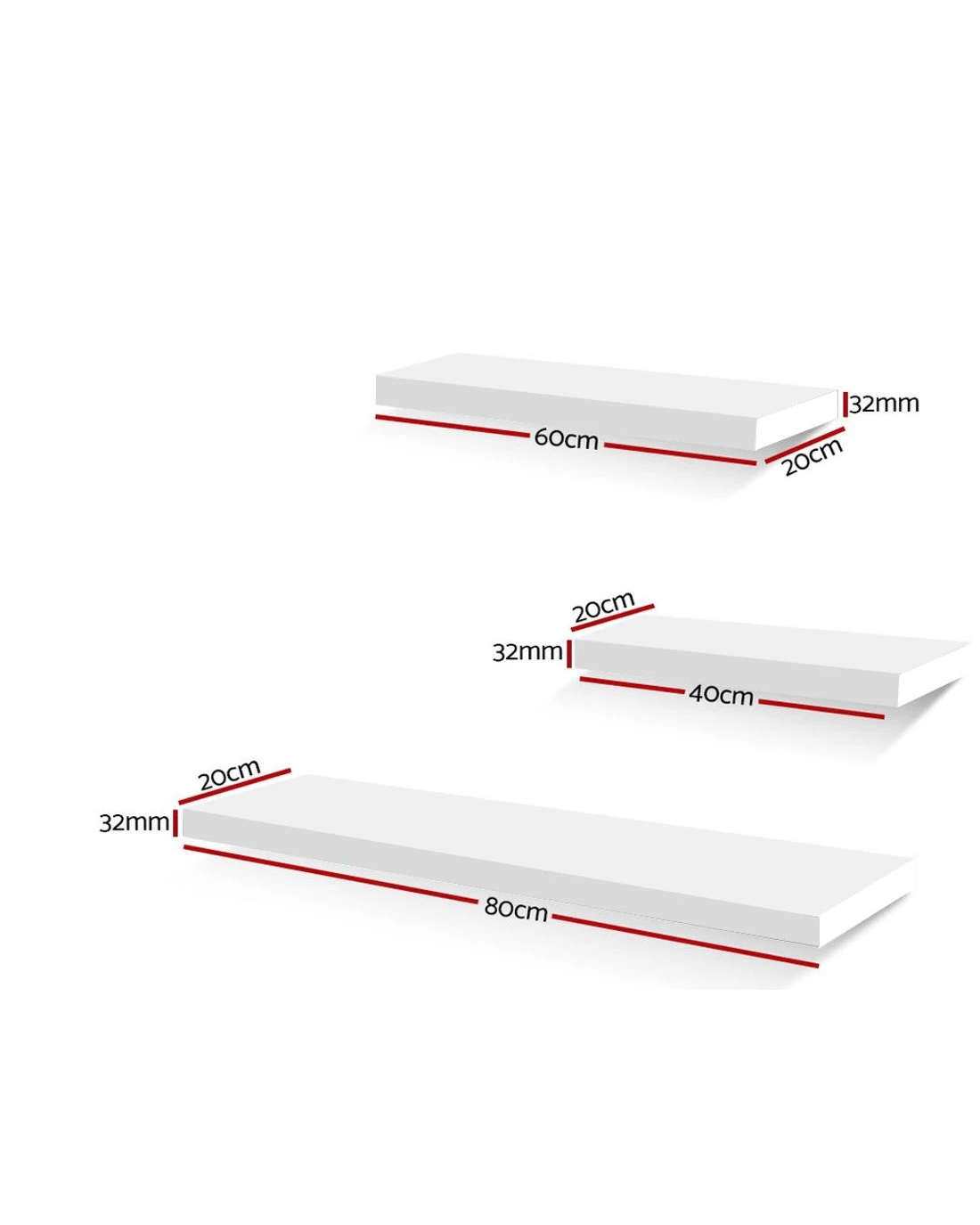 Artiss Floating Wall Shelf Set of 3 - White