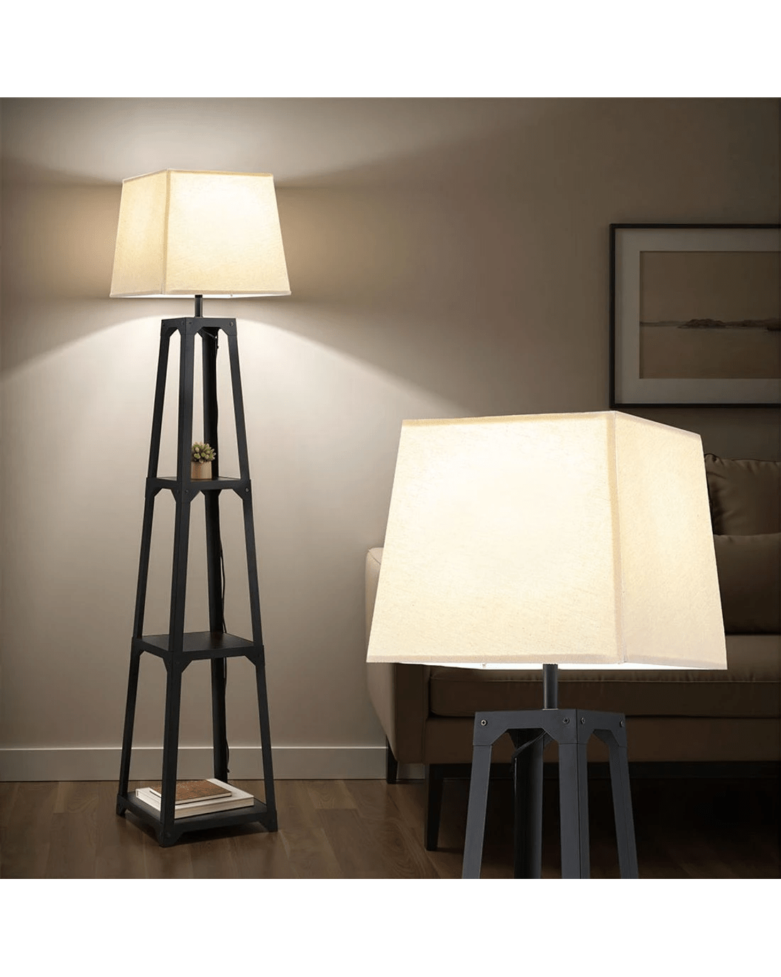 Sold by Aisle SixArtiss Floor Lamp 3 Tier Shelf Storage LED Light Stand Home Room Vintage - Black