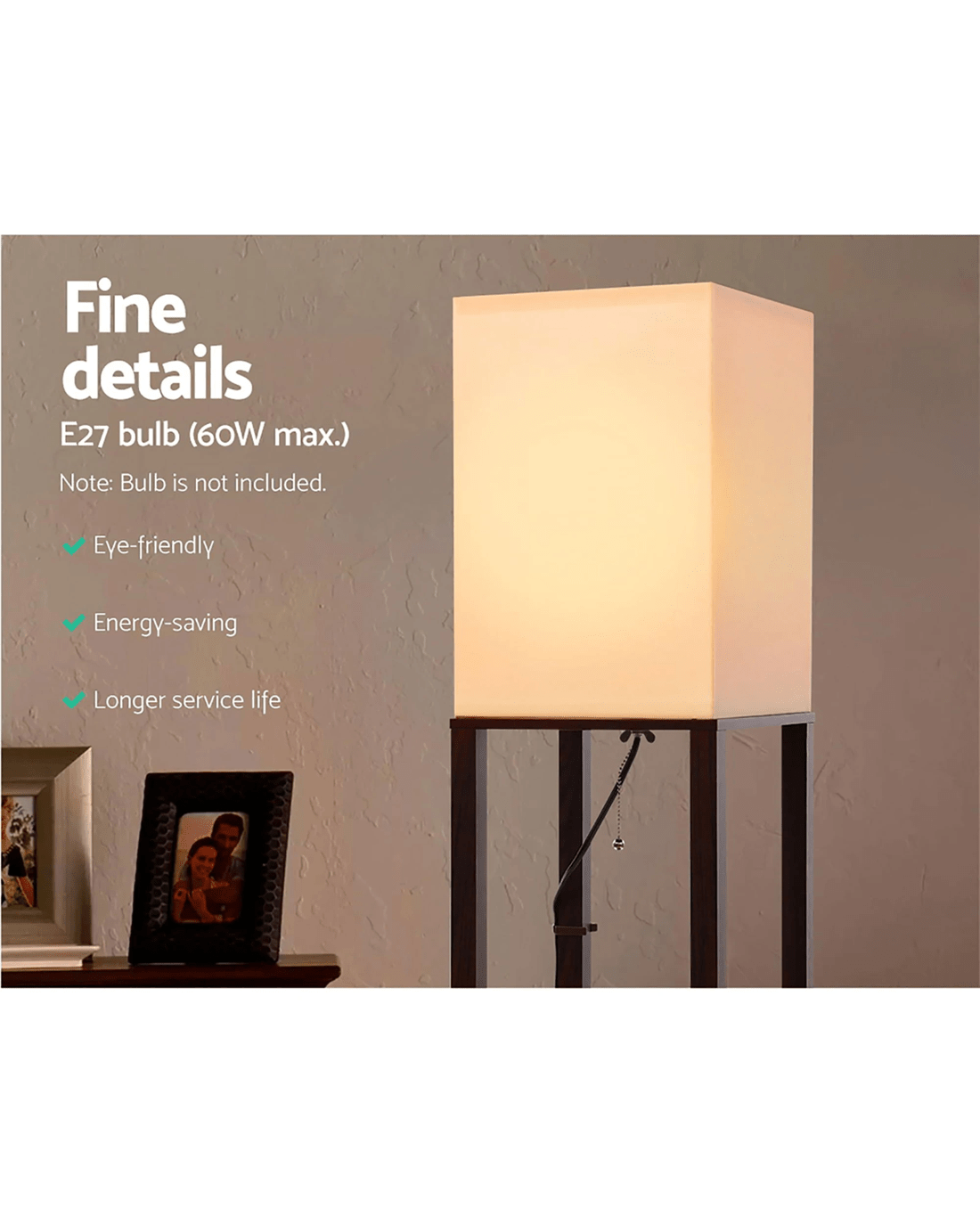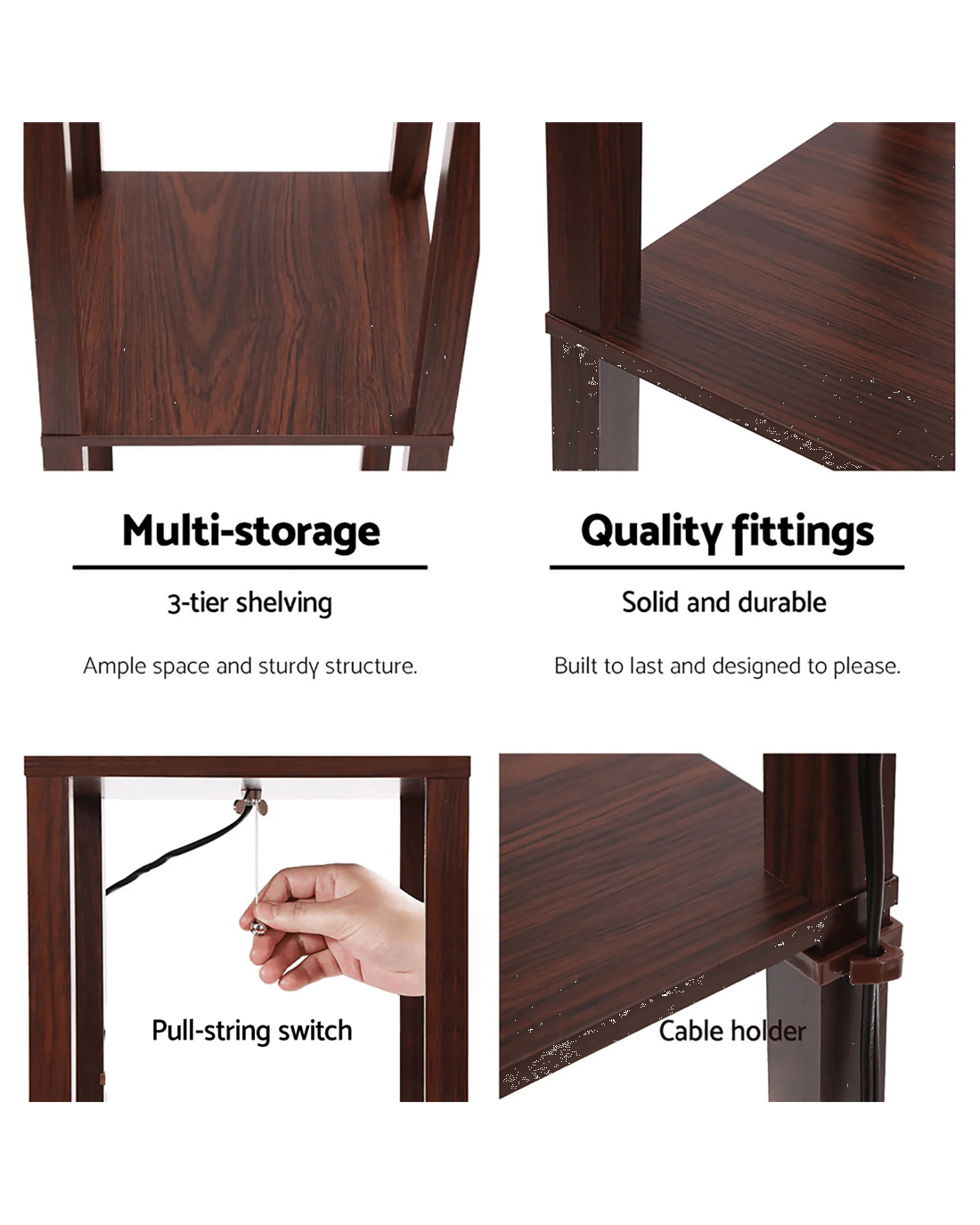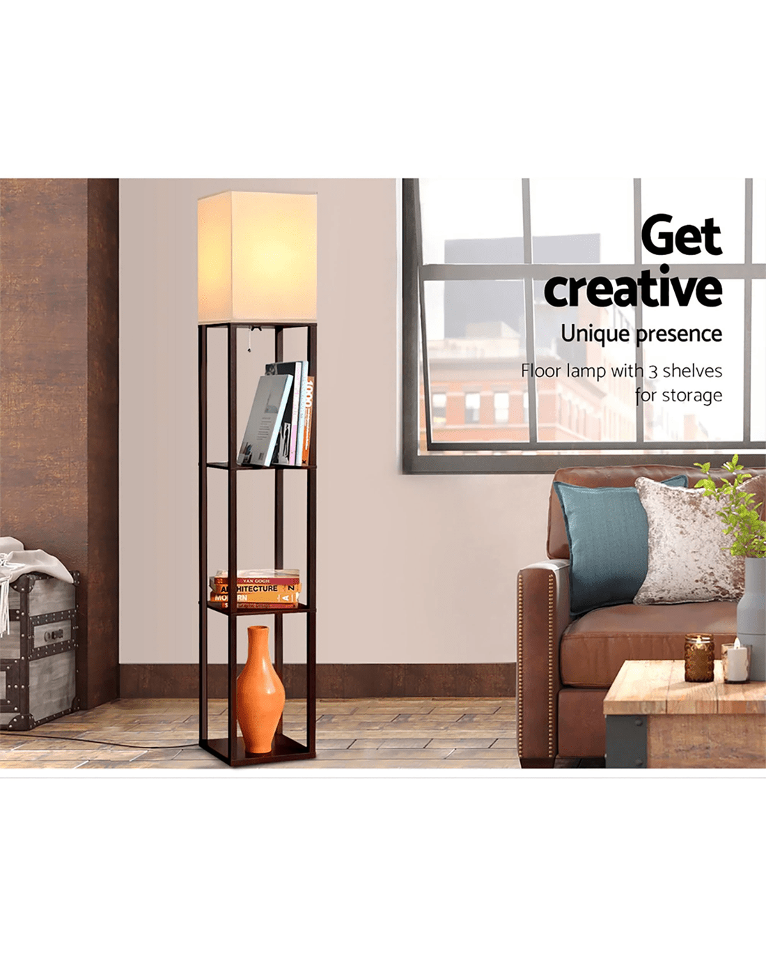 Artiss Floor Lamp 3 Tier Shelf Storage LED Light Stand Home Room Vintage - Brown