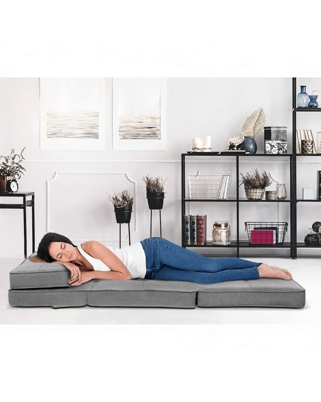 Designed to be fully adjustable, our Lounge Sofa Bed perfectly angled for reading, watching TV or surfing on your device, or have it fully flat for restful sleep. Fact is, there are five adjustable angles with three locking position: head, waist and leg, so that you can enjoy your activity in the most precise and supportive position. Made of heavy-duty steel, the lounge sofa bed is strong and sturdy. Plus, the generously padded sofa bed features a high-resilience cushion and upholstered in double-stitched skin-soft linen are total comfort. Better still, the cover can be removed for cleaning when required. Not least, the lounge sofa bed can be folded foe space-saving storage.