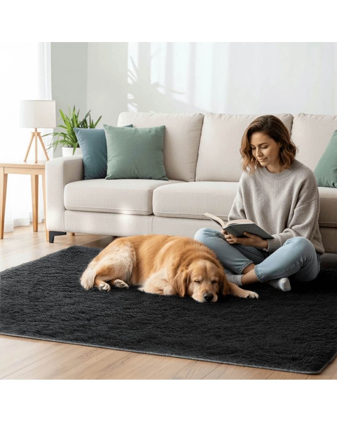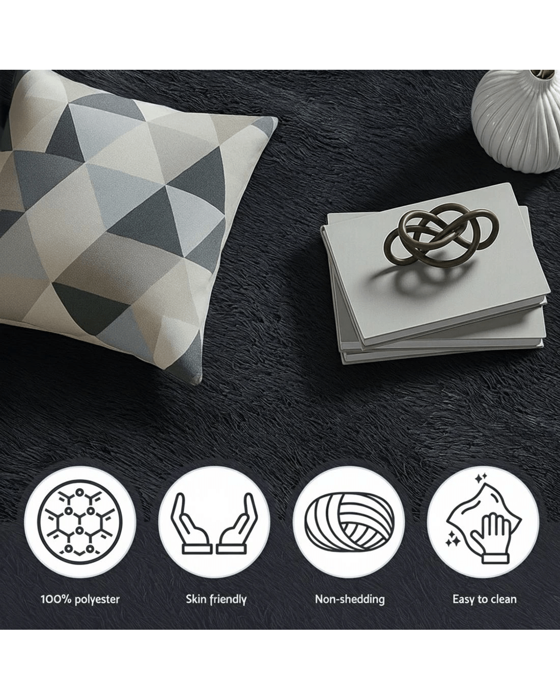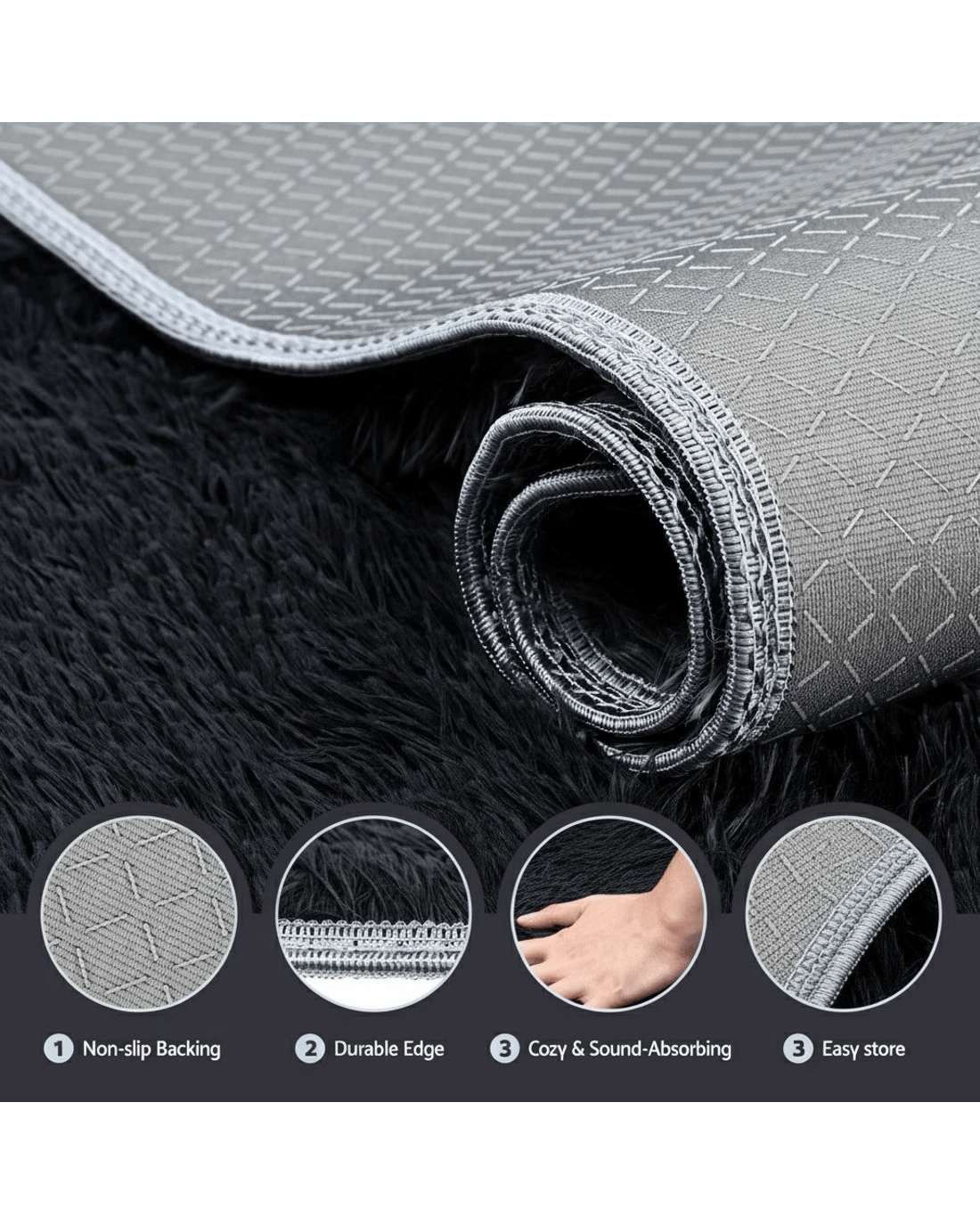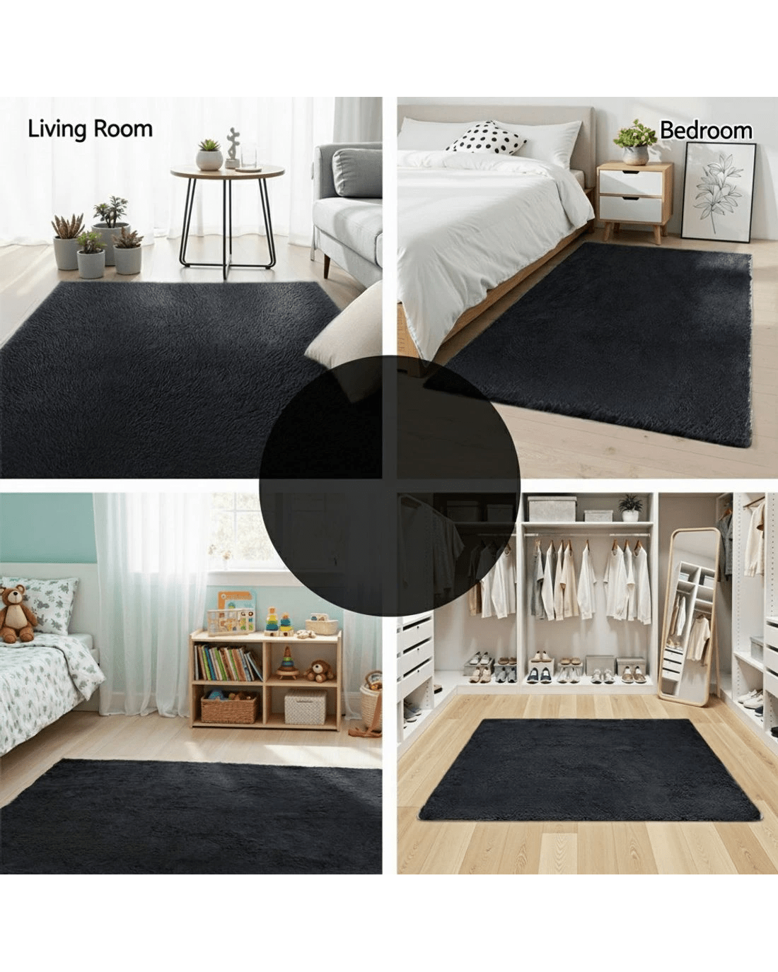 Artiss Floor Rug 140x200cm Plush Area Shaggy Rug Living Room Bedroom Carpet - Black