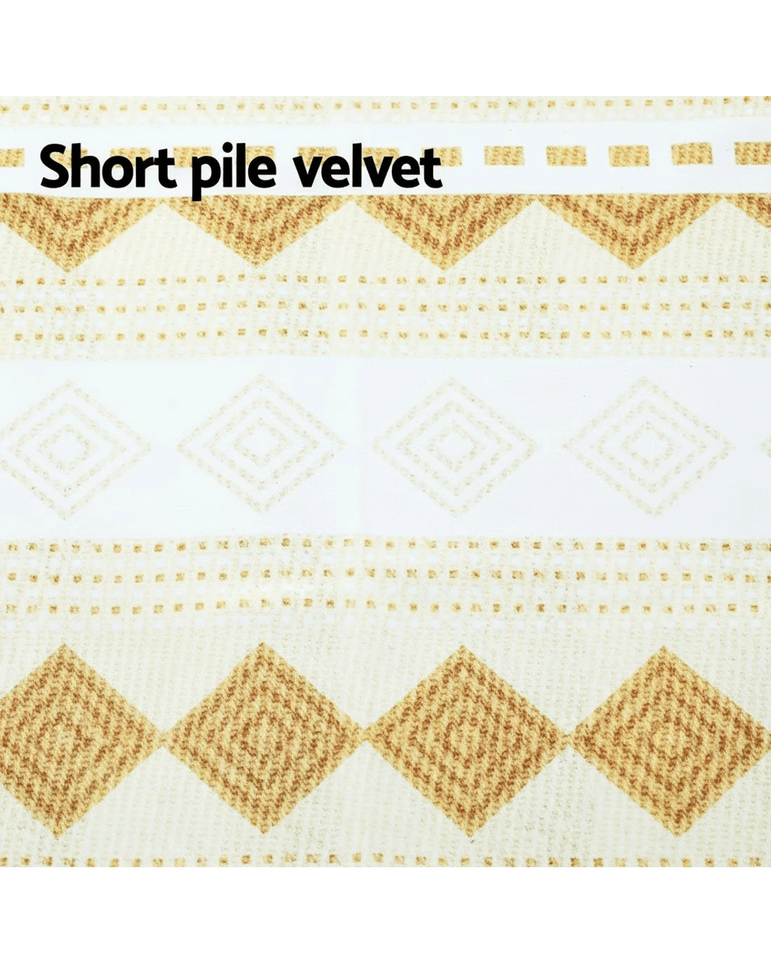 Enhance your home décor with an Artiss Ella Floor Rug. Made from plush crystal velvet, Artiss rugs are water-repellent, fade-resistant, and have a rich velvety soft feeling that keeps your floors warm and comfortable. Its chic bohemian-style design suits a wide variety of interior styles thanks to its neutral hues. It does not shed any fibres even after long use thanks to its quality stitching, making it ideal for anyone who wants a hassle-free rug. The rug is not only washable for easy maintenance, but it also features stylish knitted hemming and a base of anti-slip granules to prevent tripping. Not least, the rug is easy to roll and fold for storage if necessary. For a stylish way to keep your floors warm and protected, choose an Artiss Ella Floor Rug today.