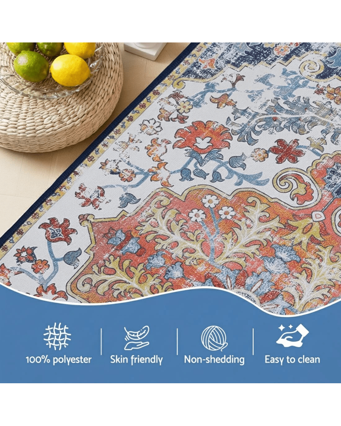 Add a splash of colour this Spring with the Artiss Bohemian Accent Rug. This mat features a stunning vintage medallion design on velvety-soft flannel. It's the perfect doormat or bath mat, with an anti-slip backing for safety. A beautiful and practical touch for any room.