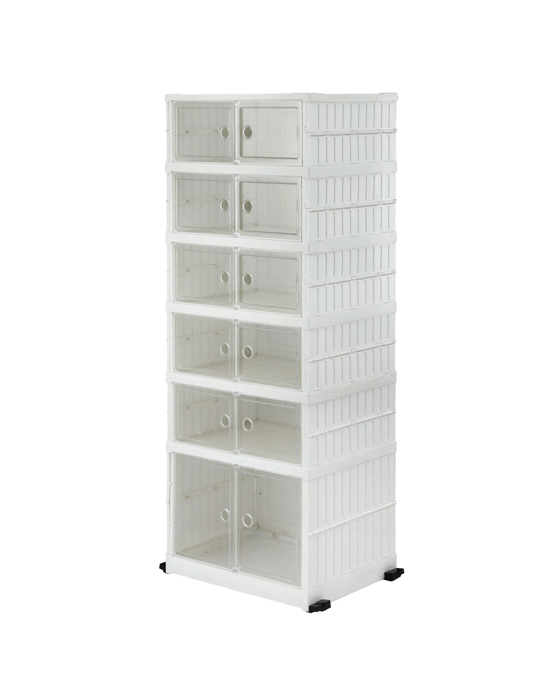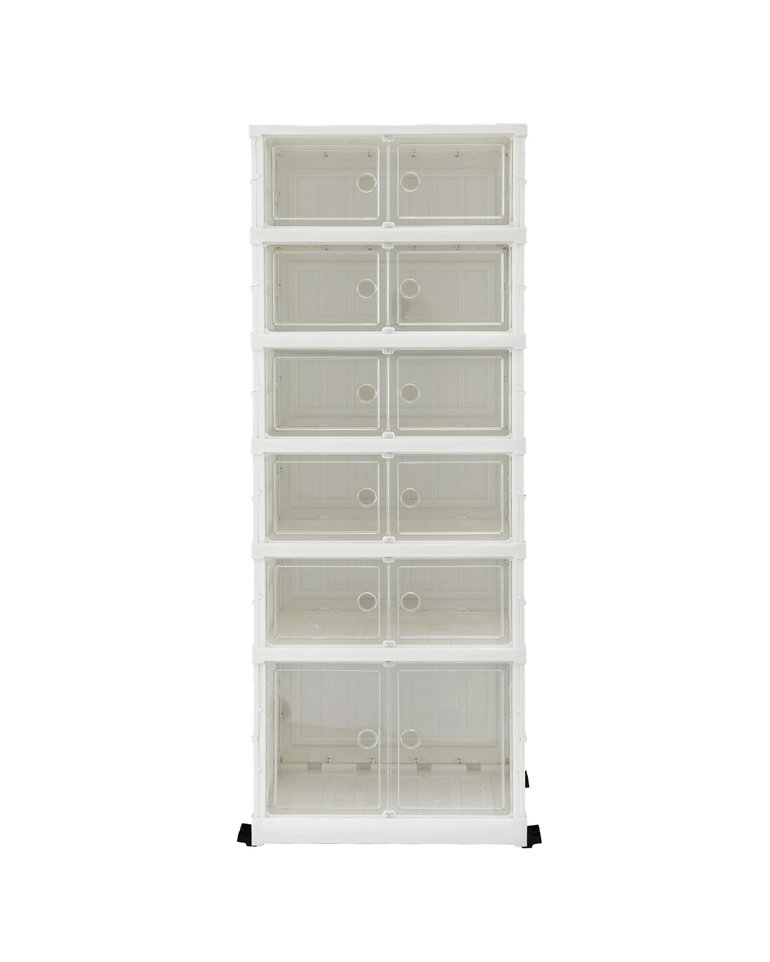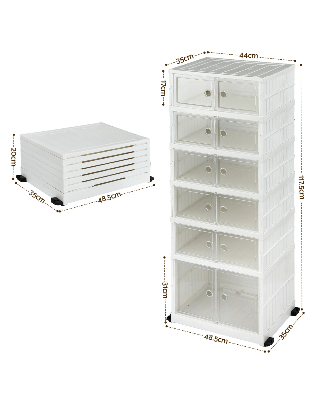 Organise your home effortlessly with the white Artiss 6-Tier Foldable Shoe Rack. Designed with a clever one-piece frame, this premium PP plastic organiser sets up in a flash. Its slimline profile saves valuable floor space, making it brilliant for your entryway, wardrobe, living room, or garage. You'll love the see-through magnetic doors that keep dust away while letting you spot your favourite pairs instantly. Complete with handy bottom wheels for easy moving, it securely holds 5kg per tier and 25kg on the tabletop (Dimensions: 48.5x35x117.5cm). Enjoy a clutter-free home today!