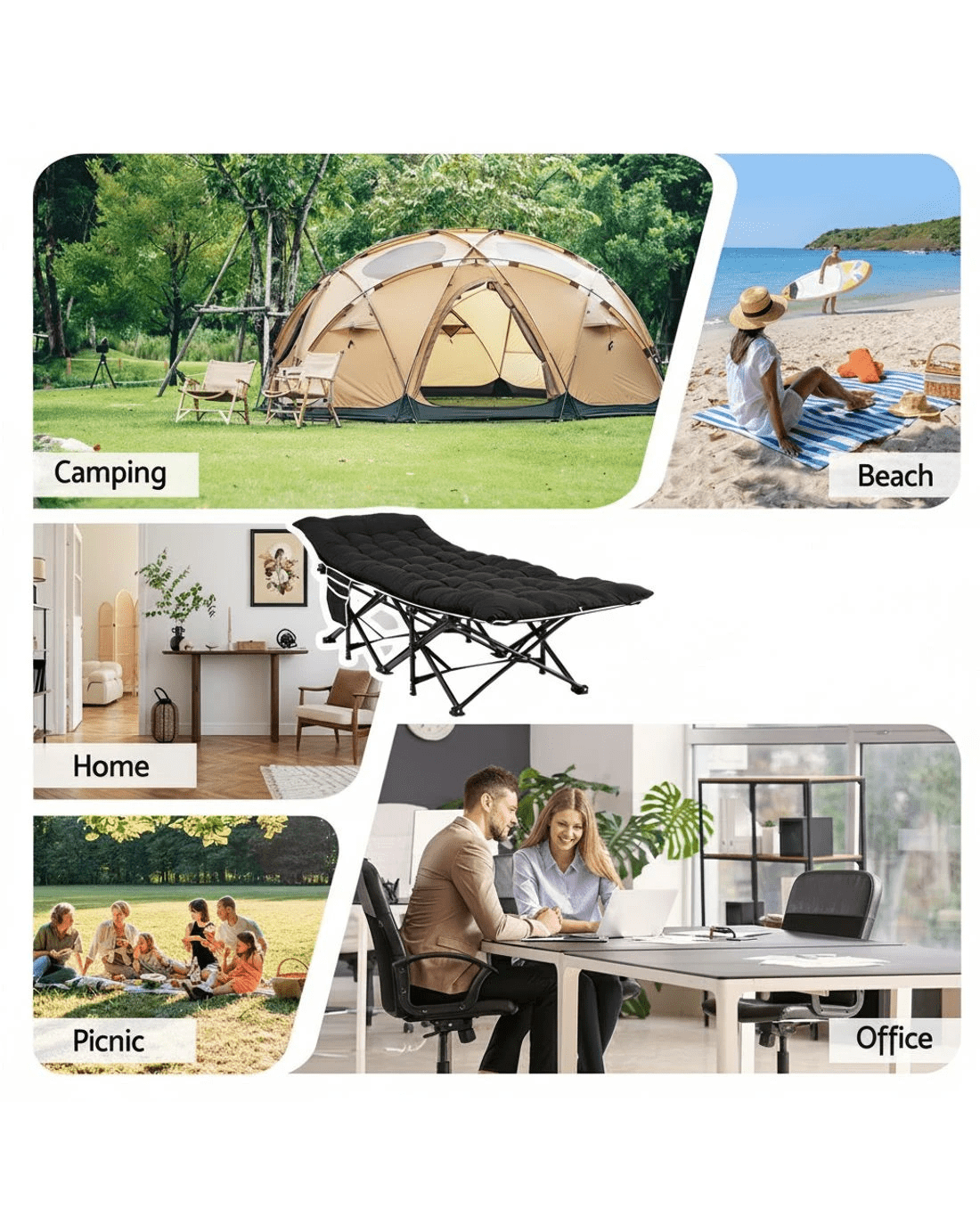 The Artiss Portable Folding Bed is the ultimate solution for versatile sleeping needs. Featuring a durable metal structure, this compact folding bed is designed for small apartments, guest rooms, and office naps. Its lightweight and foldable design make it easy to store and transport. The included removable mattress adds customisable comfort, while the anti-slip foot pads ensure stability on all surfaces. Perfect for camping trips, temporary accommodations, or everyday use, this space-saving bed combines practicality, comfort, and modern style.