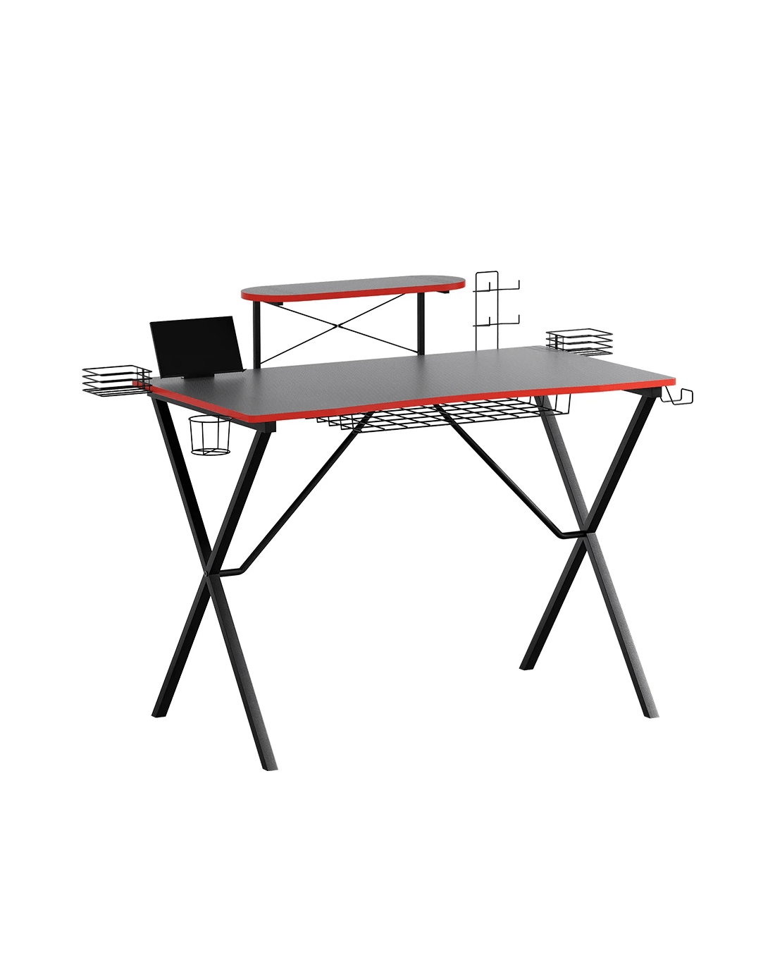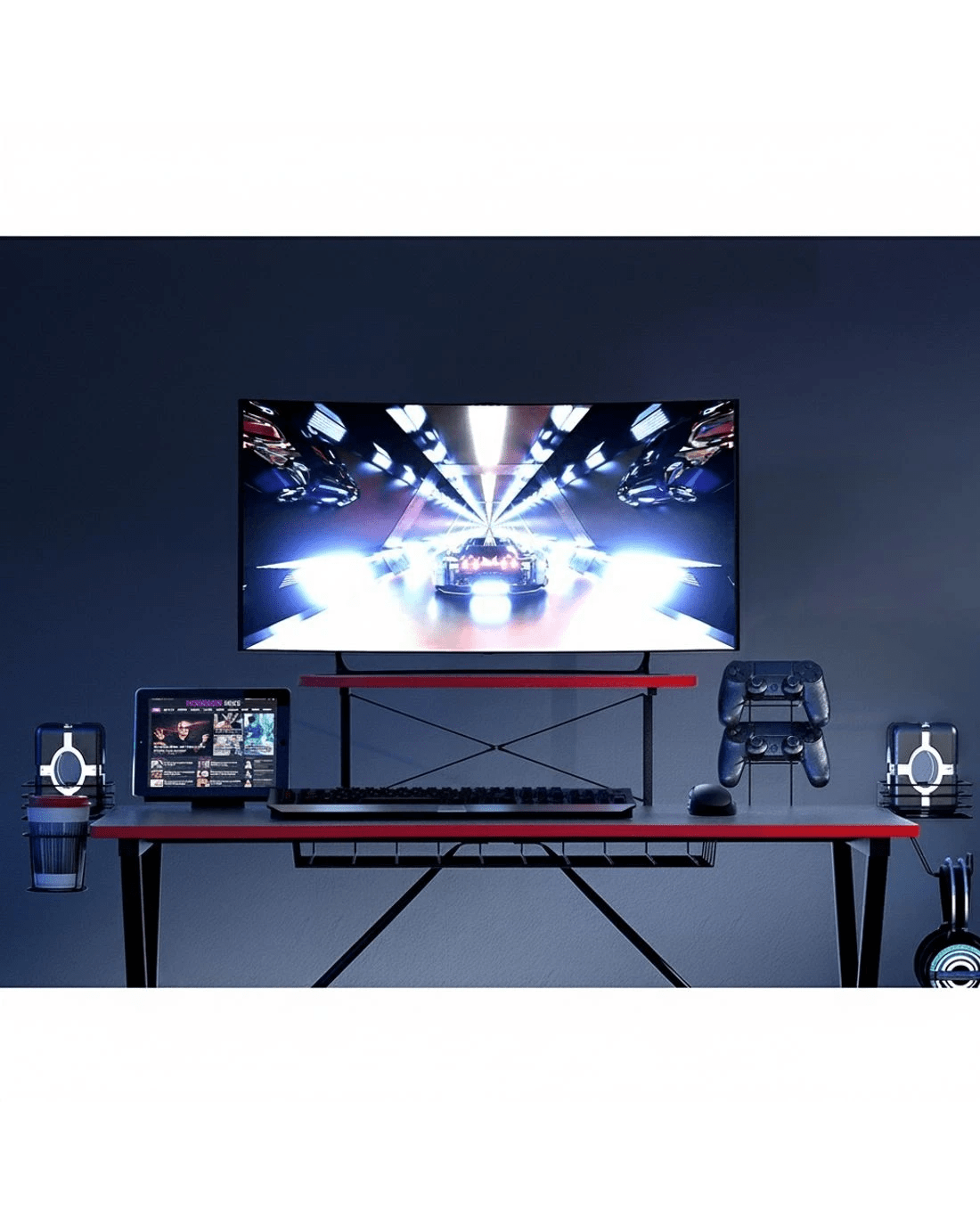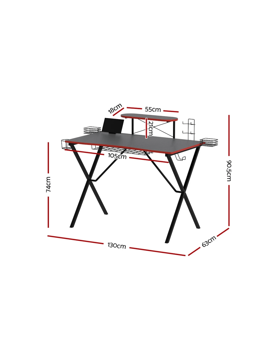Setup your home gaming station with Artiss gaming desk. Designed for avid gamers, this gaming table is both stylish and practical. To make your gaming experience convenient, this gaming table has spacious and sturdy surface. It features a two-tier design, which means you have enough room to keep your gaming gear. Additionally, it comes with a cup holder, side storage basket, under-table shelf, headphone hook, hook rack storage, and tablet holder. For ultimate durability and sturdiness, the gaming table features powder-coated solid steel frame with MDF board table surface, PVC veneer finish, and 15mm thickness. Its solid construction ensures that it will withstand the rigours of everyday use. Having been constructed from premium carbon steel, it offers good weight holding capacity. The gaming table surface has 90kg capacity, the top tier has 10kg capacity, and the bottom shelf has 2kg capacity. It also comes with one year warranty for your peace of mind. Furthermore, the table features sleek, x-shaped legs, which ensures ultimate stability and prevents shaking. This unique and thoughtful construction also ensures better support. With so much that it has to offer, bring home this gaming table to take your gaming session to the next level.