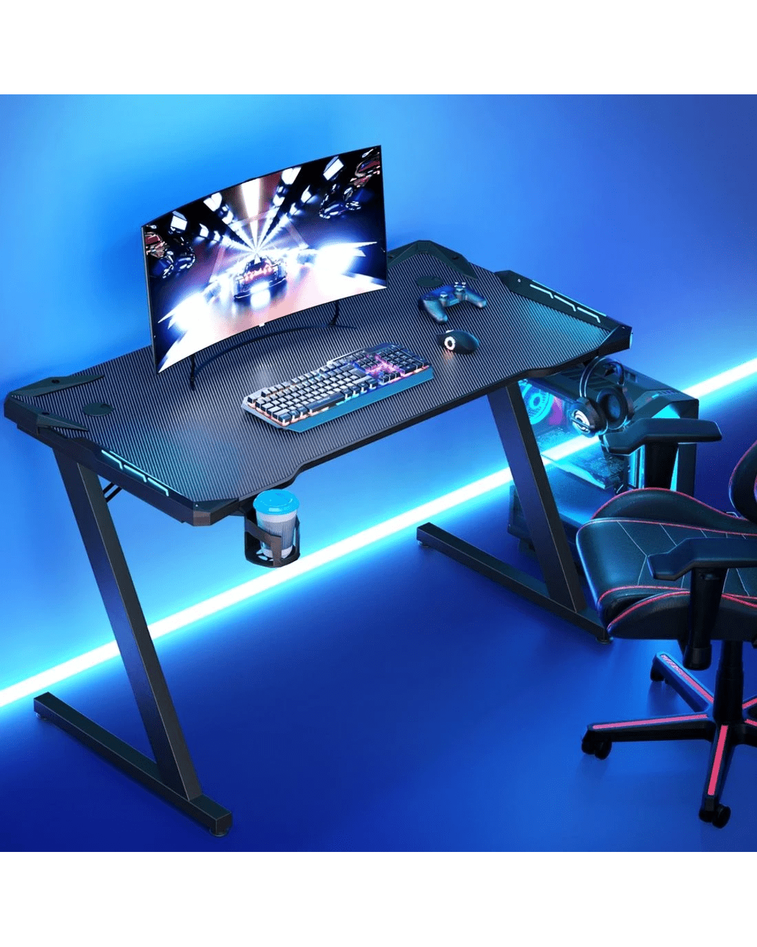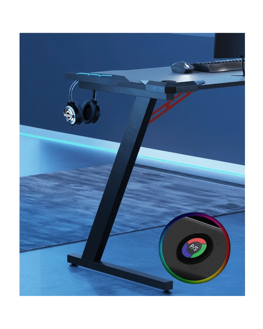 Sold by Aisle SixArtiss Gaming Desk Computer Desks LED Light 120CM - Black