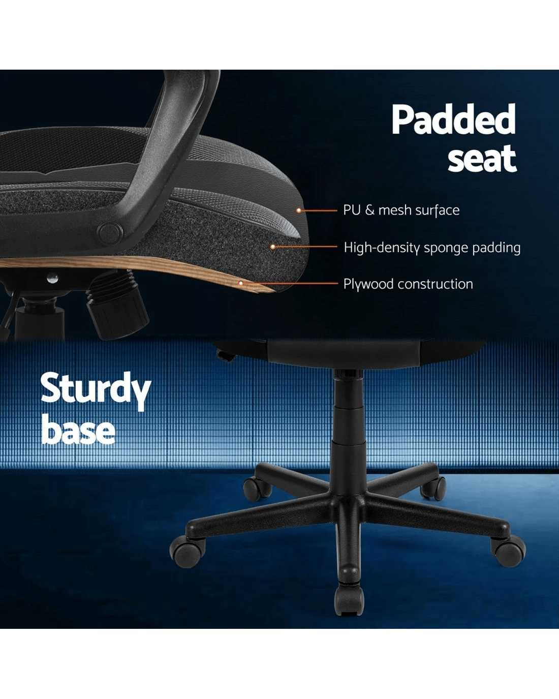 With its distinct and comfortable design, the Artiss Gaming Chair is perfect for the professional gamer or executive. Upholstered in premium PU leather and breathable mesh, the chair seat is richly padded and comfortable thanks to its high-density sponge padding. The plywood frame keeps the chair firm in the right places for adequate support. Taking its design cues from a racing car seat, the high-back body wrap chair also features two holes near the headrest for ample ventilation. Strong PP armrests give you a place to rest your weary arms after long hours of typing, clicking or flipping through documents. The chair features a gas lift for 360-degree rotation and height adjustment, and the stylish nylon base has five castor wheels, ensuring you can cruise anywhere smoothly. Best of all, the chair features tilt adjustment so you can get the perfect angle for working, gaming or napping. Whatever drives you, our gaming chair will give you the utmost comfort and support.