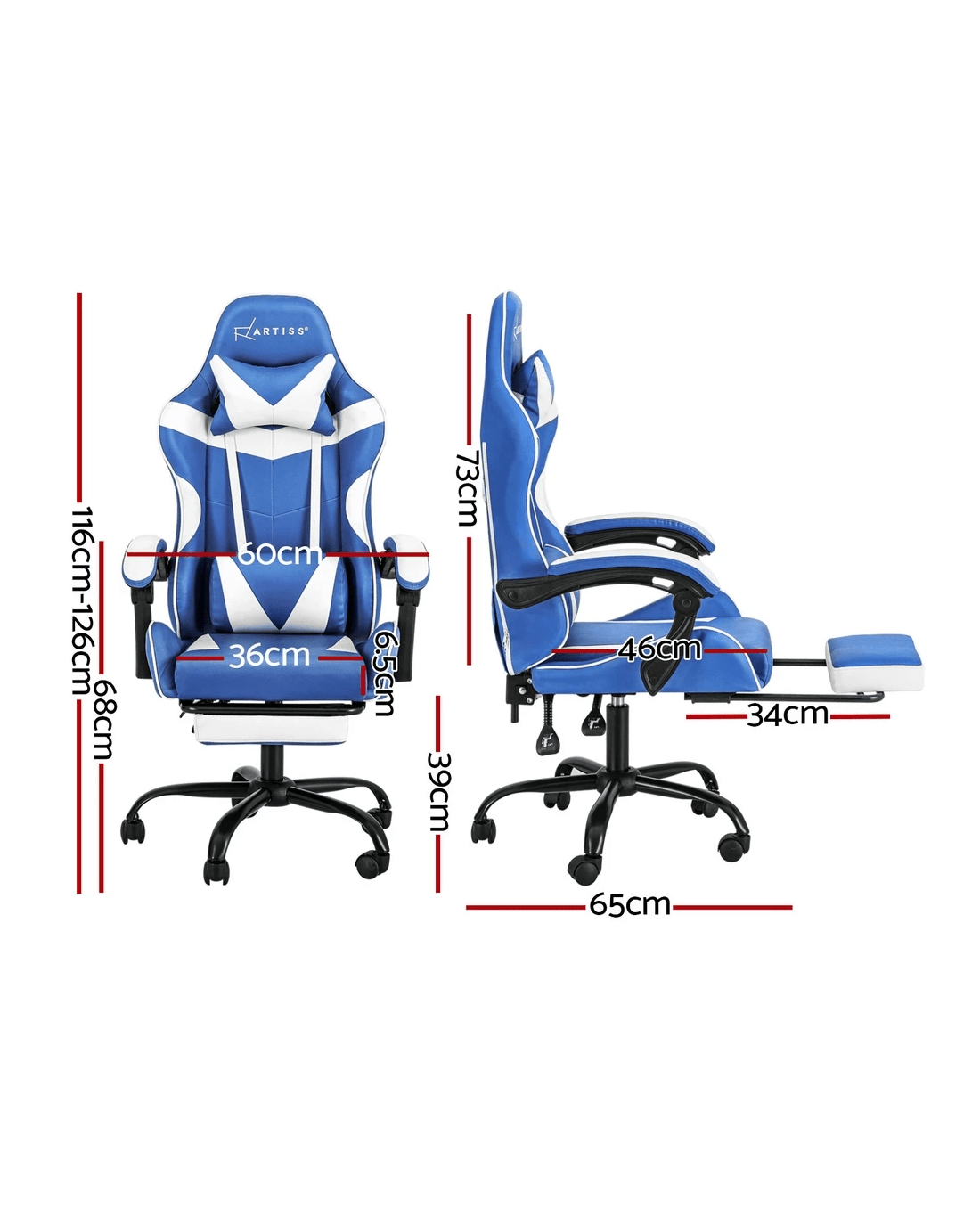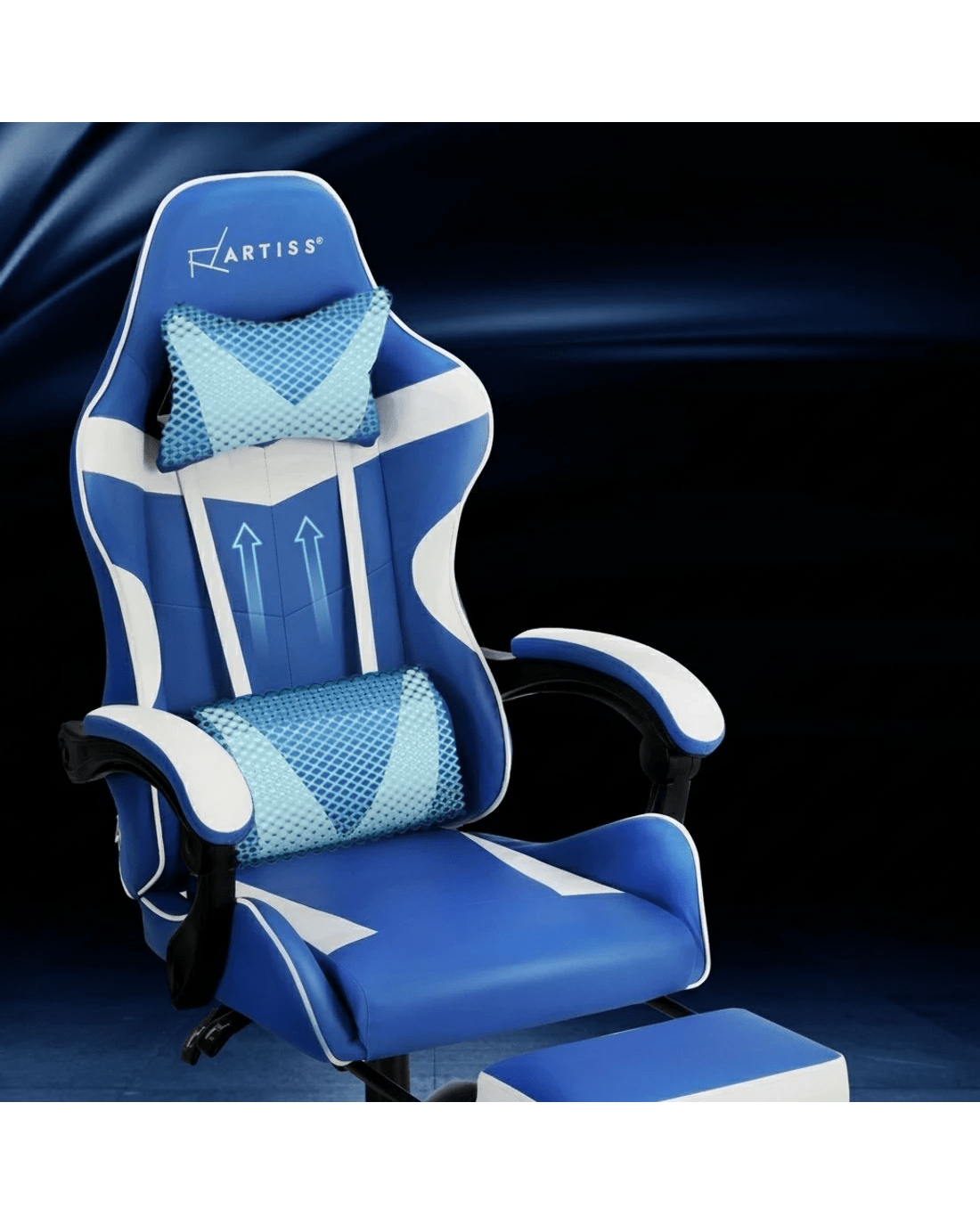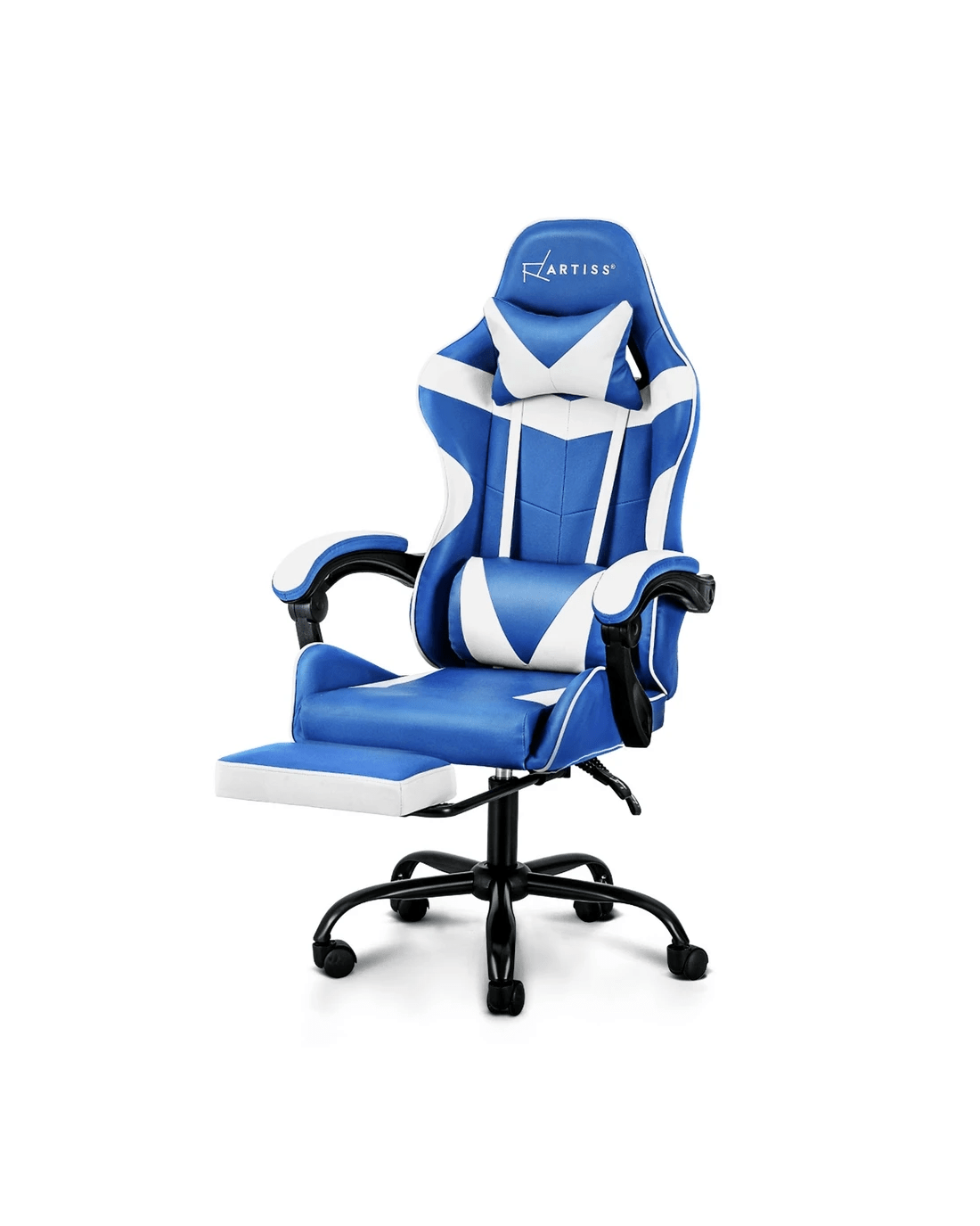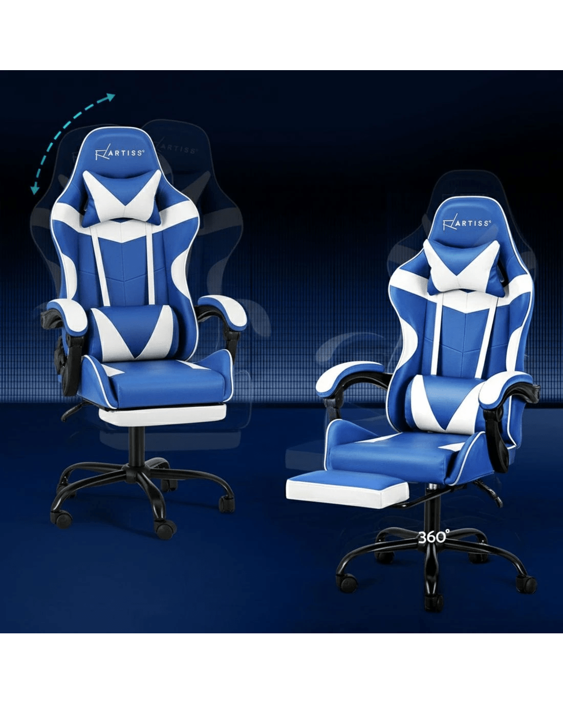 Is your office chair giving you a tough time? Stay productive and work feeling comfortable with our Artiss Comfy Gaming Chair. Our office chairs are designed with your comfort in mind whether you're a professional executive or pro-gamer. Crafted precisely with solid materials and attention to detail, the office chair is sturdy and comes with a high-density sponge padding seat. It also features a contoured high-back design that will give you the support you need and help you have a better posture, The retractable footrest helps you sit comfortably for long periods. Adjust the chair's height and armrest height, remove the head or lumbar cuhion, and recline the chair between 90 and 135 degrees to suit your preferences. Easily follow the conversation around the office with 360-degree swivel and five dual-wheel smooth castor wheels. Contemporary and well-crafted, our office chair is sure to offer you a super comfortable seat all day long. Add the Artiss Comfy Gaming Chair to your home office or study room today.