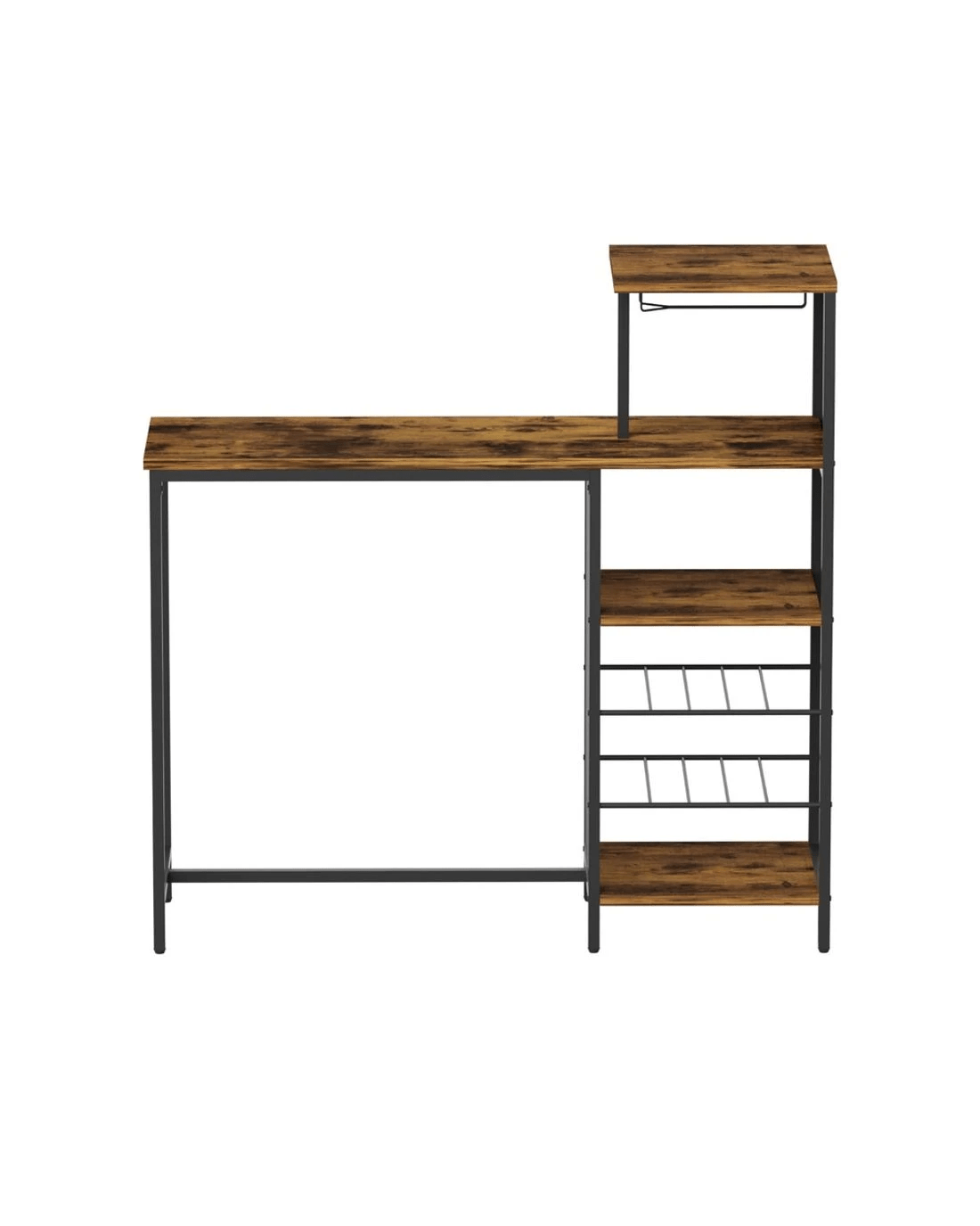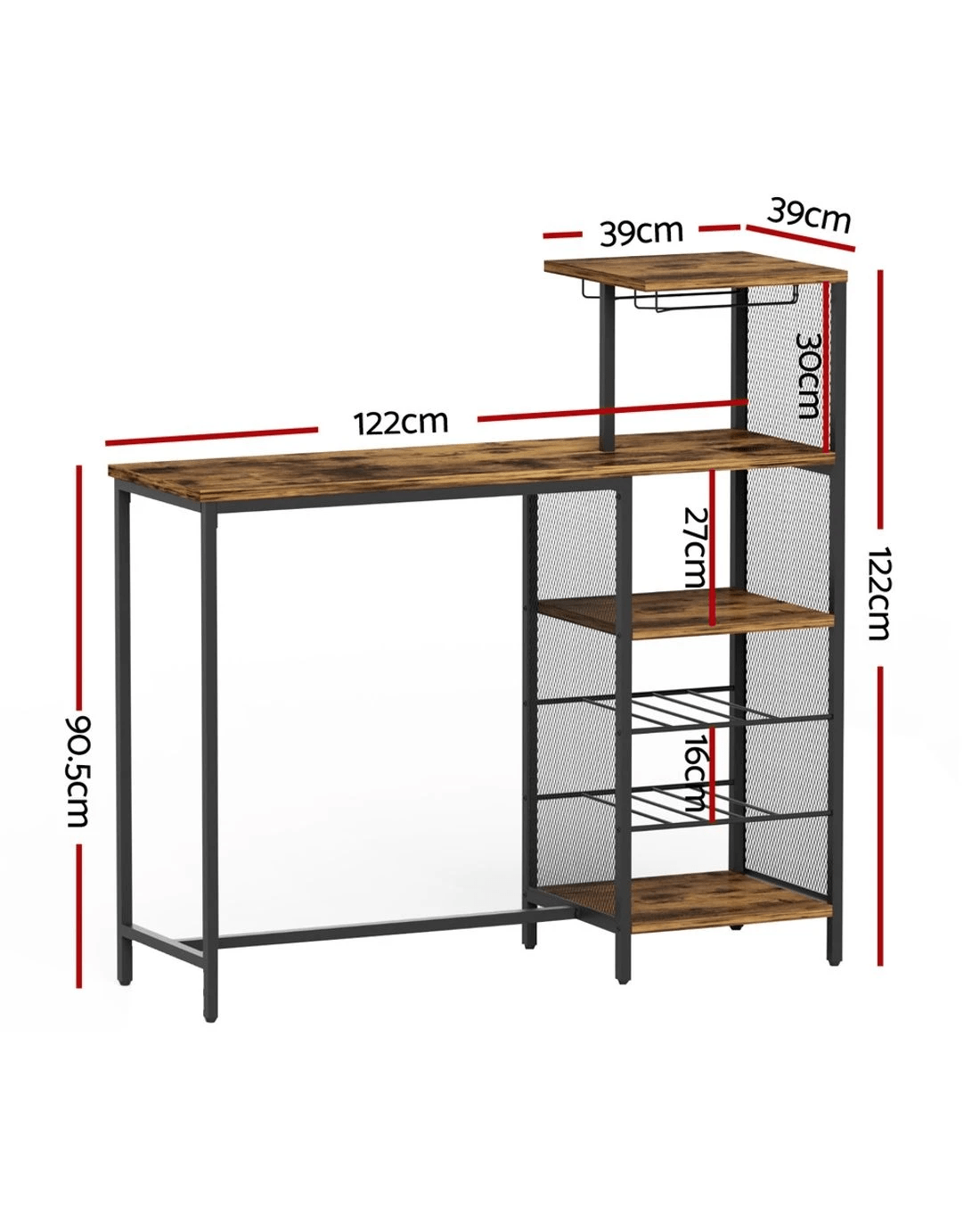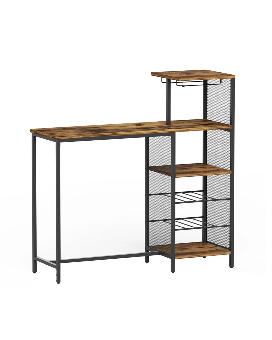Sold by Aisle SixArtiss Industrial Bar Table Wine Rack Cup Holders Durable Storage Steel Metal Frame 122cm Compact Hub - brown