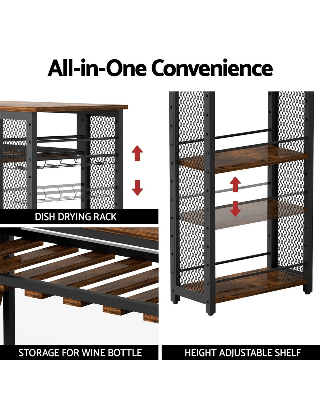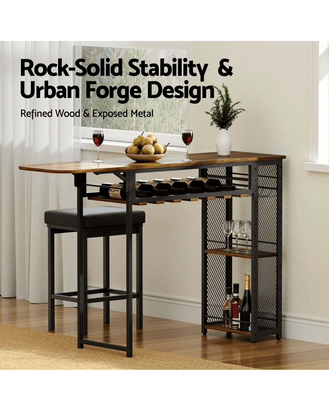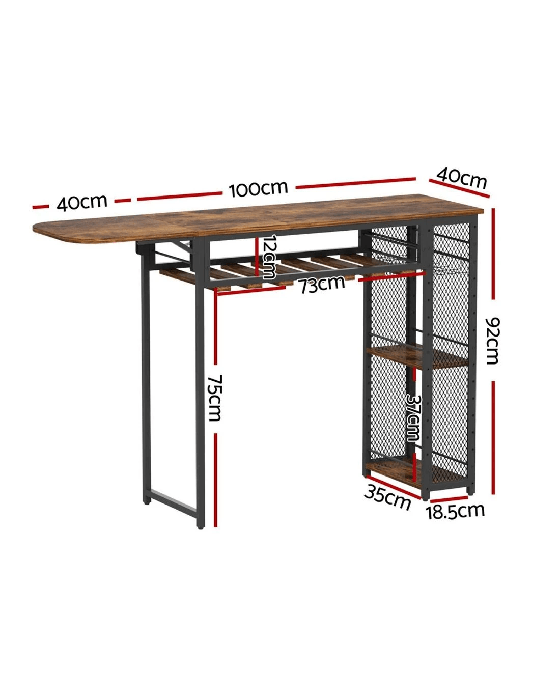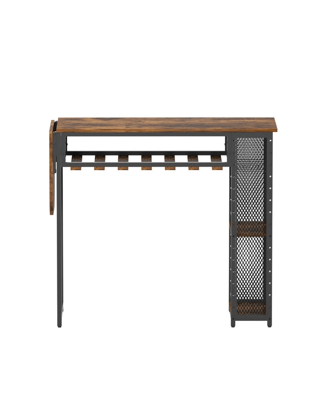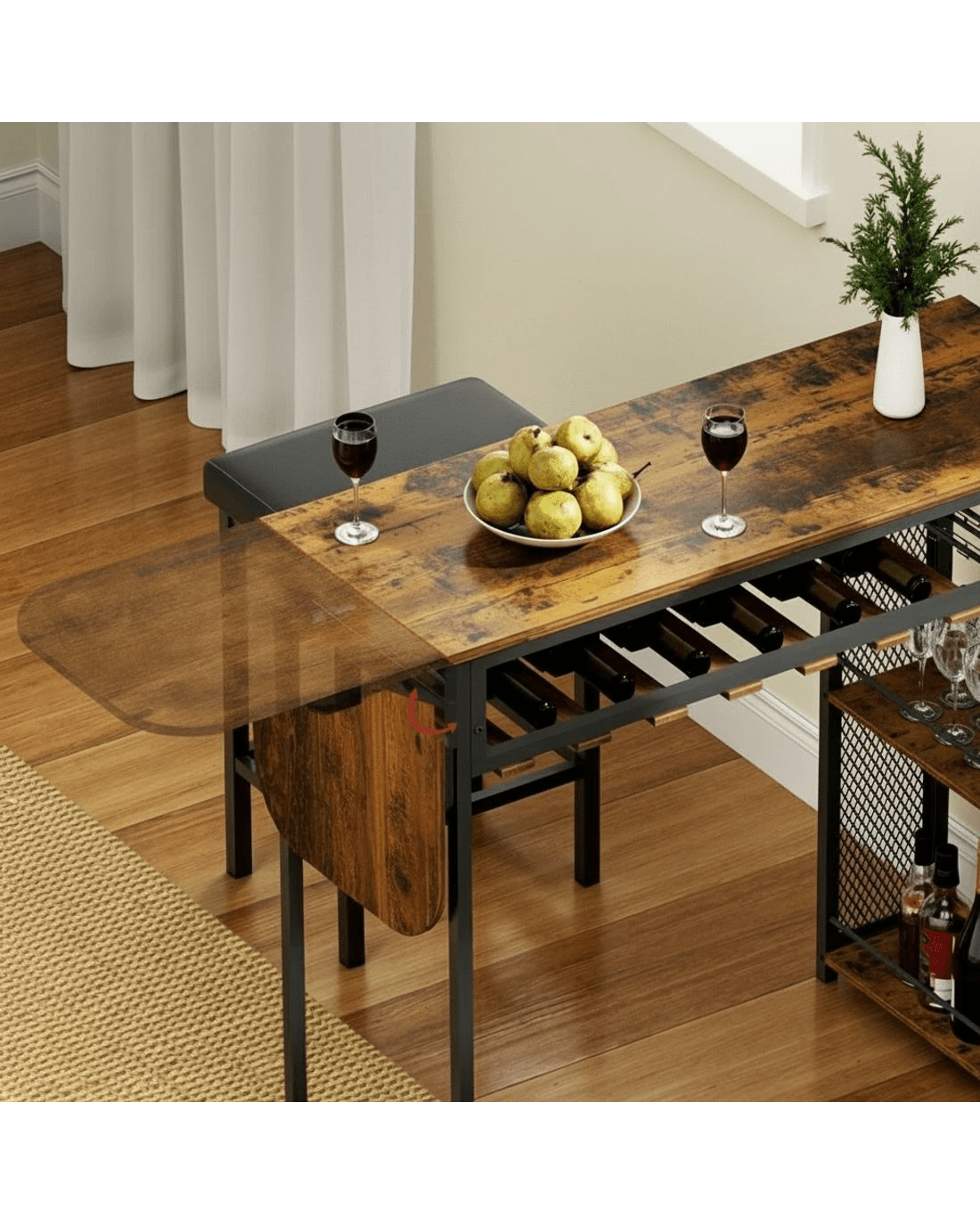 Transform your compact spaces with this industrial-chic bar table featuring intelligent layered organization. The extendable design adapts to any room layout, while built-in wine rack securely stores 6 bottles and dual cup holders keep drinks within reach. Crafted with powder-coated steel for lasting durability, this multi-functional centerpiece seamlessly blends utility with urban aesthetics - perfect for displaying decor collections, organizing barware essentials, or creating an instant entertaining station.