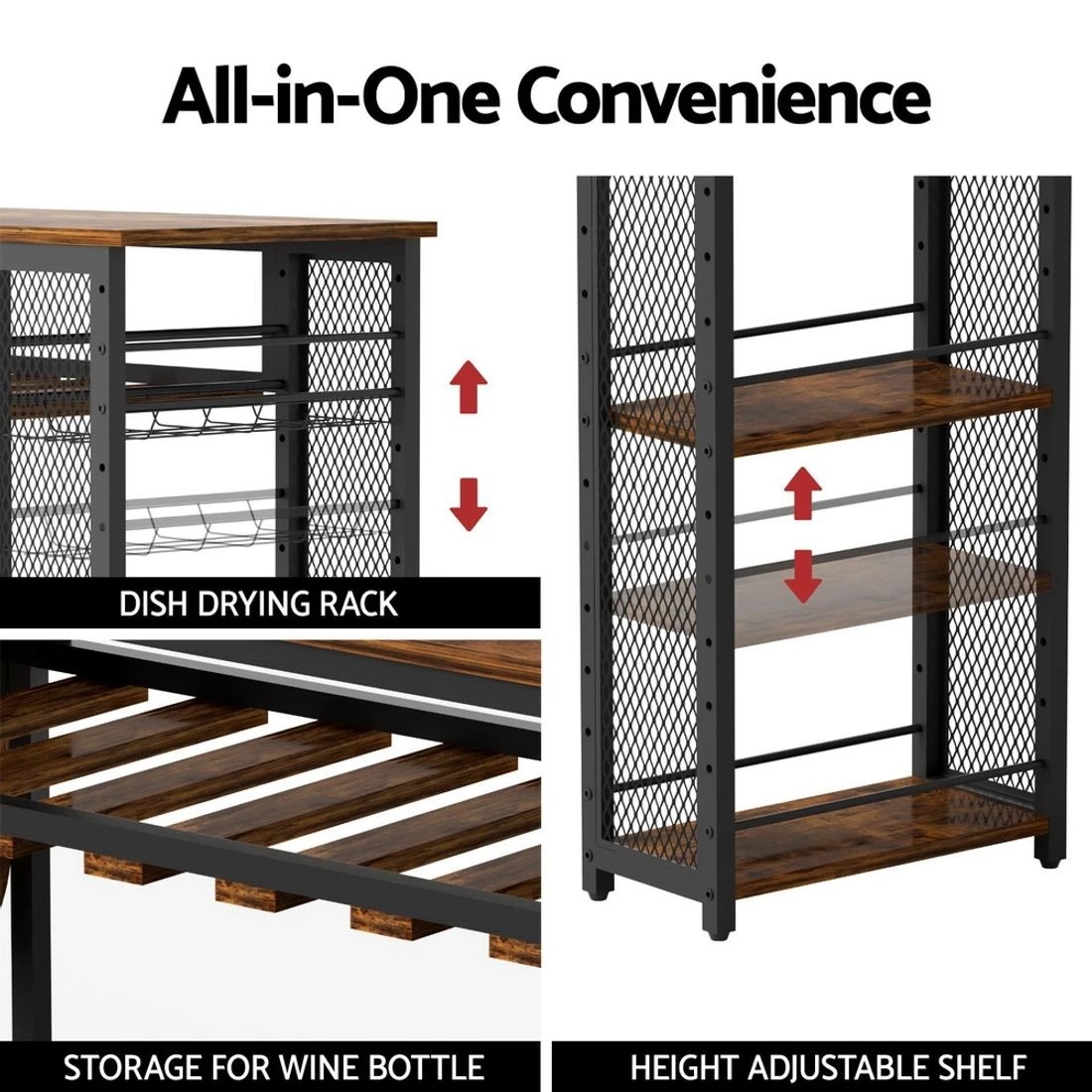 Artiss Industrial Bar Table with Wine Rack Built-in Cup Holder Extendable 140cm - Brown