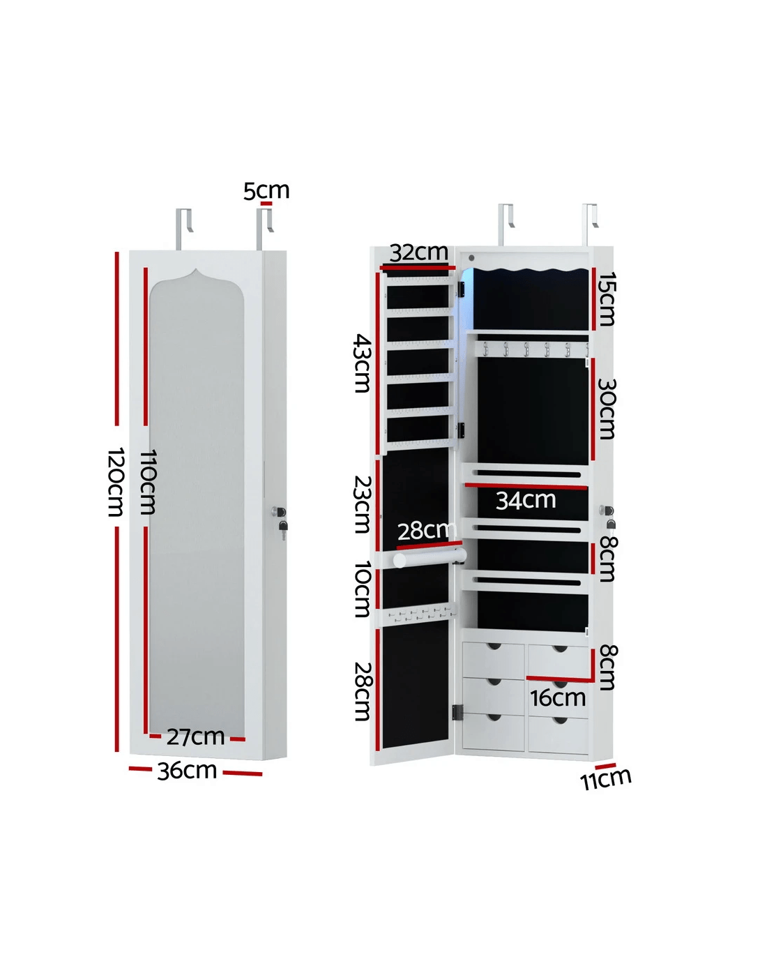 Discover the ultimate Artiss Jewellery Cabinet: crafted from sturdy MDF with ample storage, LED-lit interior, full-length mirror, soft flocking lining, and easy assembly. Ideal for organising and showcasing your collection elegantly.