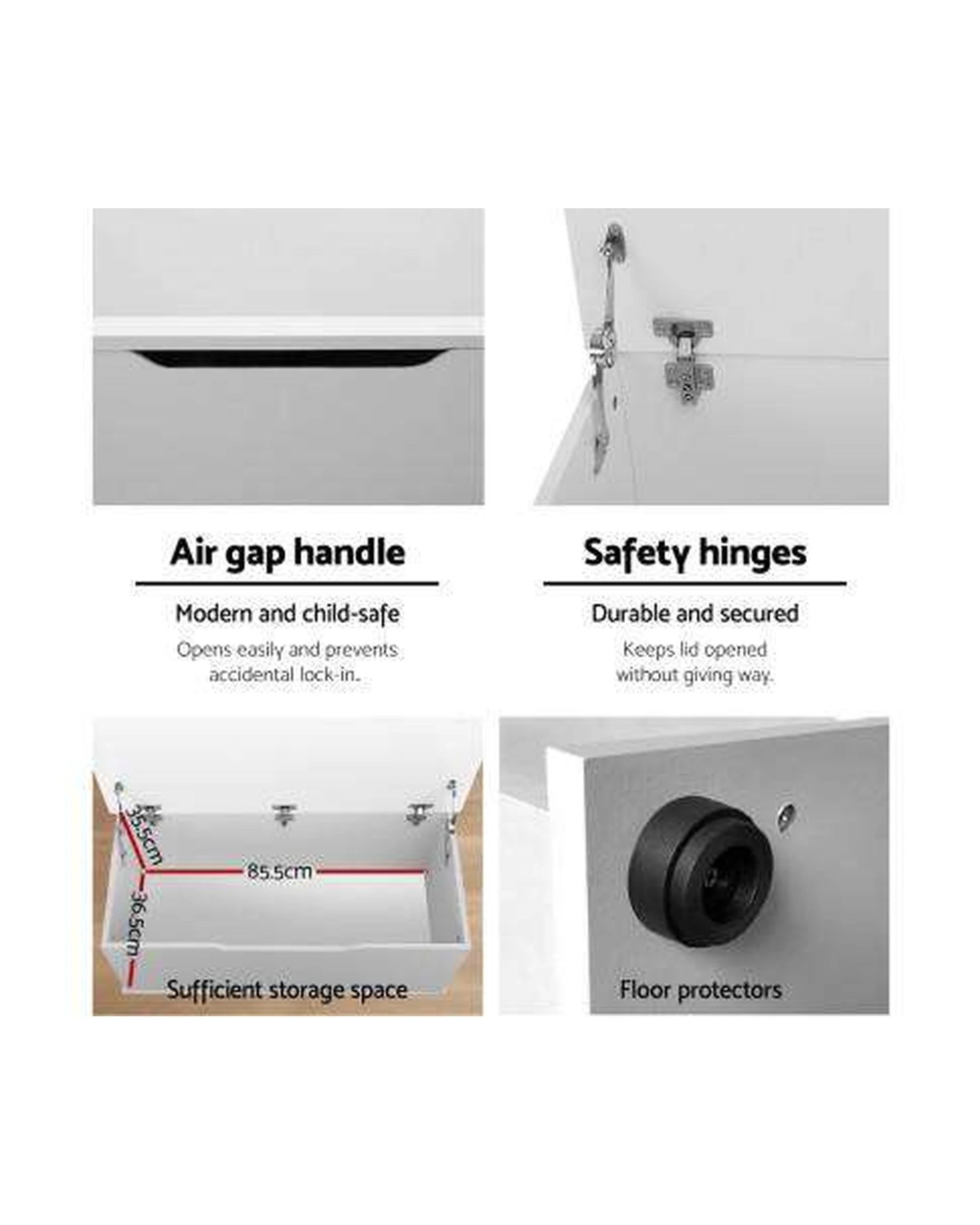 Artiss Keezi Kids Toy Storage Chest — White, 92 x 40 x 40 cm, Safety Hinges & Floor Protectors - White