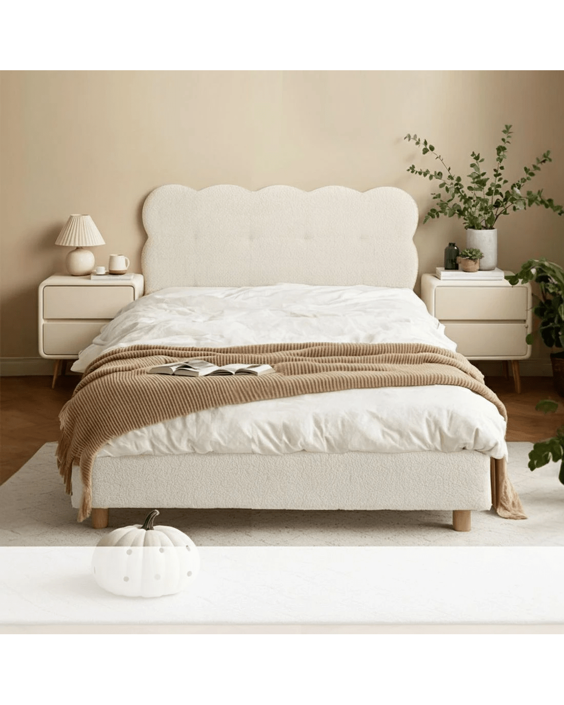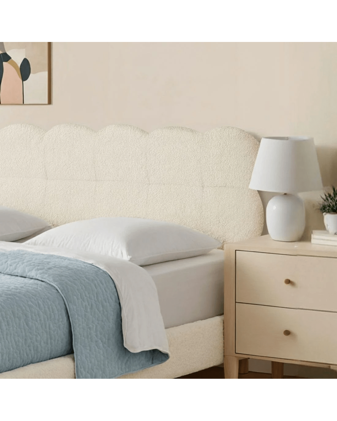 Sold by Aisle SixArtiss King Single Bed Frame Cloud Headboard Boucle Fabric Mattress Platform Base - White