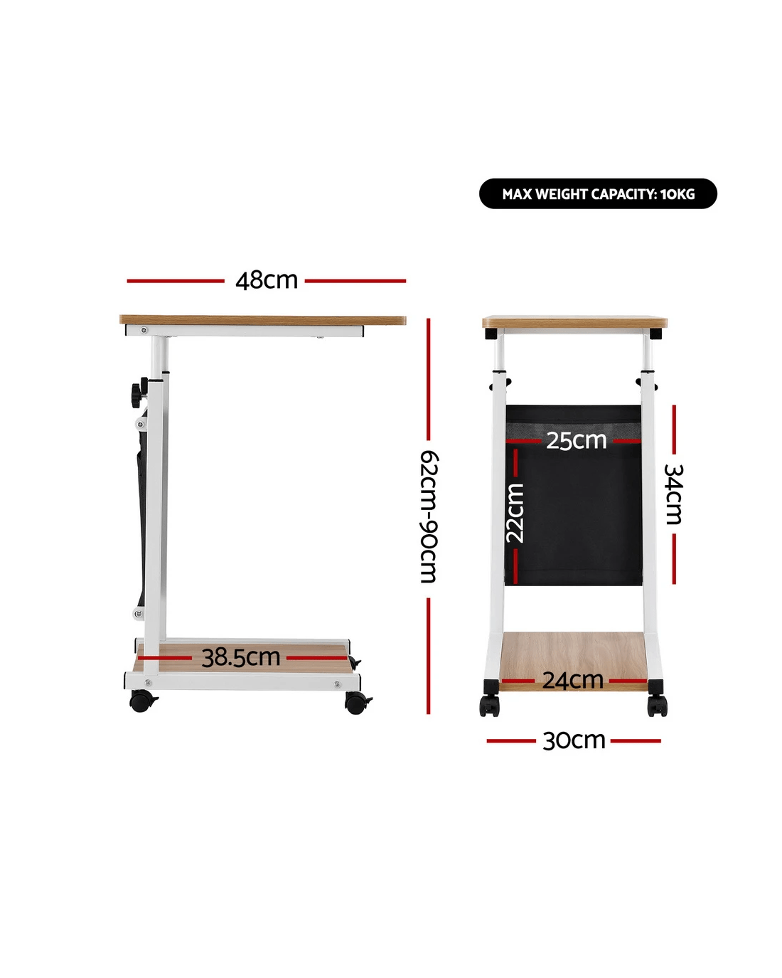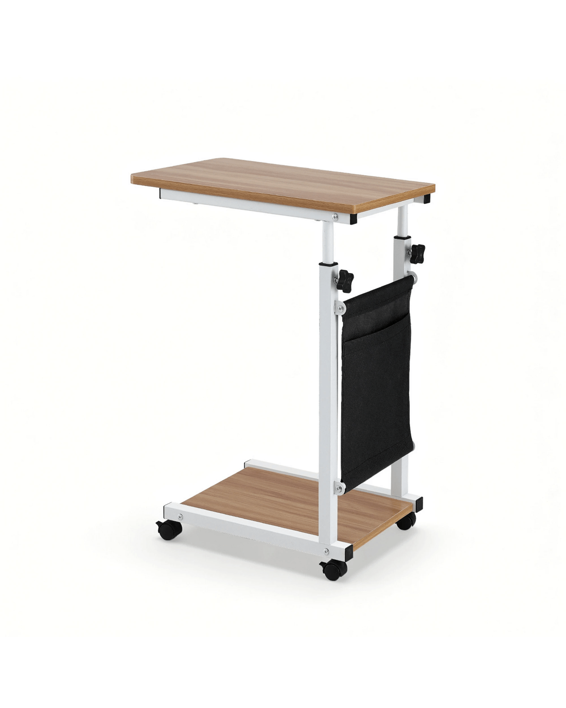 Upgrade your workspace with our adjustable mobile laptop desk combines professional functionality with home comfort. Designed for modern work-from-anywhere lifestyles. This lightweight yet sturdy workstation features smooth-rolling castor wheels, allowing you to effortlessly move it between your bed, couch, or favorite recliner.This versatile workstation features a pneumatic height adjustment system that lets you easily customize your desk in different height with just one hand - perfect for both sitting and standing positions.Crafted with a sturdy C-shaped metal frame, our desk provides exceptional stability while supporting up to 10kg on its spacious surface, which offers a durable and stylish workspace for your laptop, tablet, or paperwork.