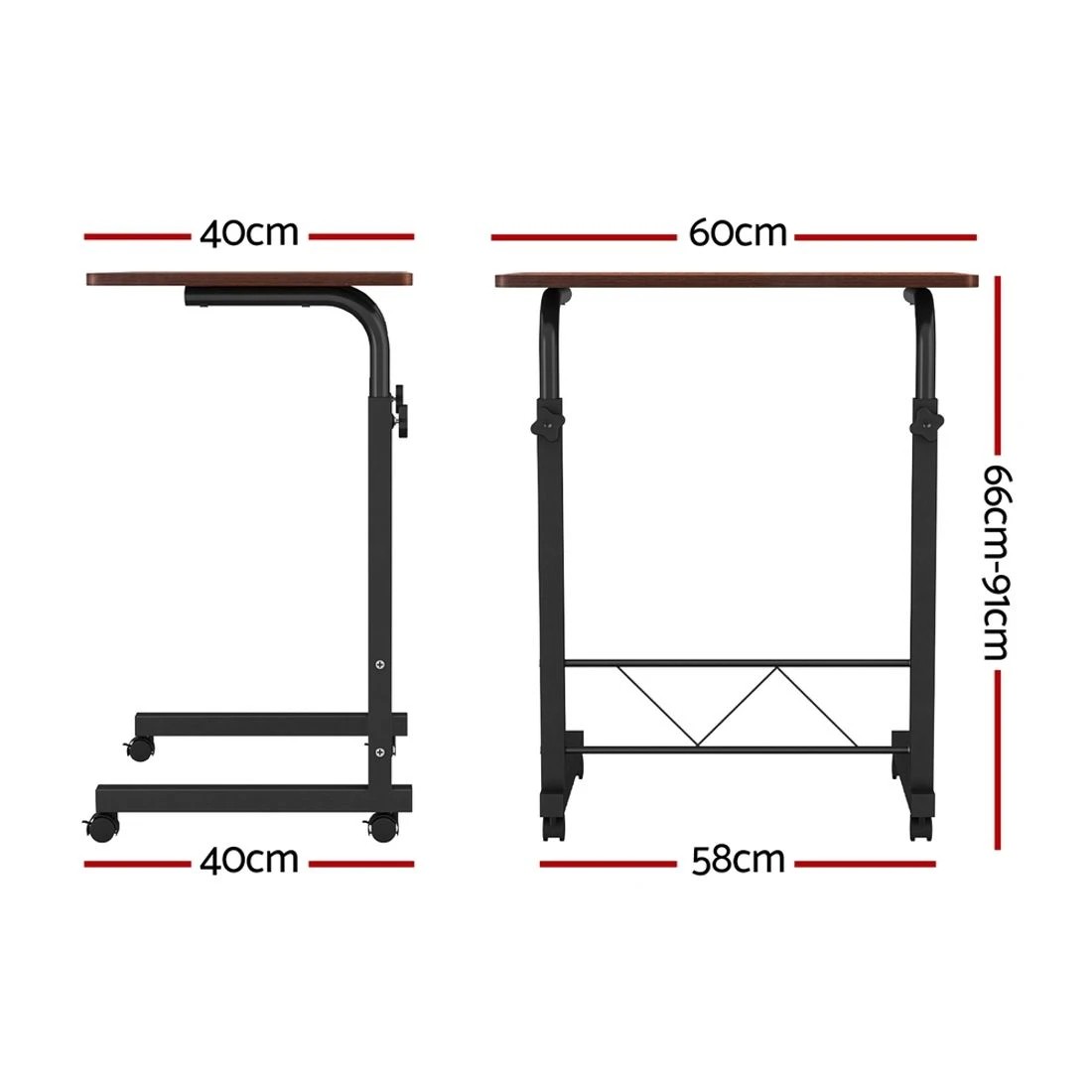 Artiss Laptop Desk Table Adjustable 60cm Height Ergonomic Home Office Compact Easy Assembly Lockable Wheels - brown