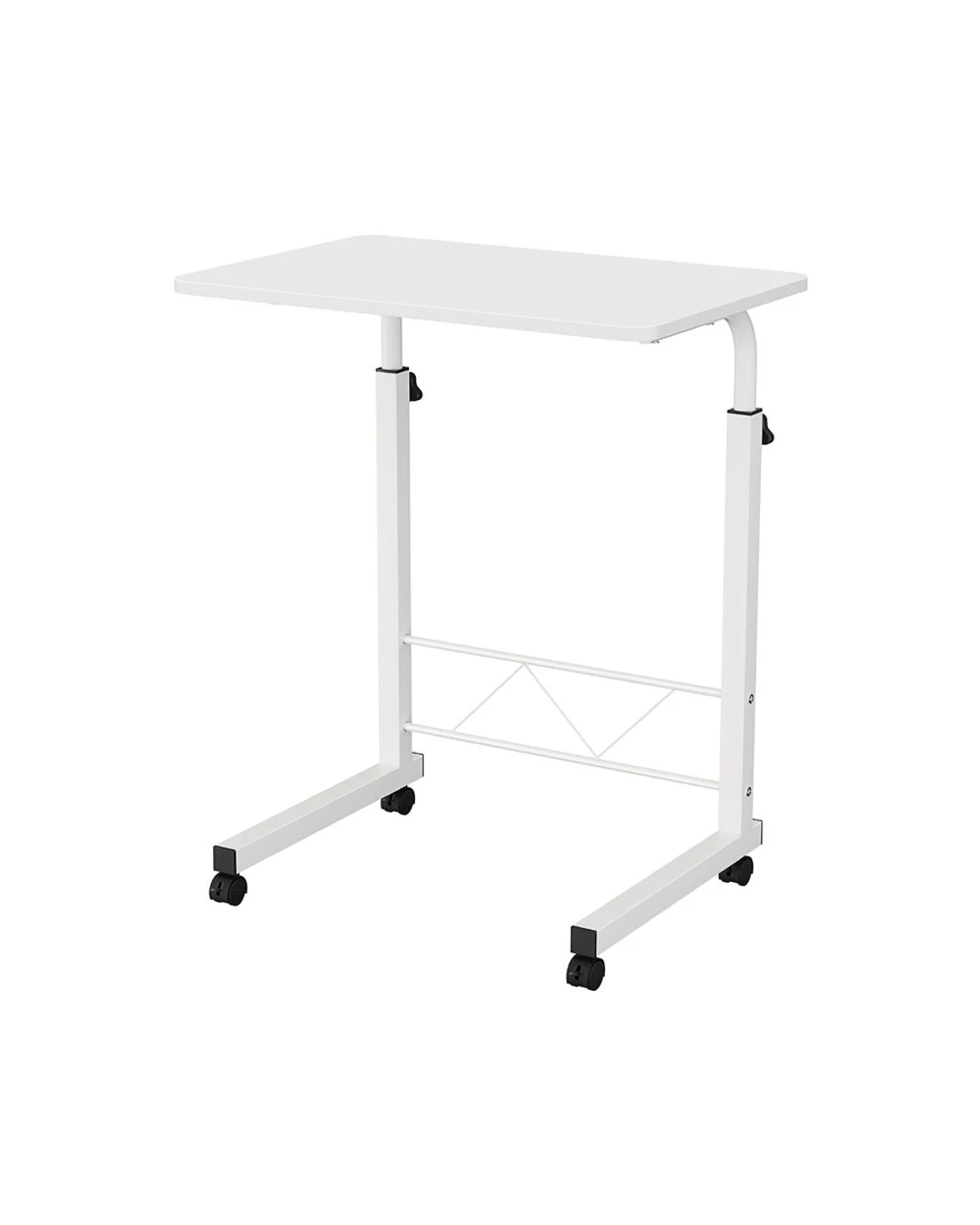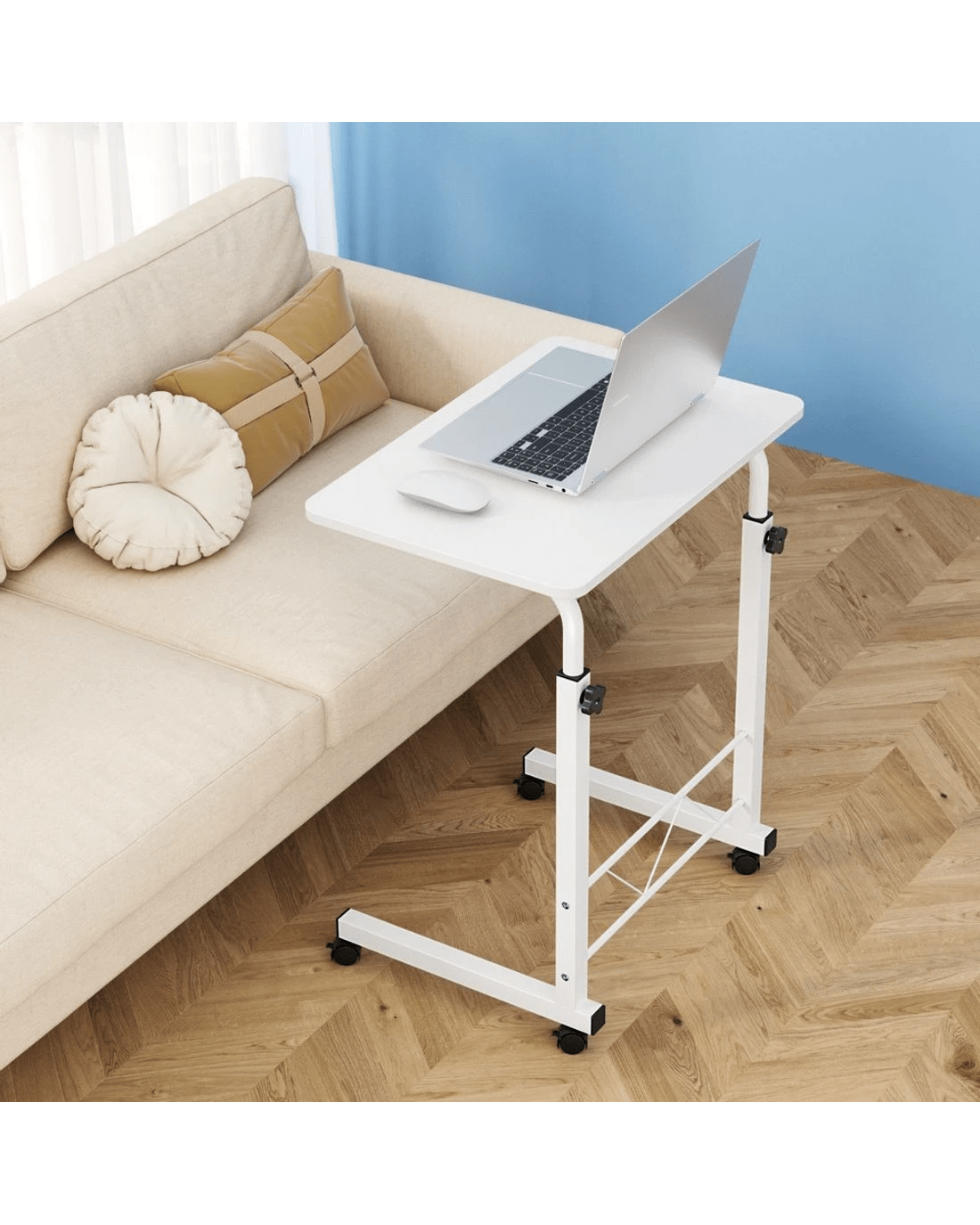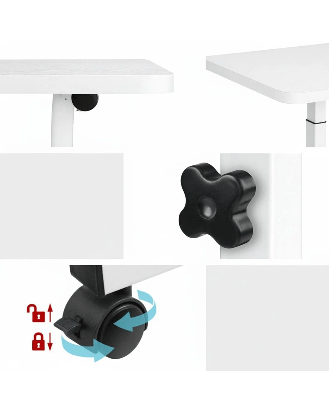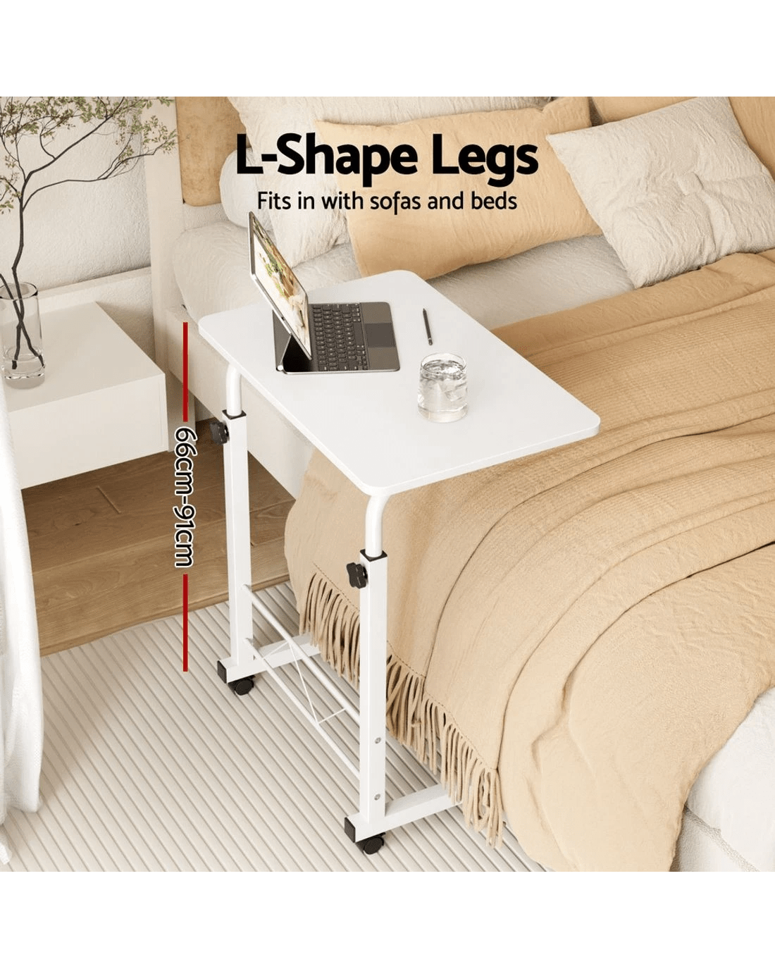 Designed to be strong and lightweight, our Mobile Laptop Desk has ample desk area to work efficiently without feeling cluttered. The height is easily adjustable to your preference and the U-shape design fits in well with most furniture such as sofas and beds to get a comfortable sitting position. The castor wheels rotate 360° and can be readily locked down in place. Or, if you like, remove the detachable wheels for a more permanent fixture. Not least, with its thick 17mm MDF board desk top and sturdy powder-coated H-shape steel frame, our Mobile Laptop Desk is absolutely versatile to function as any type of table top.