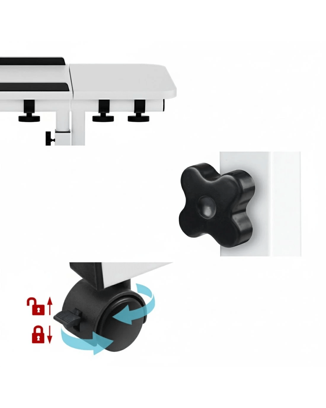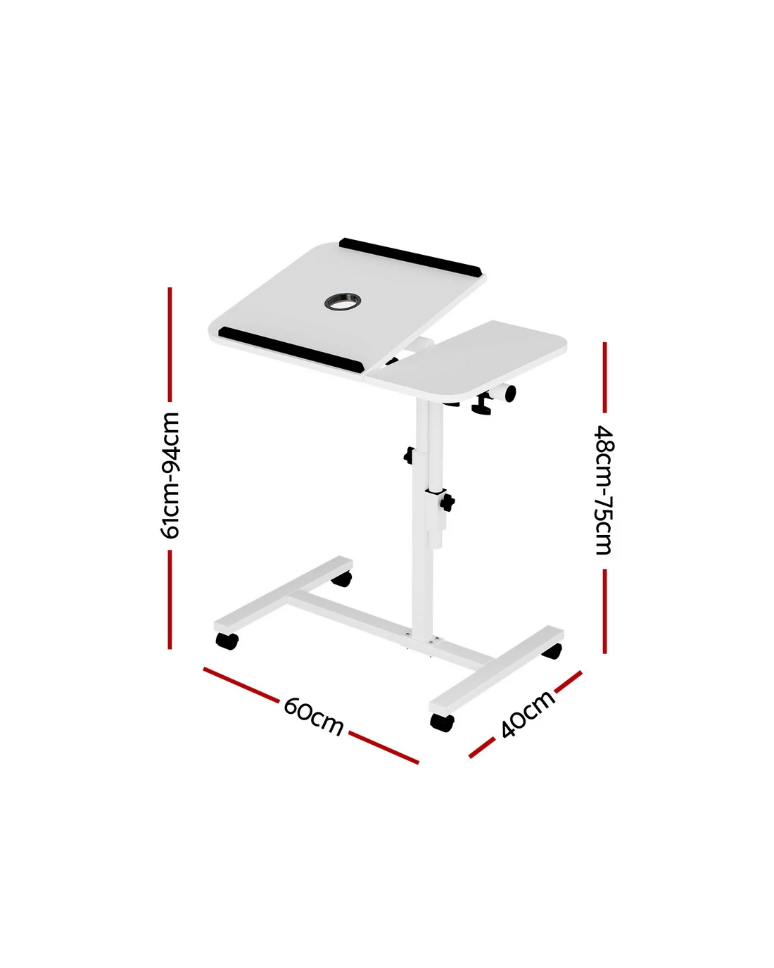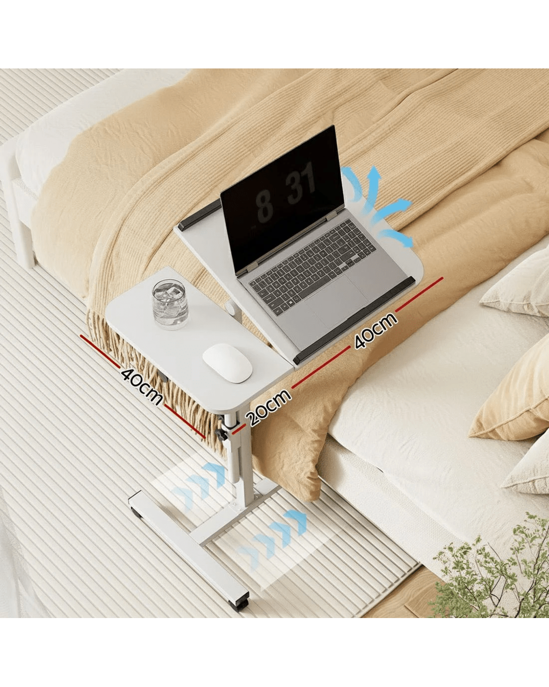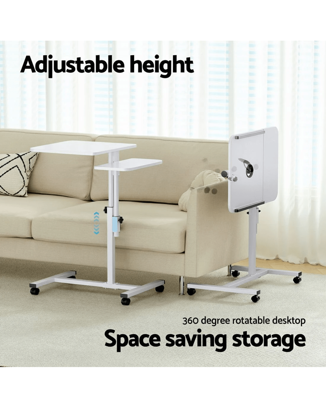 Sometimes you wish you have a ready desk at your beck and call. But moving your one desk is impractical. And that is where our Artiss Mobile Laptop Desk can help you explicitly. Designed to be strong and lightweight, our mobile laptop desk has ample desk area to work efficiently without feeling cluttered. The height is easily adjustable to your preference and the C-shape design fits in well with most furniture such as sofas and beds to get a comfortable sitting position. Better still, the desk top can now be swivelled 1800 and tilted up to 360° to suit your preferred use angle and also features an edge stopper to prevent things from falling off. The castor wheels can also be readily locked down in place. Or, if you like, remove the detachable wheels for a more permanent fixture. Not least, with its thick 15mm MDF board desk top and sturdy powder-coated steel frame, our mobile laptop desk is absolutely versatile to function as any type of table top.
