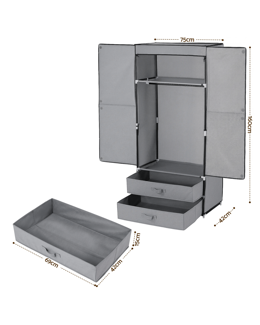 Artiss Large Portable Clothes Closet Wardrobe with Magnetic Door - Grey