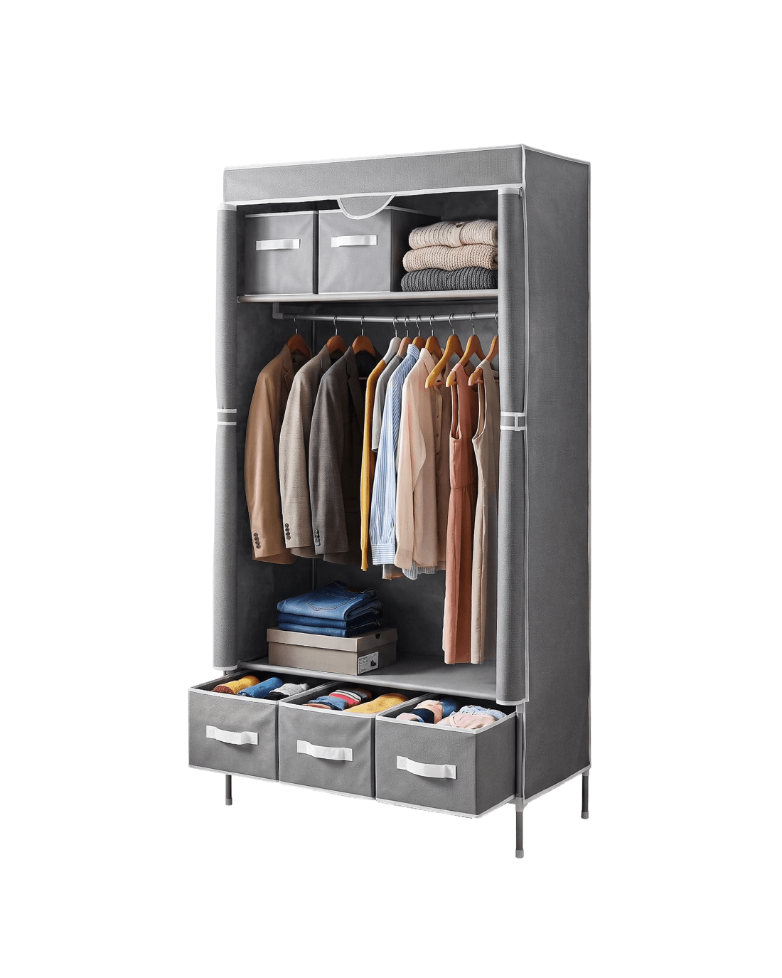 Built with a sturdy, powder-coated metal tube frame and robust plastic connectors, it provides reliable daily stability. The breathable, premium non-woven fabric cover protects your garments from dust while keeping your space looking tidy.