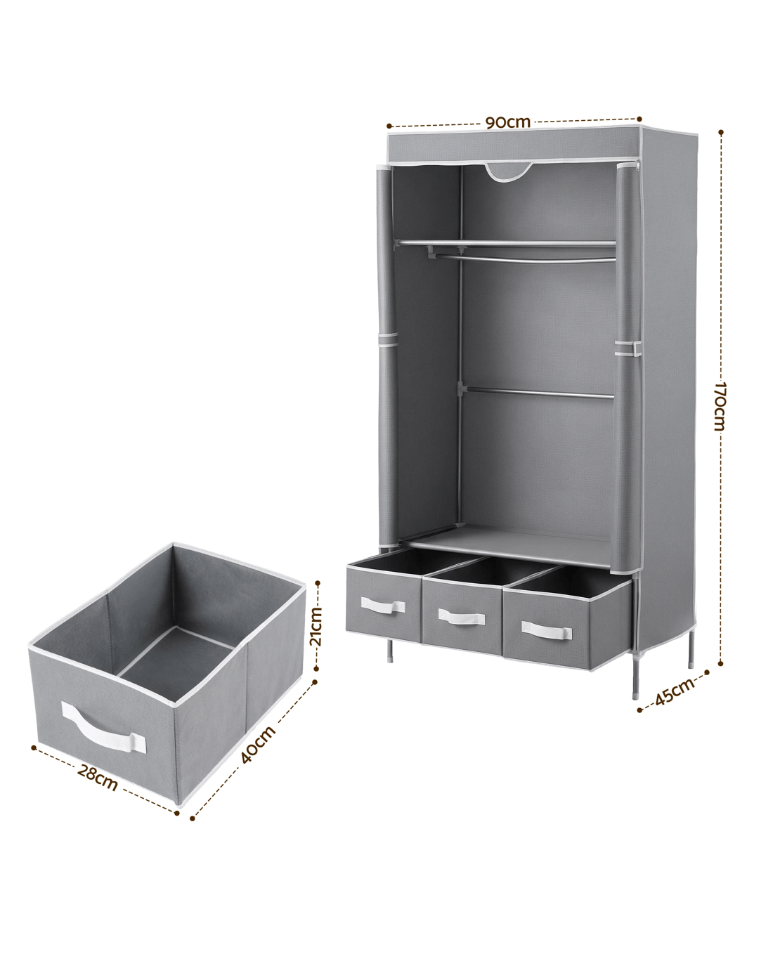 Maximise your home space with this premium grey portable wardrobe. Whether you need extra hanging space in the bedroom, a neat hallway setup, or a practical solution for the kids' room or laundry, this versatile storage organiser is the perfect fit for modern Aussie homes.