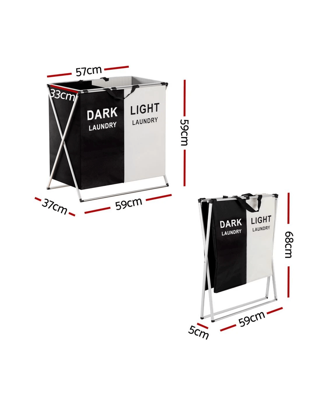 Get your laundry done effortlessly and without hassle thanks to the Artiss Sectional Laundry Basket. With 2 sections to separate dark, light and colour laundry, the basket not only has a large capacity but easily eliminates laundry mistakes – no accidental staining. The laundry hamper features a robust and stable X-shaped frame made from aluminium alloy and hard-working fabric lining for long-lasting use. The hamper is conveniently designed to fold away at a moment's notice, so you can free up precious laundry space. You can also carry it around the house with the easy-to-use handle. Save time and effort while doing laundry with an Artiss Laundry Basket.