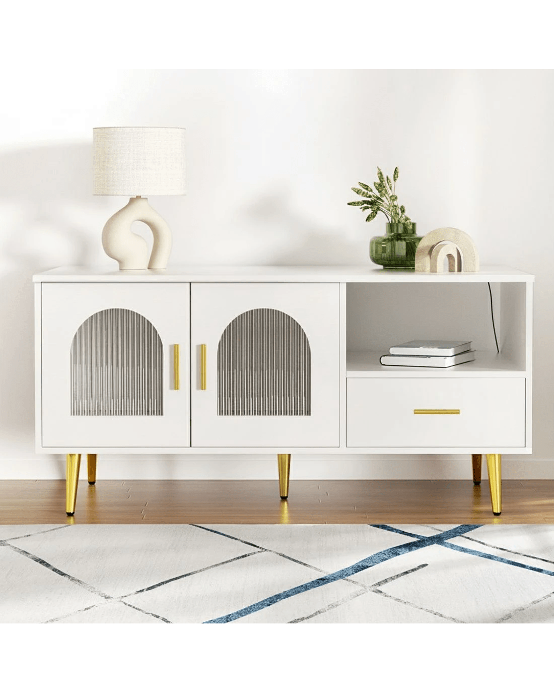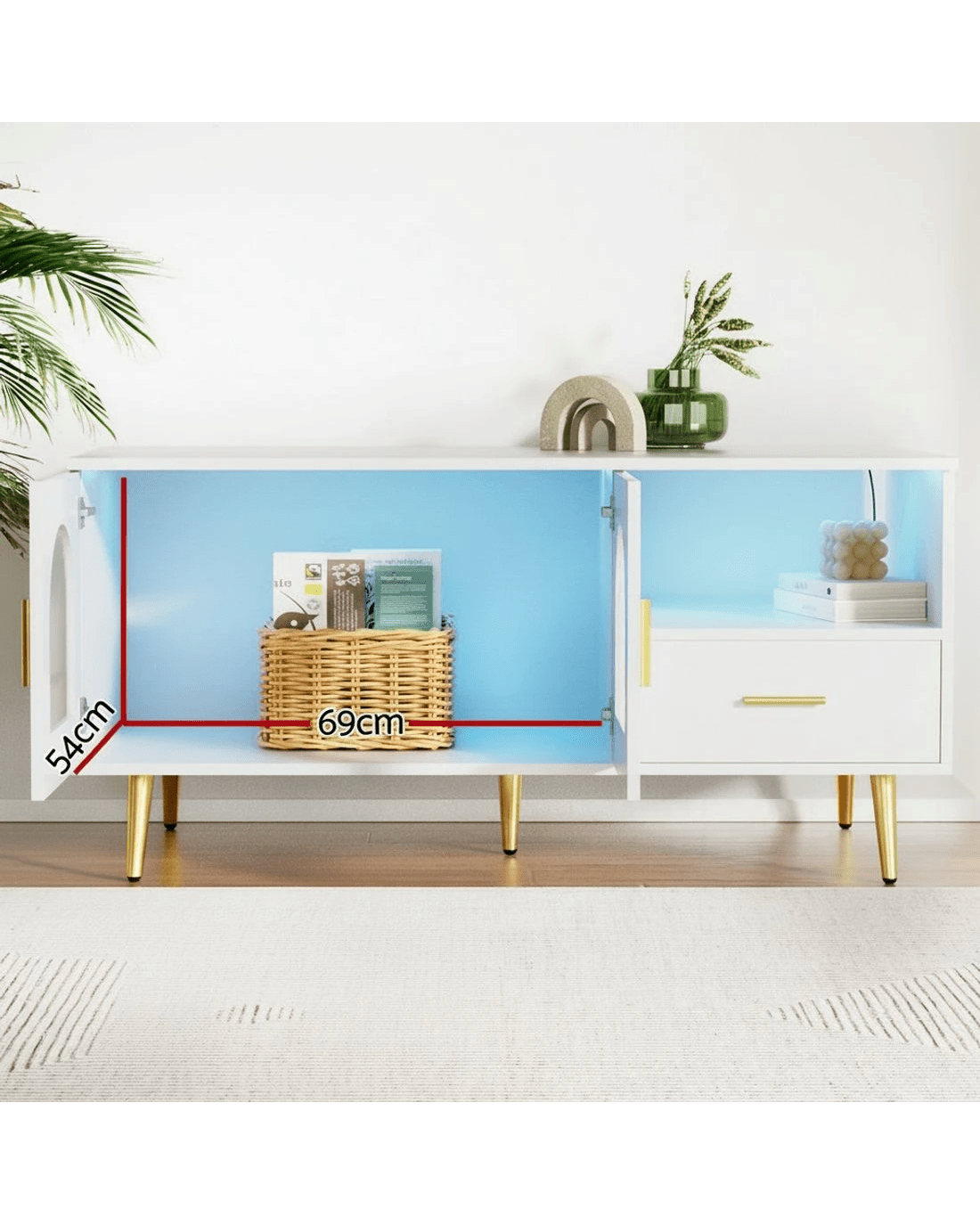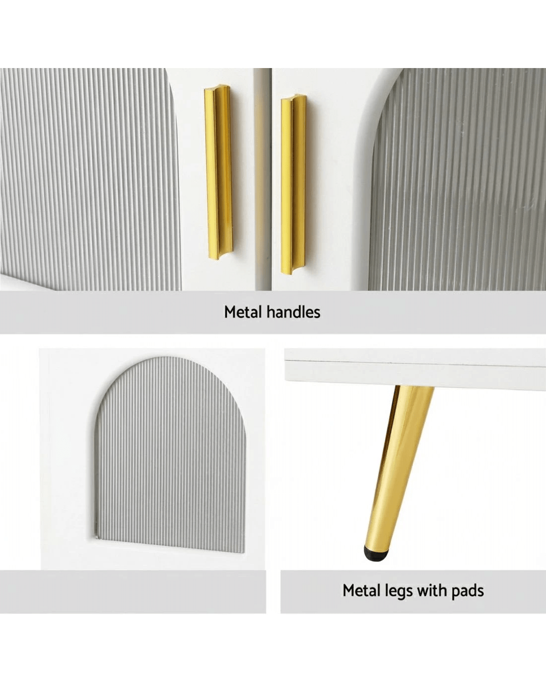 Introducing our contemporary Artiss coffee table with LED strip, USB connectivity, ample storage, sleek metal handles, melamine-coated particle board, reeded acrylic glass door, electroplated metal legs, smooth runners, easy maintenance, and assembly. Modern functionality meets stylish design.