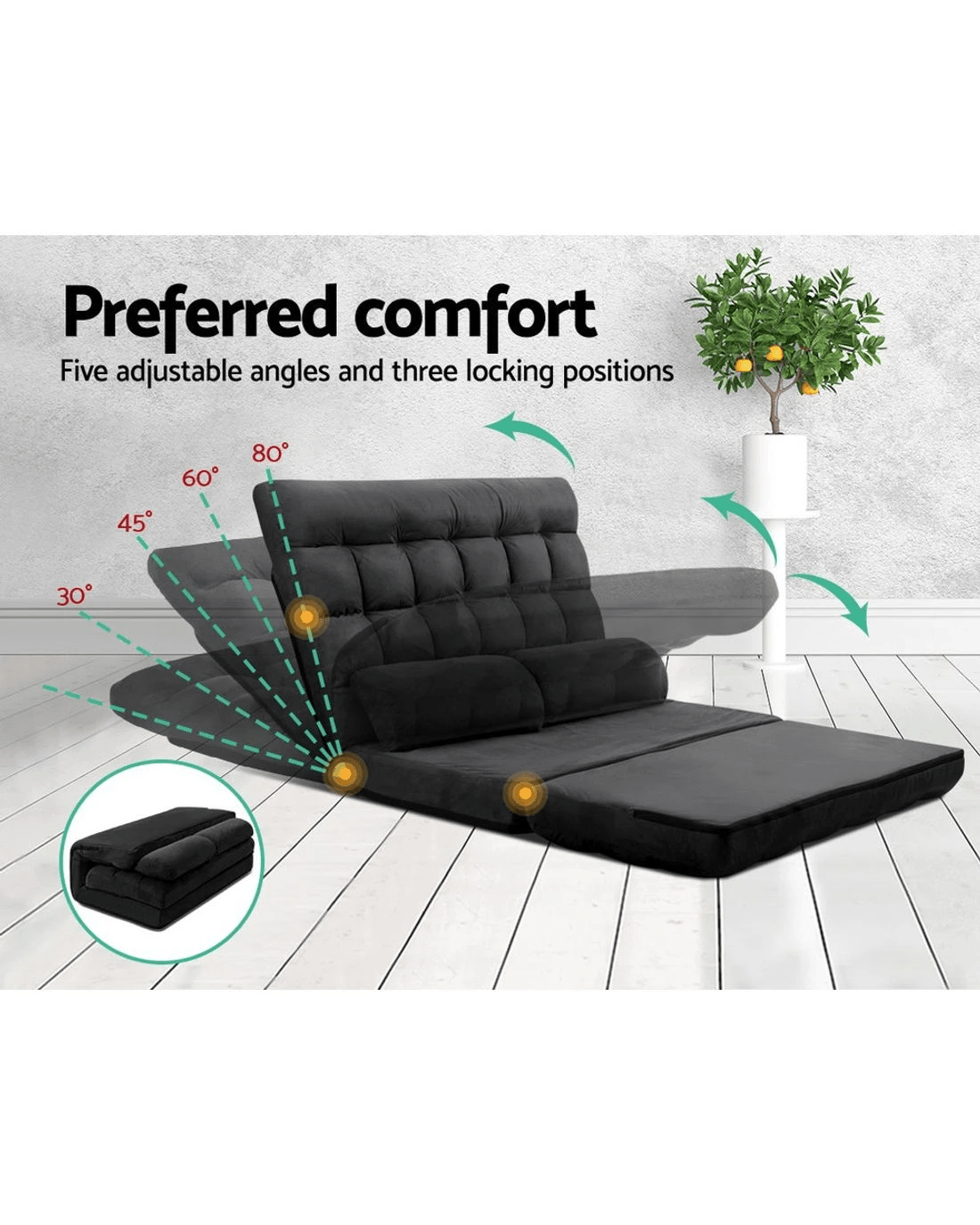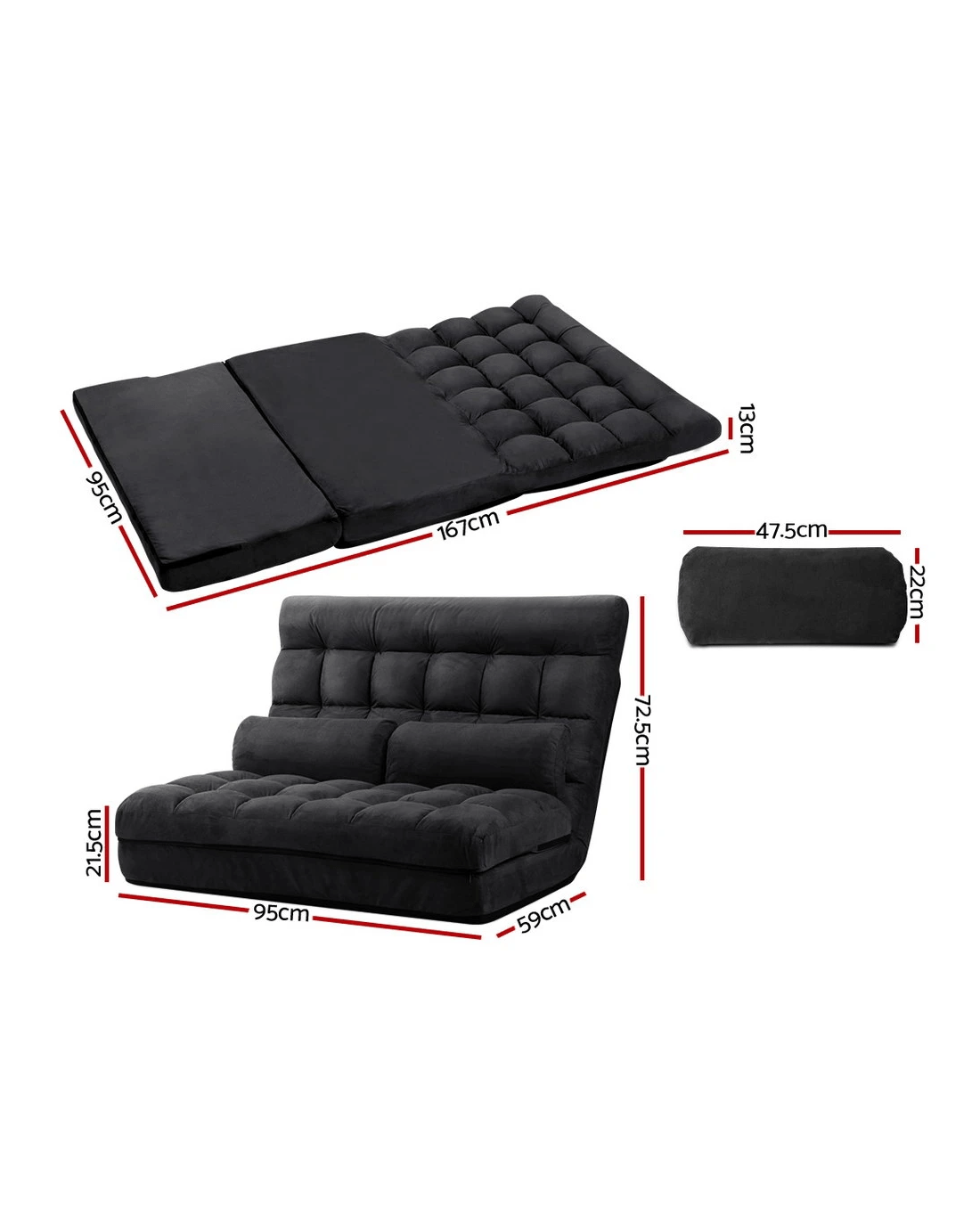 Get comfortable with the Artiss Lounge Sofa Bed for all your leisure activities. With five locking positions and three adjustable angles, the lounge sofa bed lets you sit and rest in your preferred position with absolute ease. Read a book watch TV and just chilling out, the lounge sofa bed is your definite go-to every time as a sofa, laid-back lounge or mattress. Made of heavy-duty steel and upholstered in a skin-soft linen/suede fabric, the lounge sofa bed is generously padded with a high resilience foam that is durable and lasting. Not least, the lounge sofa bed can be separated into four pieces for easy storage. The zipped covers are also removal for hassle-free cleaning.