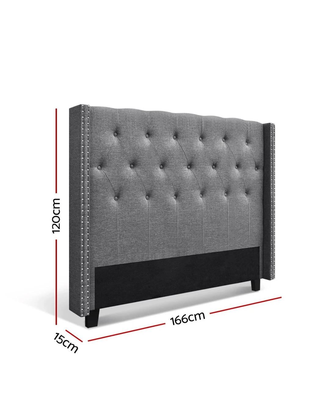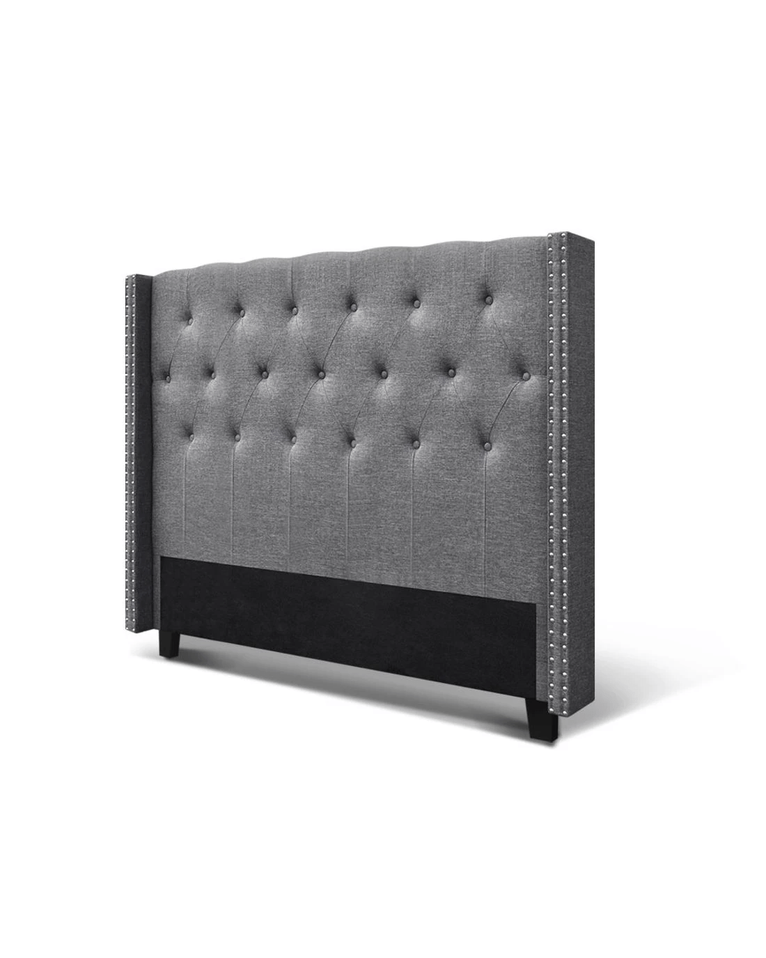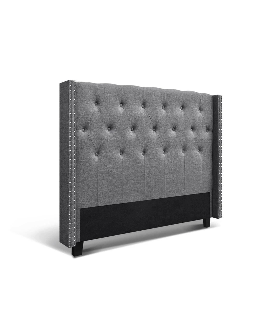 Sold by Aisle SixArtiss Luca Wingback Queen Bed Headboard Tufted Linen Fabric Padded Studded Design Modern Bedroom Comfort Accent - grey