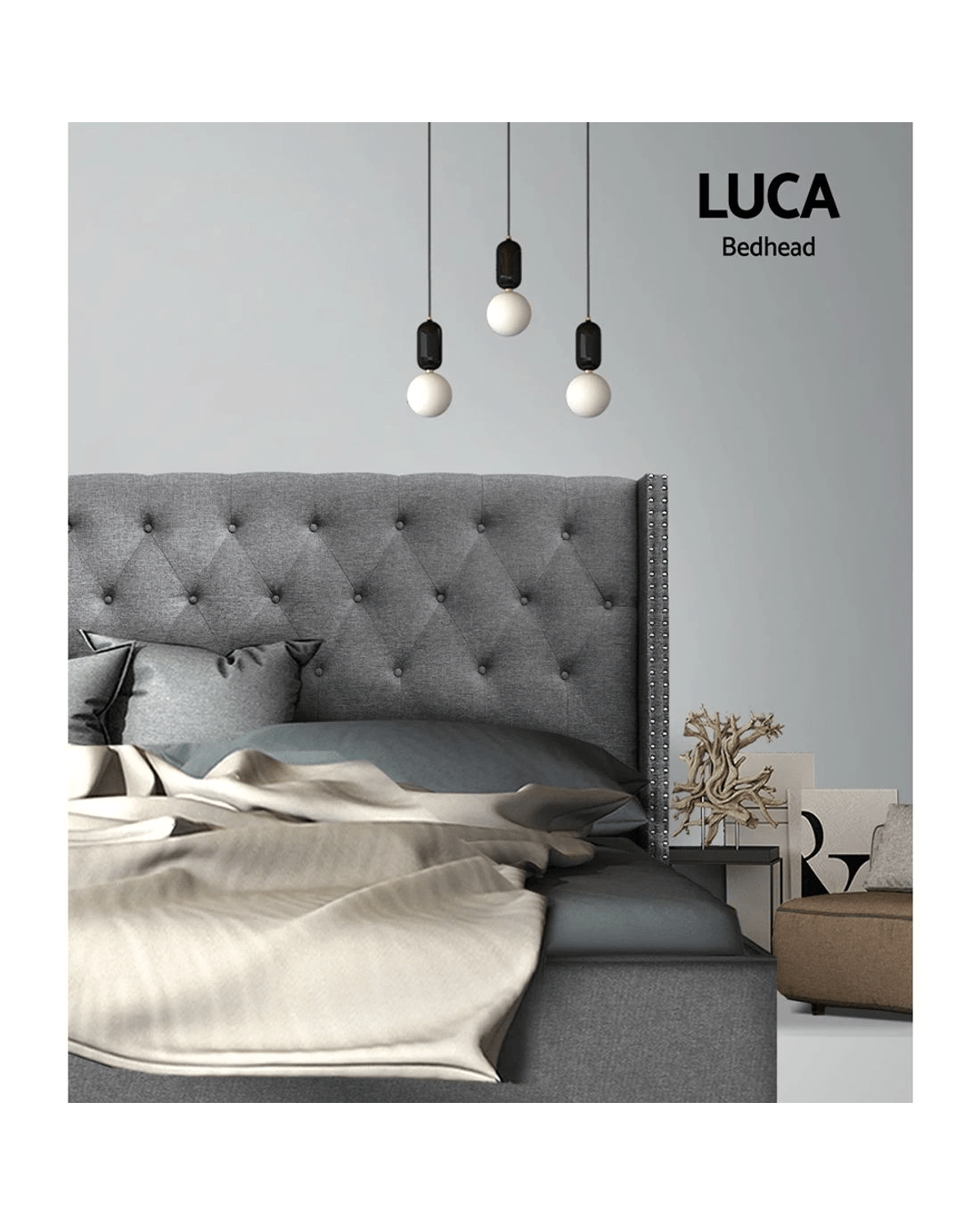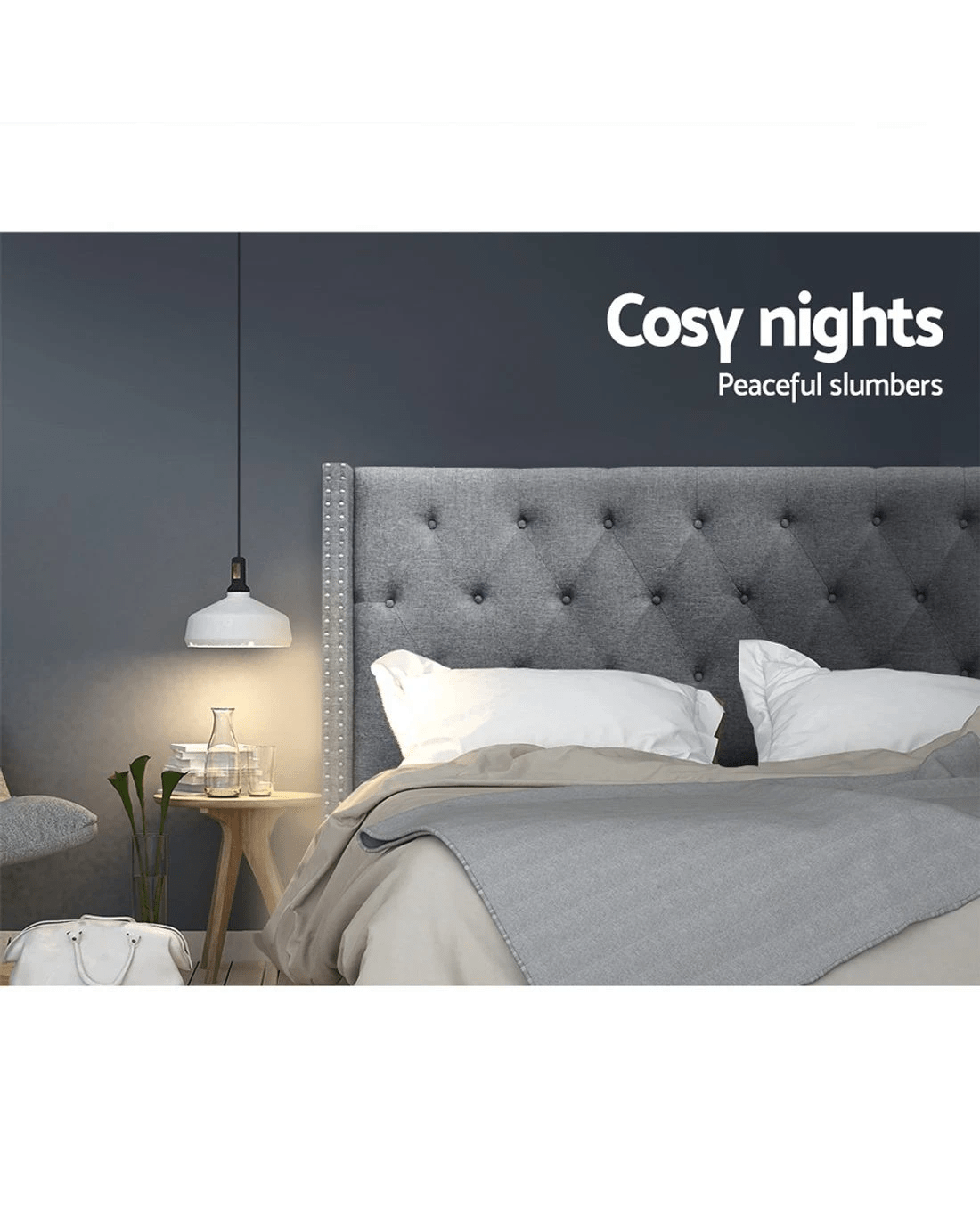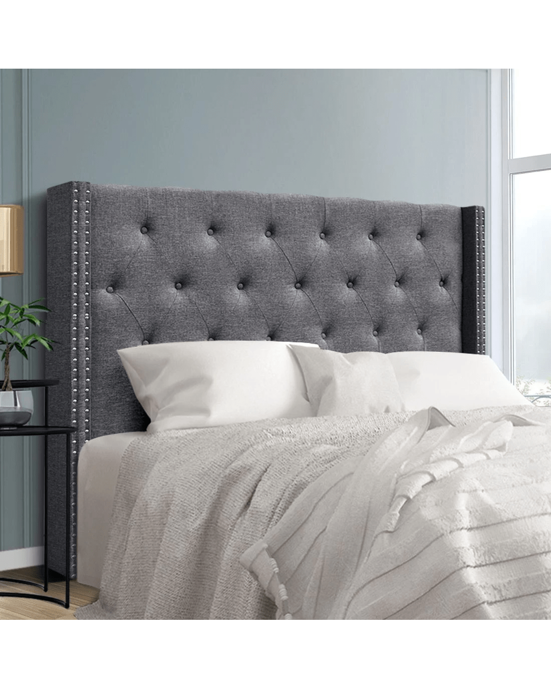 Sold by Aisle SixArtiss Luca Wingback Queen Bed Headboard Tufted Linen Fabric Padded Studded Design Modern Bedroom Comfort Accent - grey