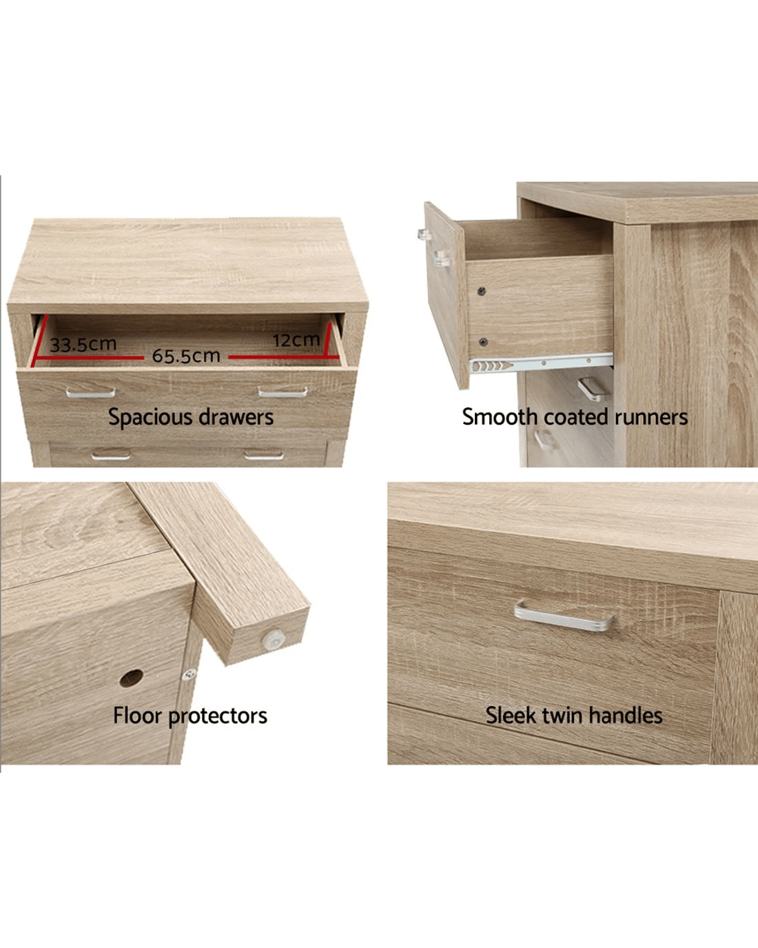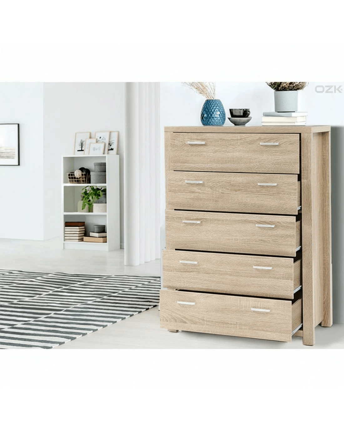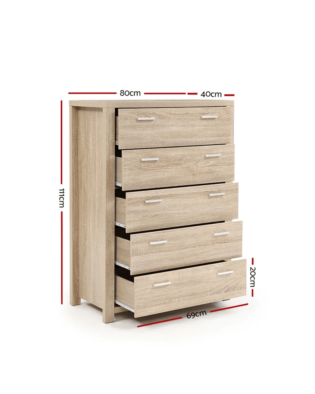 Artiss MAXI 5 Drawer Tallboy Chest Natural Woodgrain Metal Runners Spacious Bedroom Storage Organizer Anti Tip - brown