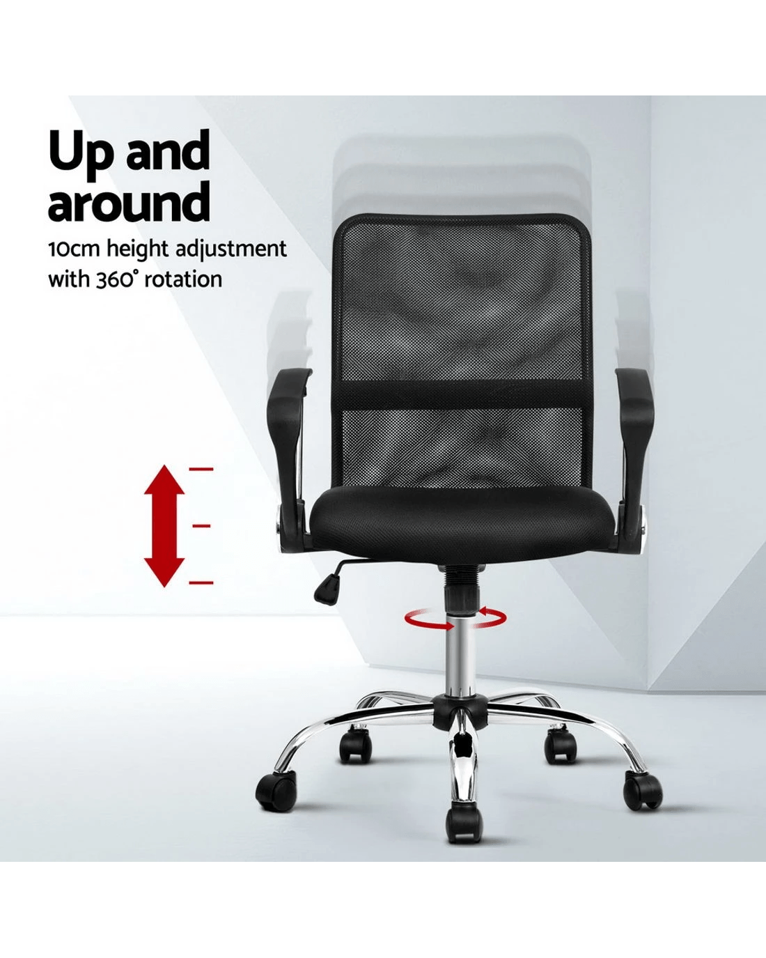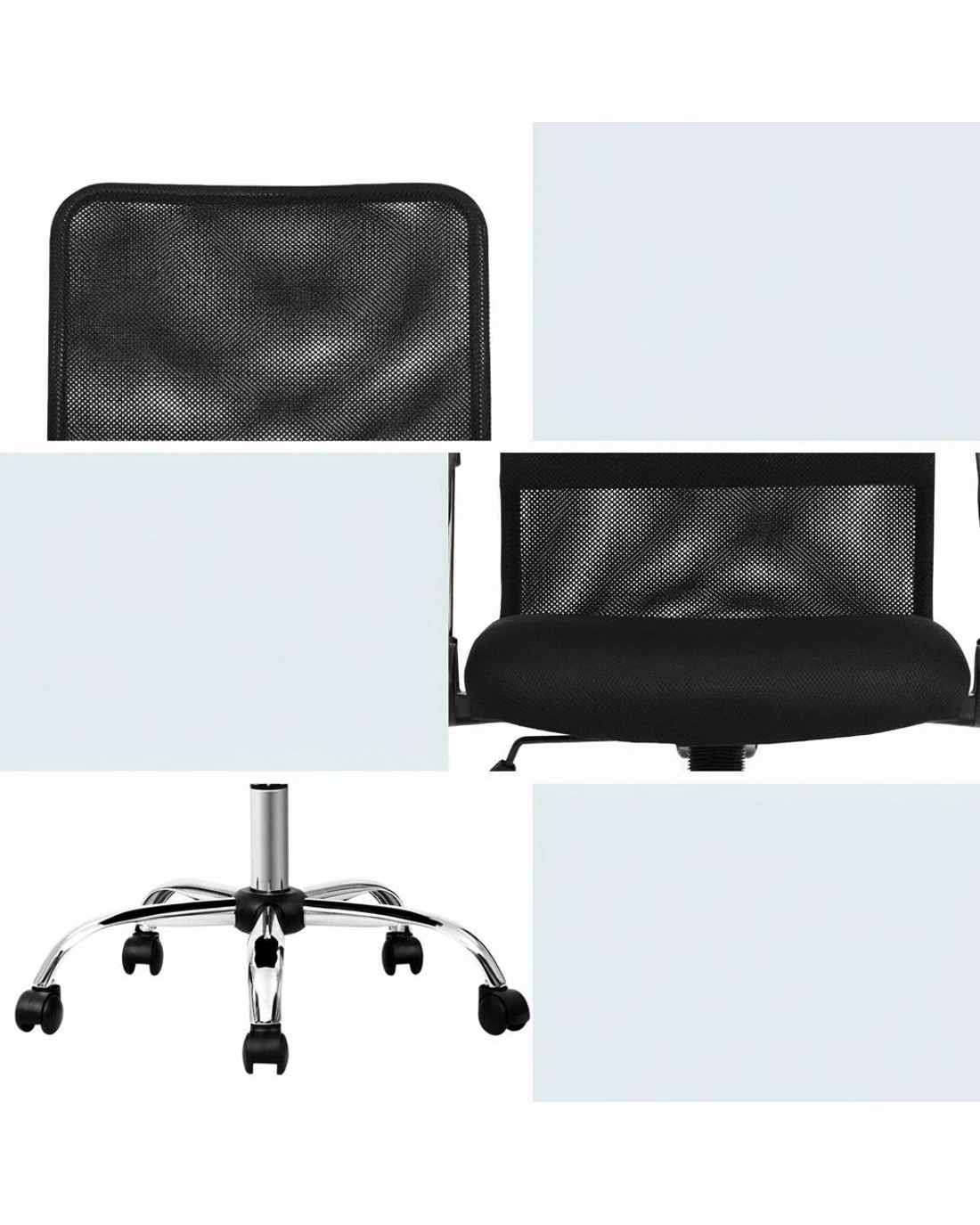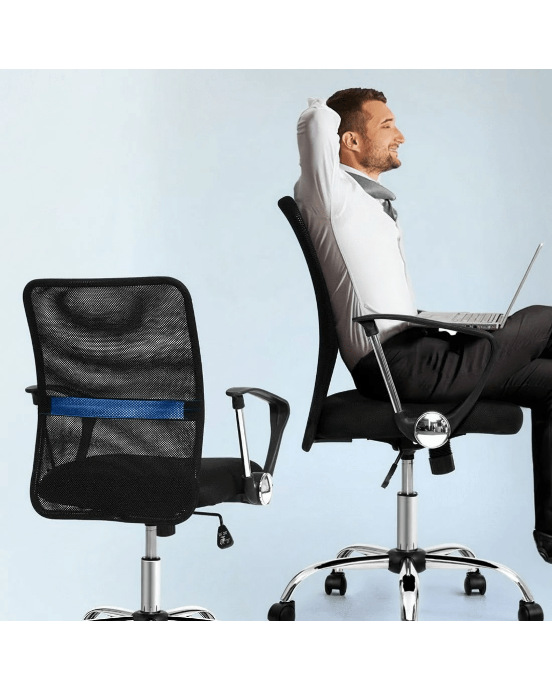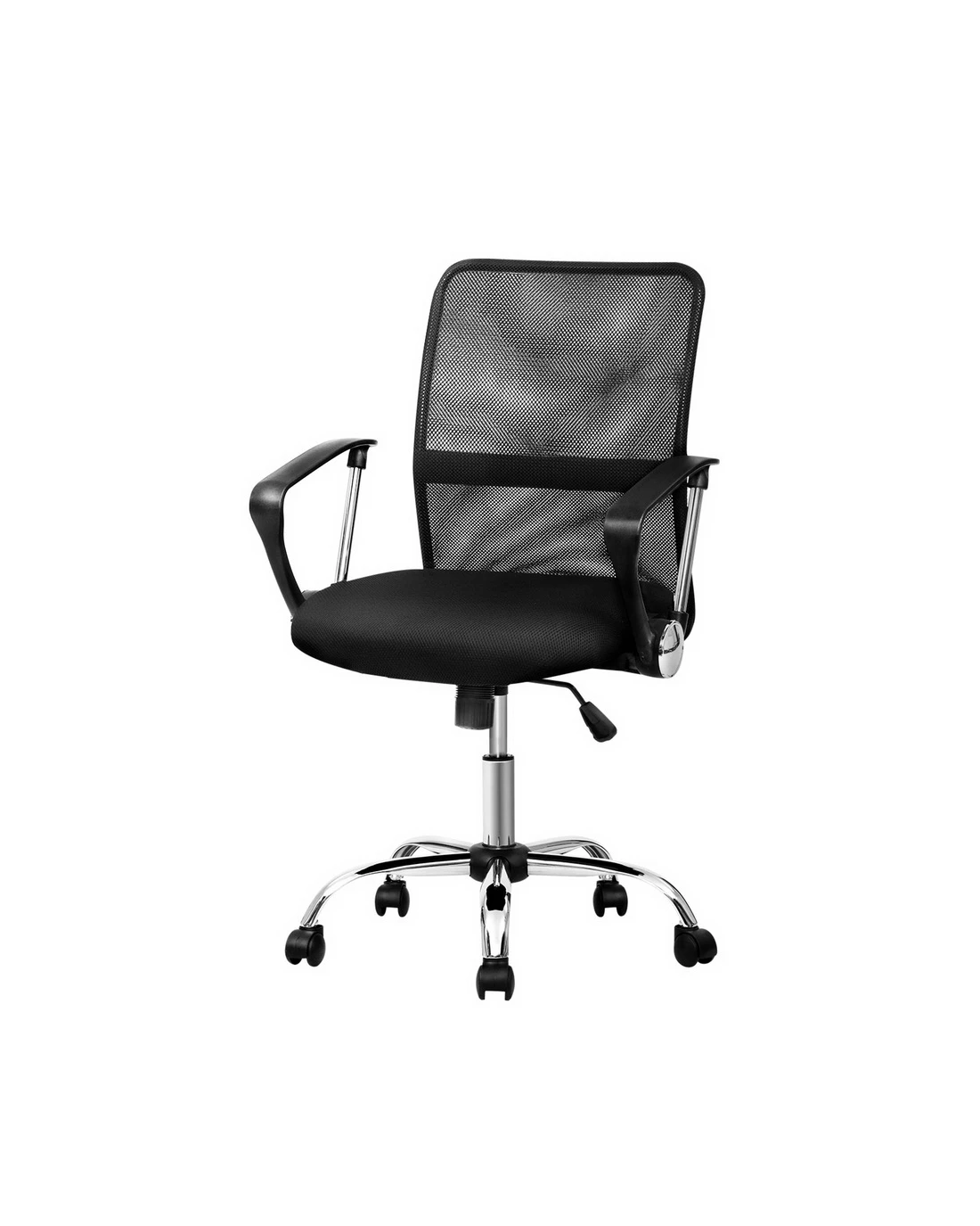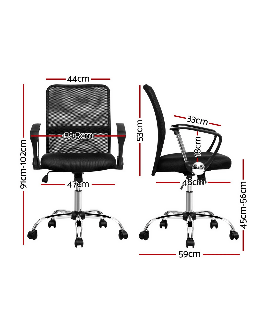 Tired of slouching over a desk, or sticking to hard plastic? Your back will thank you for purchasing our Artiss Mesh Office Chair. This eclectic chair is made of a combination of mesh and foam design for a unique, stylish presence that suits any office. The highly breathable mid-height backrest allows for good ventilation as well as appreciable lumbar support, while the high-density foam padded seat and headrest keep you comfortable over long periods. The omni-directional chair comes with all the necessary tilt and height adjustments and a gleaming chrome base with smooth castor wheels for easy shifting. With all that comfort, you'll never want to leave your desk. Work smarter with our Artiss Mesh Office Chair.