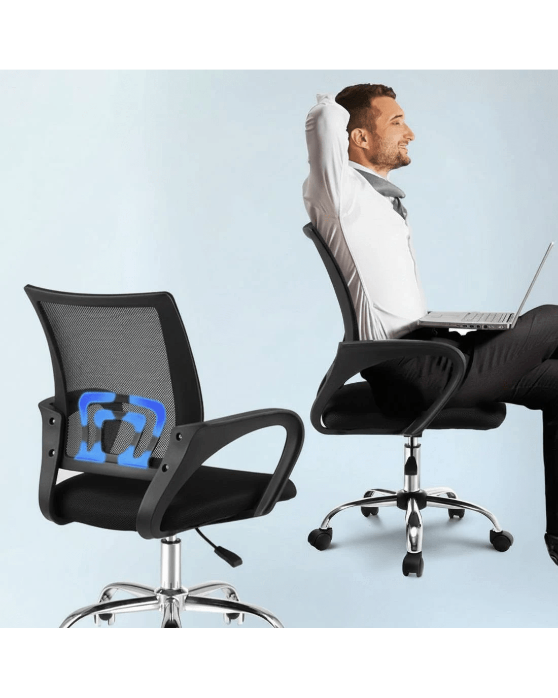 When you're working hard and playing hard, the last thing you need is a hard chair. Our Artiss Cody Office Chair takes work and relaxation seriously, giving you a premium chair that does more than just give you a comfortable seat. The highly breathable mesh means that you are never hot and bothered during long seating sessions as the chair is always well ventilated. Not only that, but its built-in lumbar support conforms to your back to help fix your posture and ease back pain. The thick padded seat ensures that you are always seated comfortably. You can easily set the chair height with the gas lift to suit your favourite position – no more slouching over the desktop. The chair can also be rotated 360° to face any direction, while the sturdy chrome base features omni-directional wheels for smooth movement. Whatever the occasion – work, gaming, or relaxation – the Cody Office Chair will be there to support you.