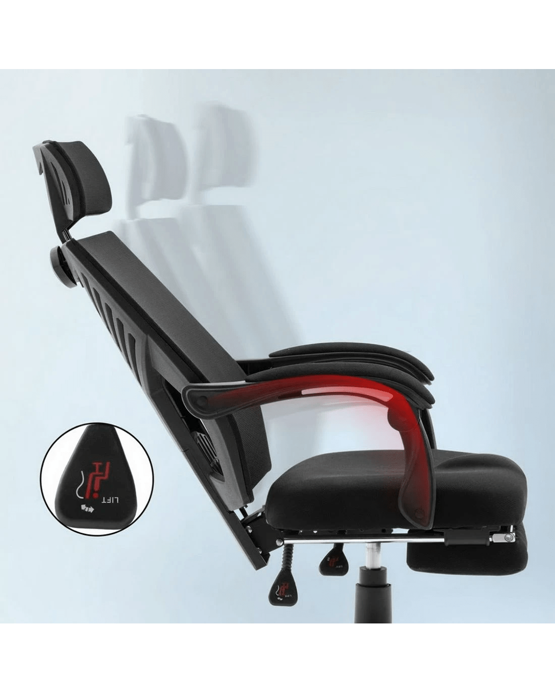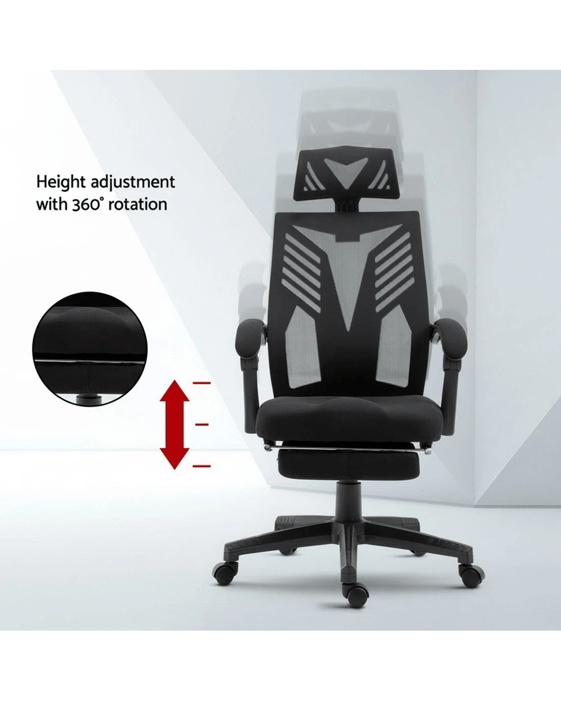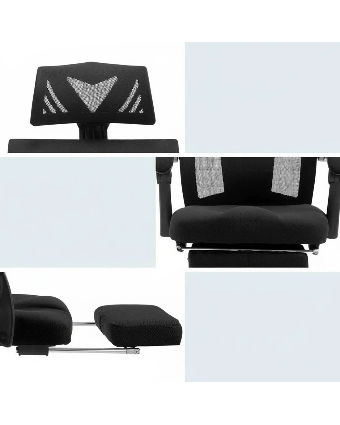 Our Artiss Matrix Office Chair takes work and relaxation seriously. Fact is, the chair integrates both perfectly to give you a premium chair that does more than just luxurious seating. It is durably constructed with a Y-shaped back frame for sturdiness. The highly breathable mesh means that you are never hot and bothered with long sitting hours as the chair is always well-ventilated. The S-shaped lumber support keeps your back comfortable while the headrest can be adjusted to suit your head. Better still, the chair can be reclined to 150° to suit work, leisure, relaxation and every purpose in between. Together with its retractable footrest and flexible armrests that adjust with back recline, the chair is simply a good seat to keep your feet up for a well-deserved break. Not least, firm base features mute castors that not only prevent floor scratches but also allows quiet and smooth mobility together with the omni-directional seating.