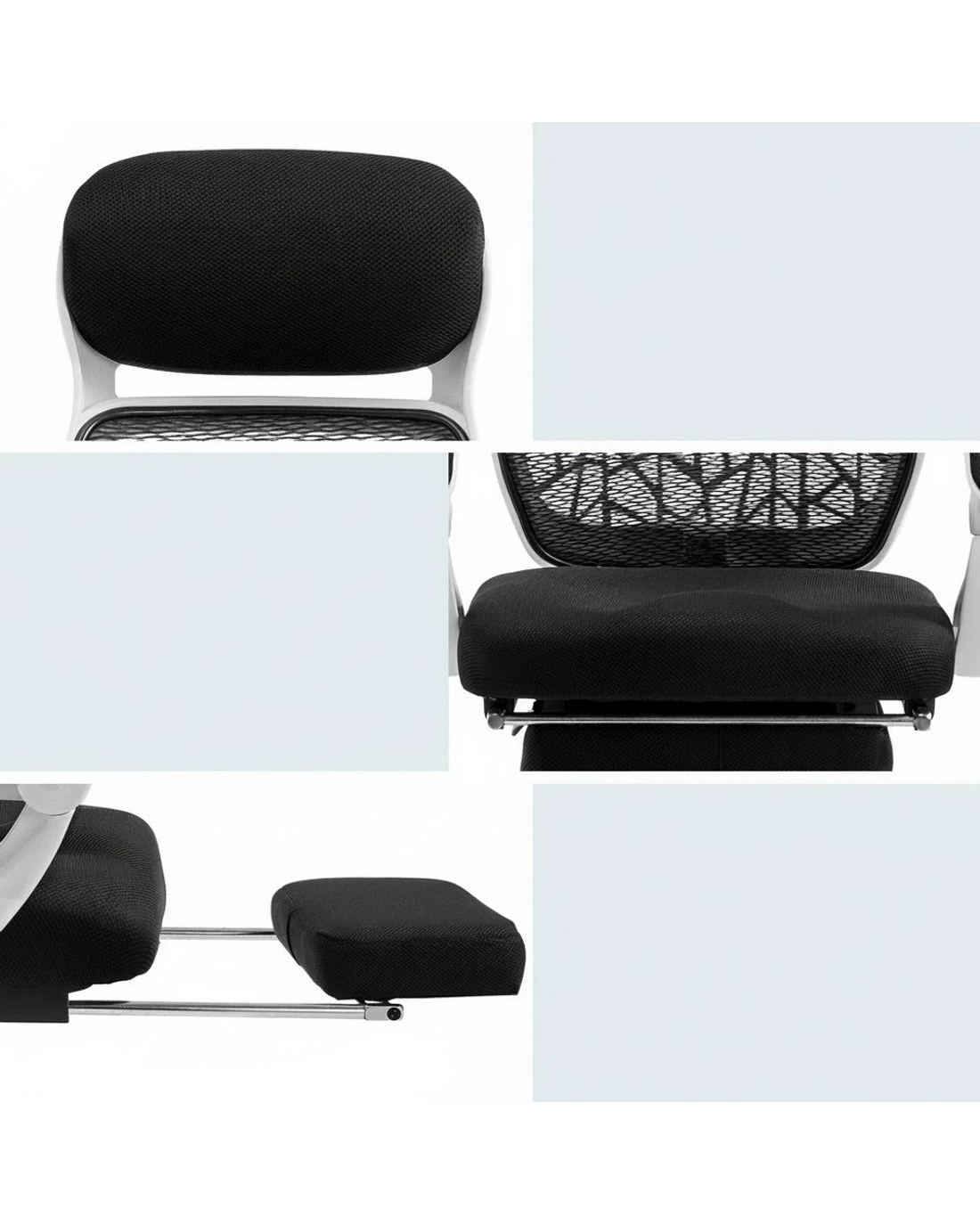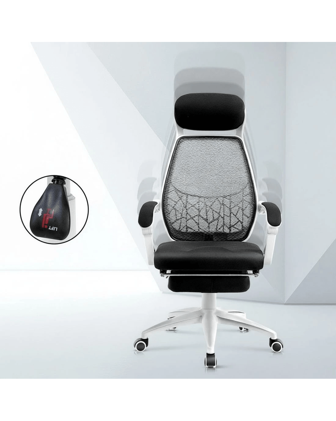 Our Artiss Mosaic Office Chair takes work and relaxation seriously. Fact is, the chair integrates both perfectly to give you a premium chair that does more than just luxurious seating. There is built-in storage at the back to always keep your magazines, books, memos and other personal items handy. The highly breathable mesh means that you are never hot and bothered with long sitting hours as the chair is always well-ventilated. The S-shaped lumbar support keeps your back comfortable while the headrest is softly padded. Better still, the chair can be reclined to 150° to suit work, leisure, relaxation and every purpose in between. Together with its retractable footrest and flexible armrests that adjust with the reclining back, the chair is simply a good seat to keep your feet up for a well-deserved break. Not least, firm base features mute castors that not only prevent floor scratches but also allows quiet and smooth mobility together with the omni-directional seating.