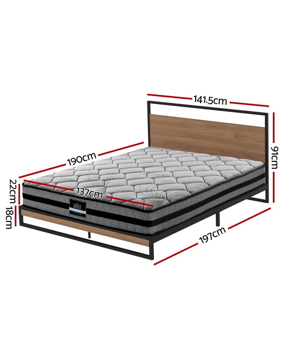 Artiss Metal Bed Frame Double Size Beds Platform with Mattress - Multi