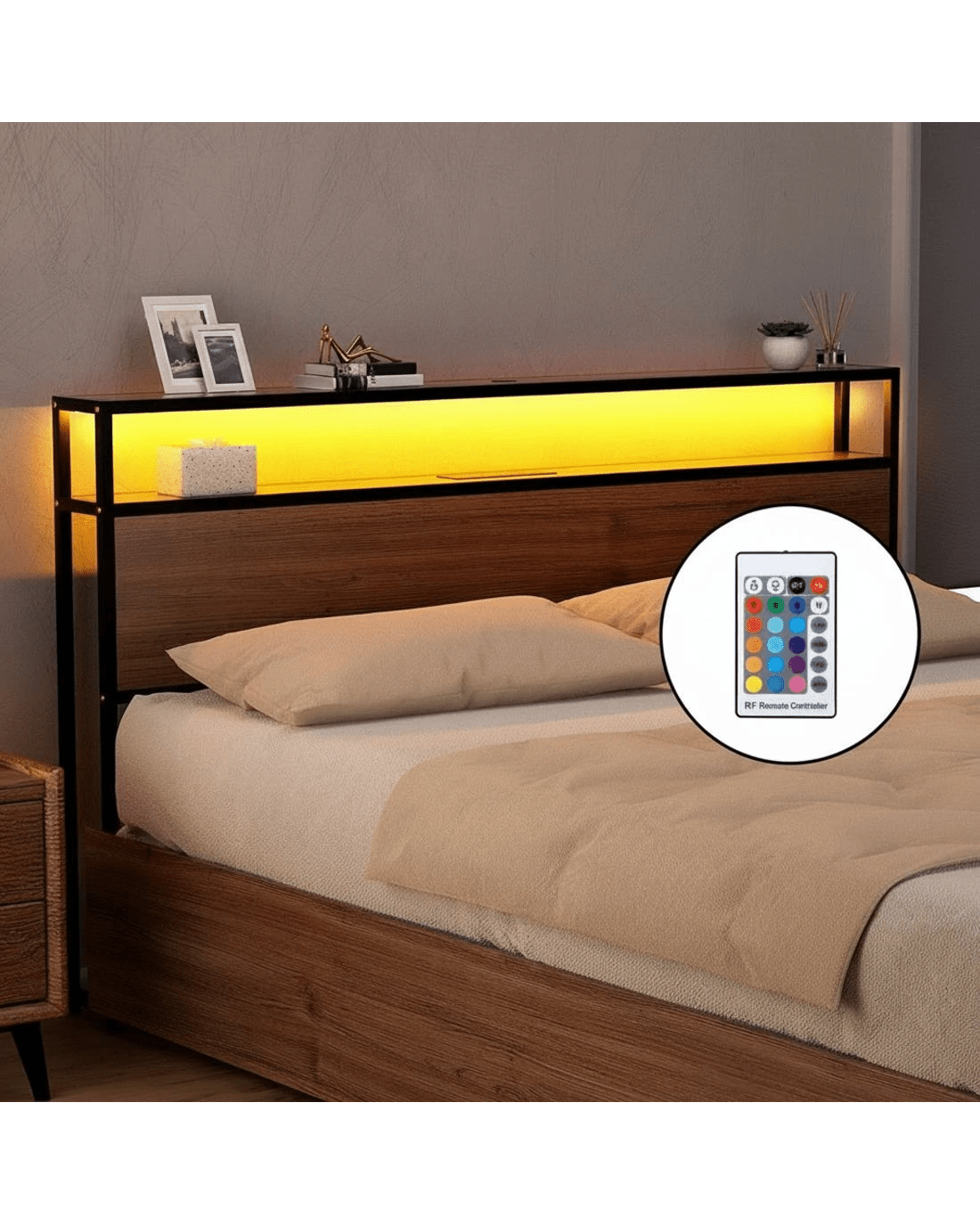 16 colour options for movie nights or relaxing baths. The steel-reinforced slats prevent mattress sagging, while 4 storage drawers keep linen organized.