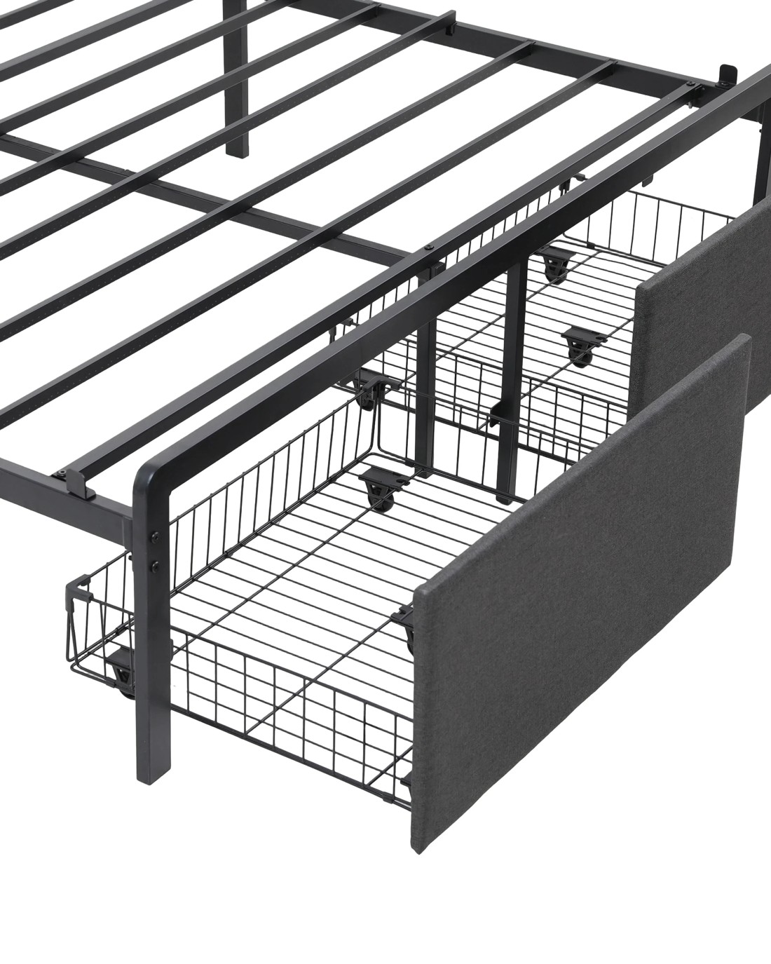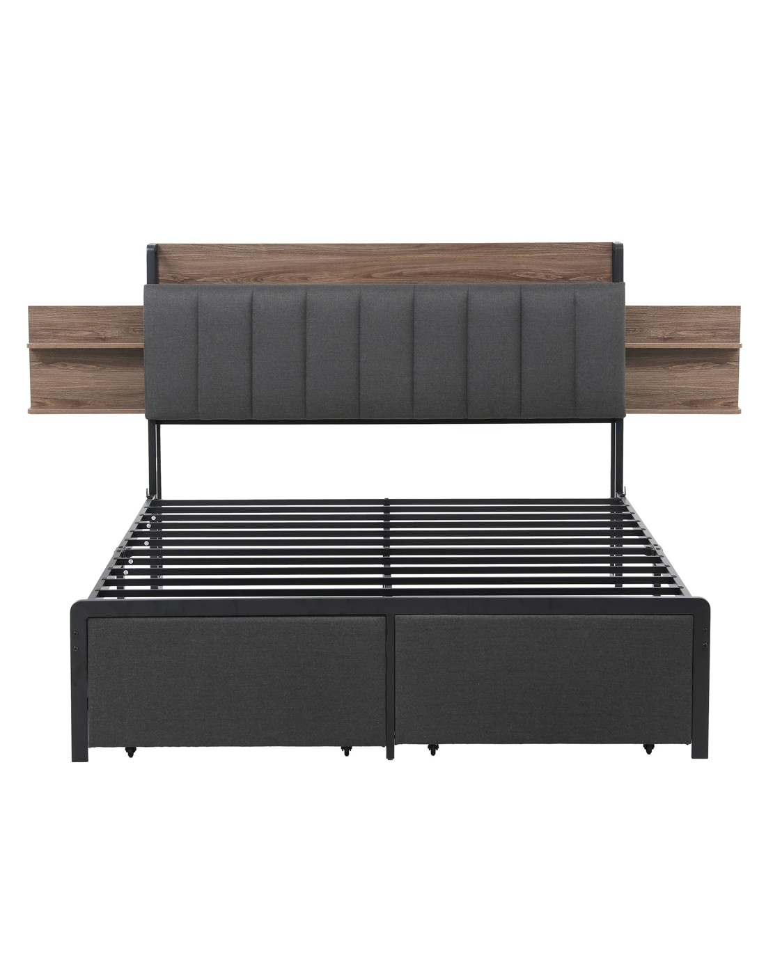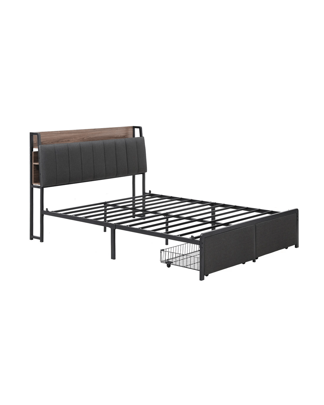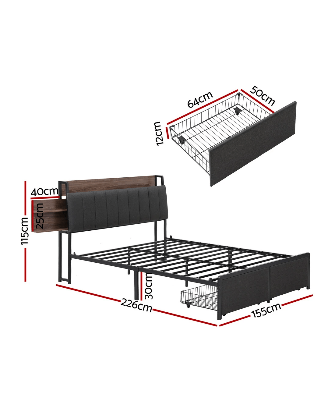 Artiss Metal Bed Frame Queen Size with 2-Tier Hidden Storage with Charging Station - Grey