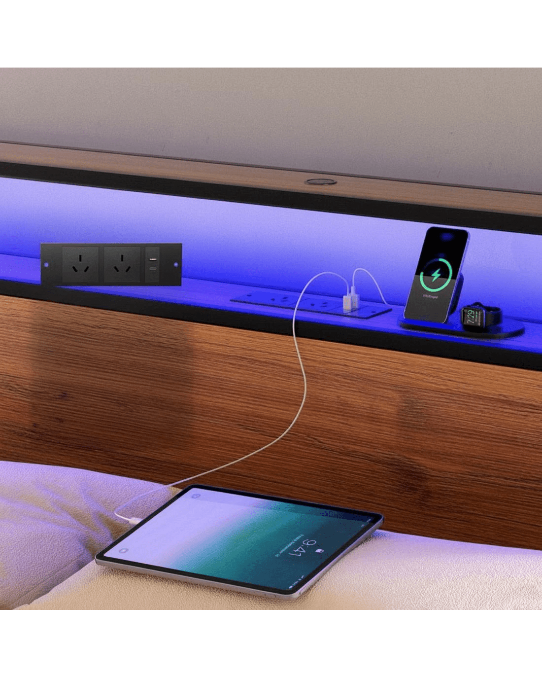 Charge phones, laptops simultaneously via the bedside power station.