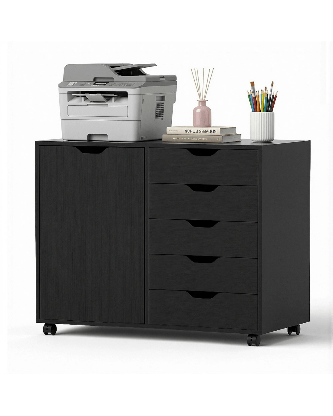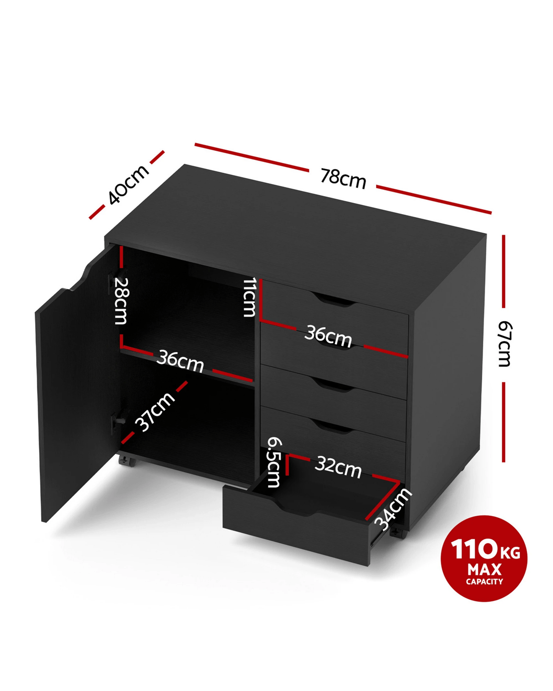 Artiss Mobile Filing Cabinet 5 Drawer with Door Modern Storage Cabinet Printer - Black