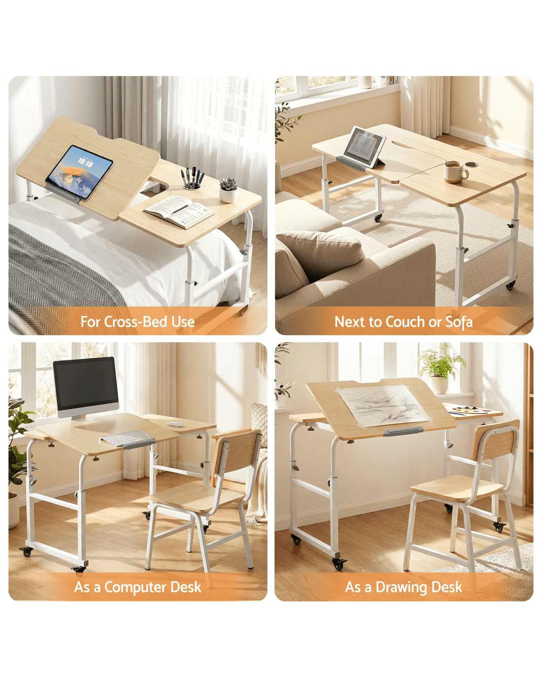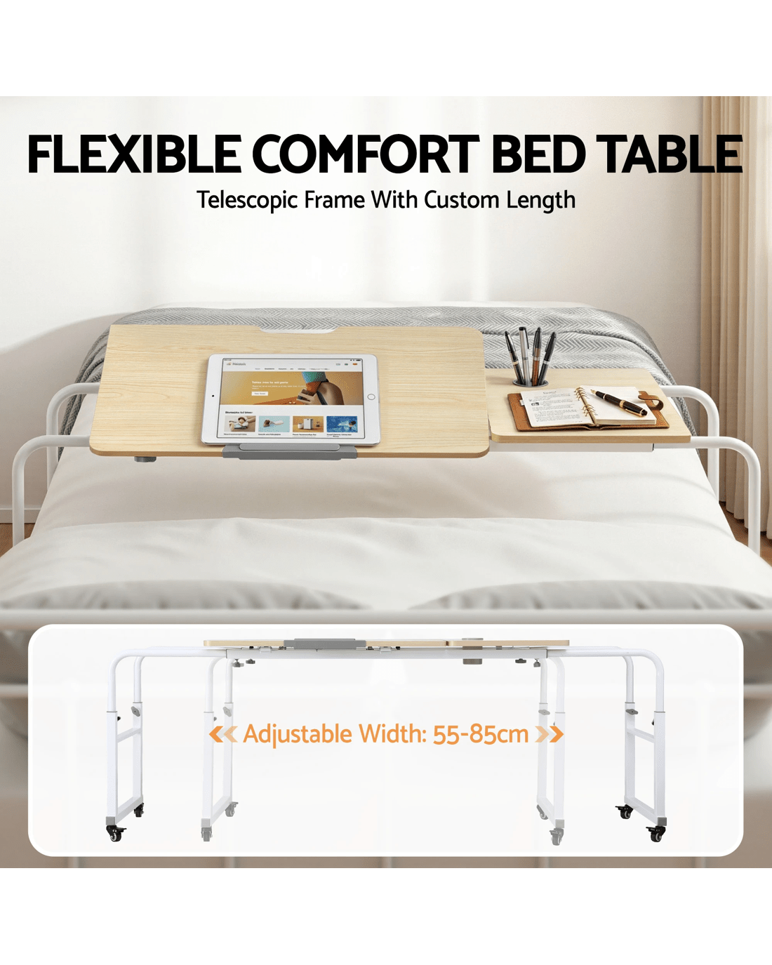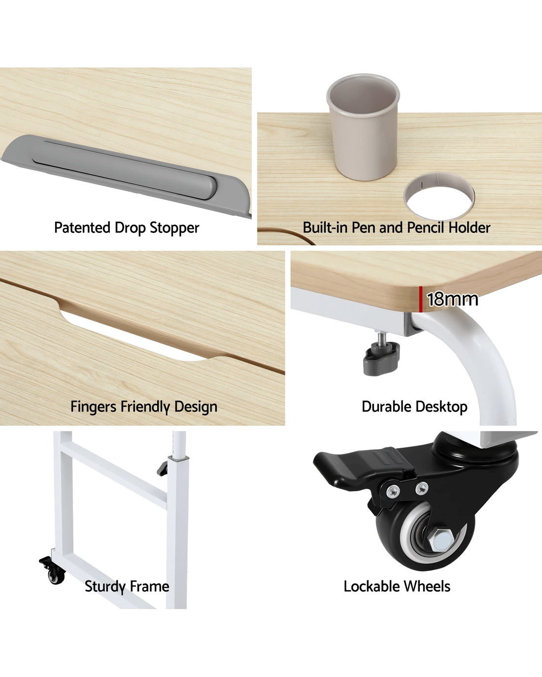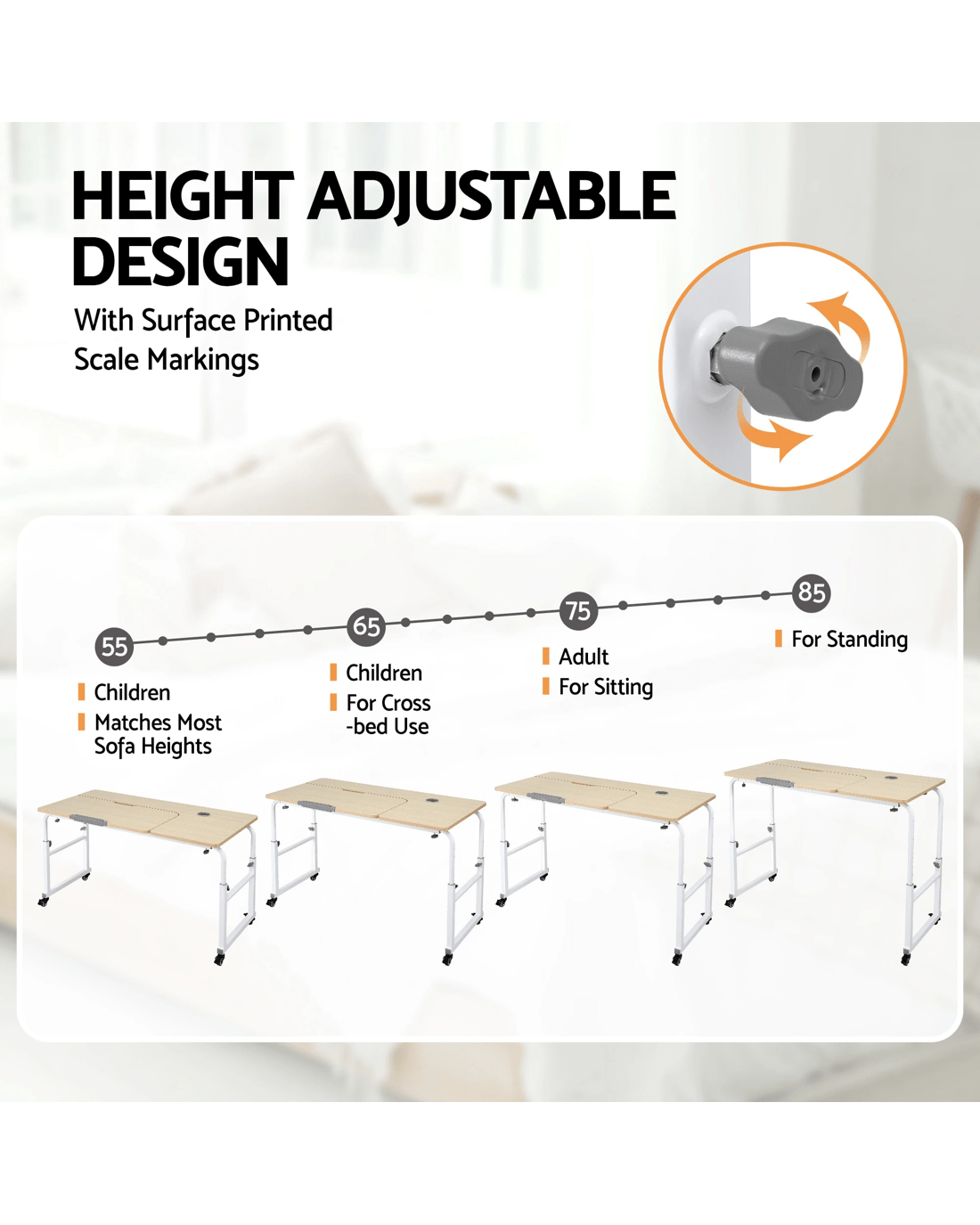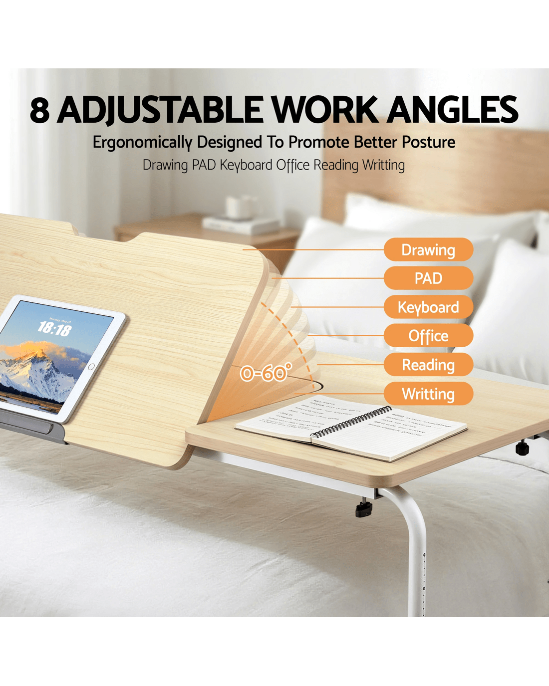 Work comfortably anywhere with the Artiss Laptop Desk. Featuring a fully adjustable height and width frame, it slides easily over beds or sofas. The split desktop tilts up to 60 degrees for ergonomic drawing or typing, while lockable wheels ensure stability. An ideal mobile home office solution.