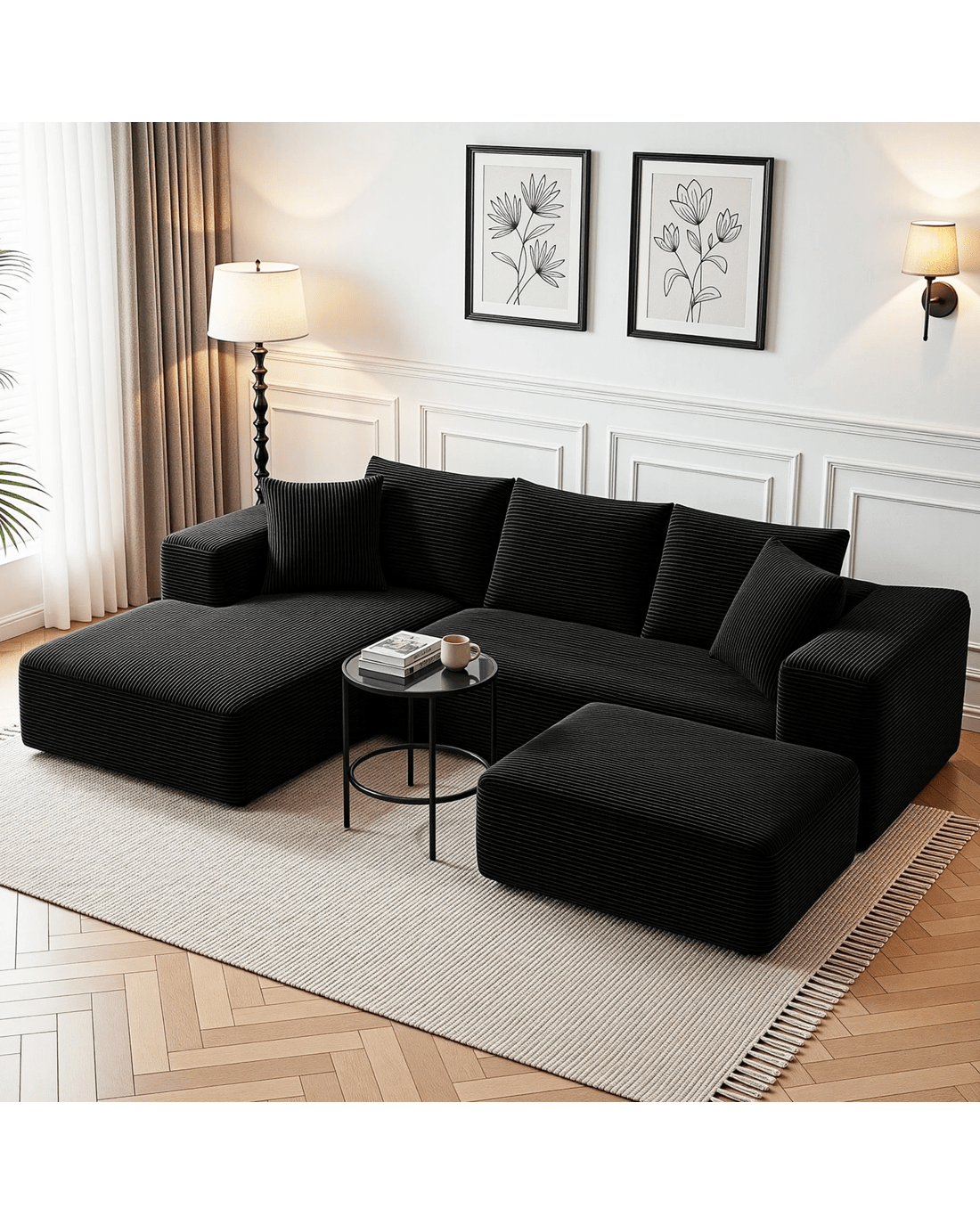 Upgrade your home effortlessly with our Premium Modular Corduroy Sectional. Designed for modern living, this sofa combines versatile functionality, heavy-duty durability, and an unbelievably plush seating experience—all delivered right to your door without the typical furniture-moving headaches.